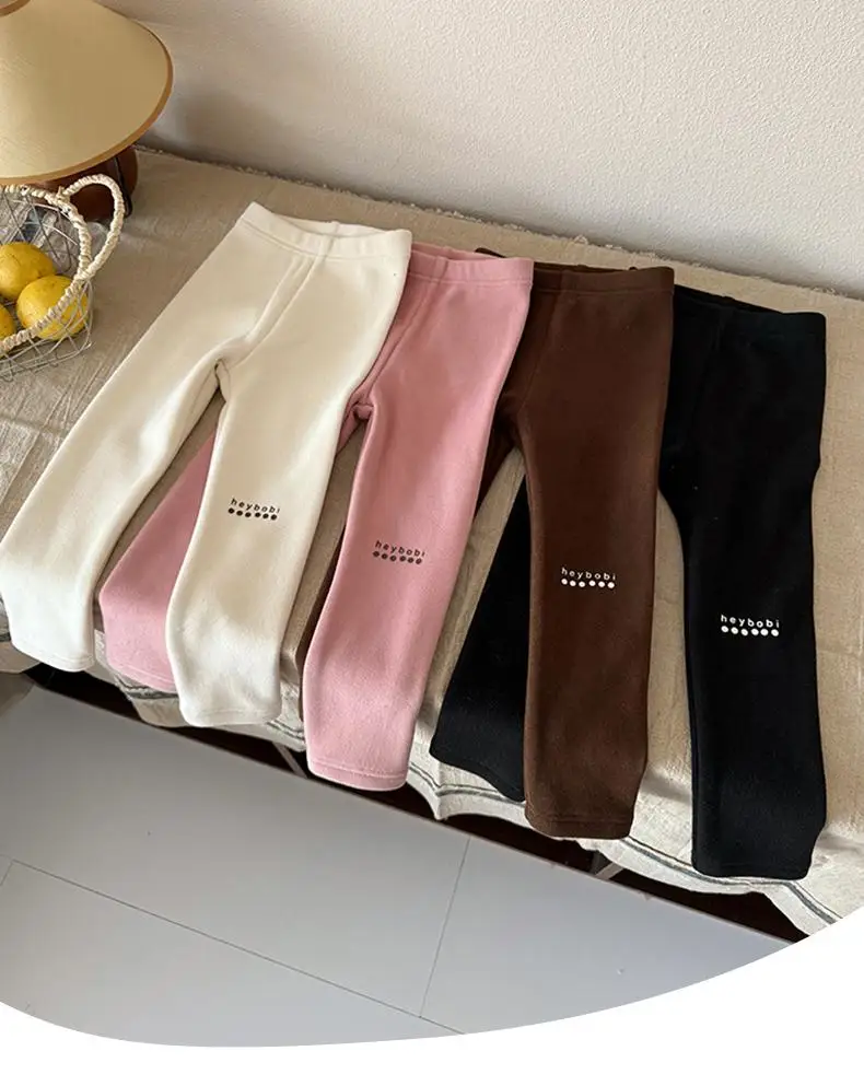 #moda infantil #ropa de bebé #pantalones con logo de letras #forro polar #pantalones leggings #ropa infantil coreana #pantalones de invierno