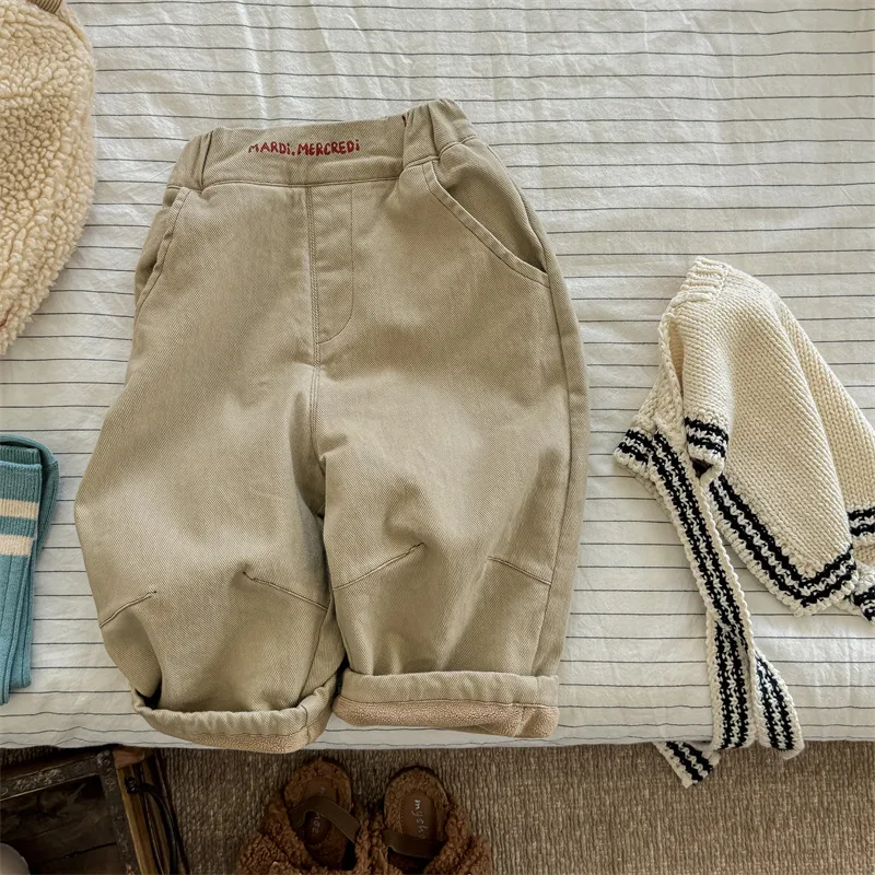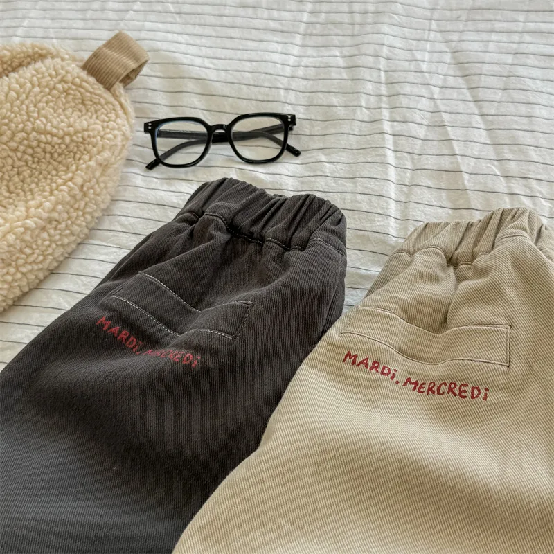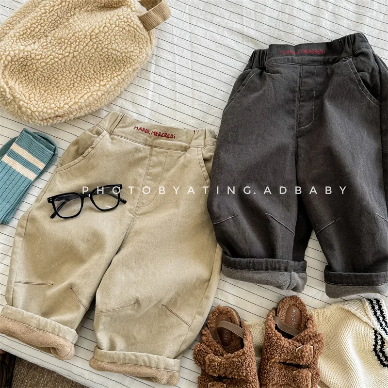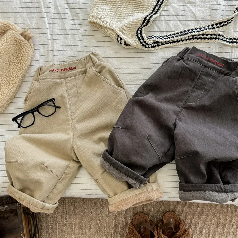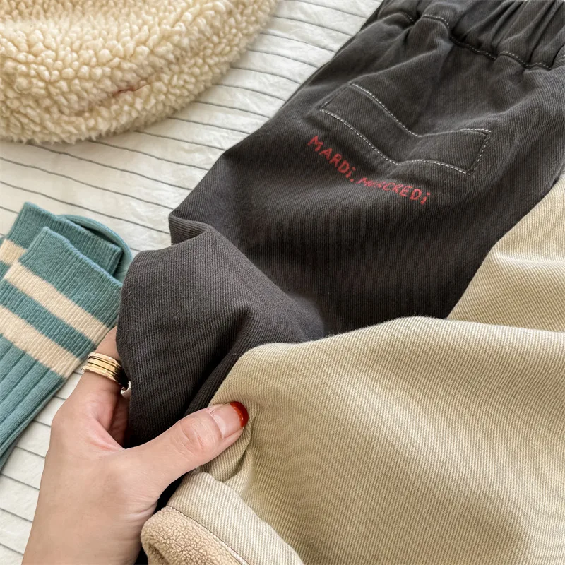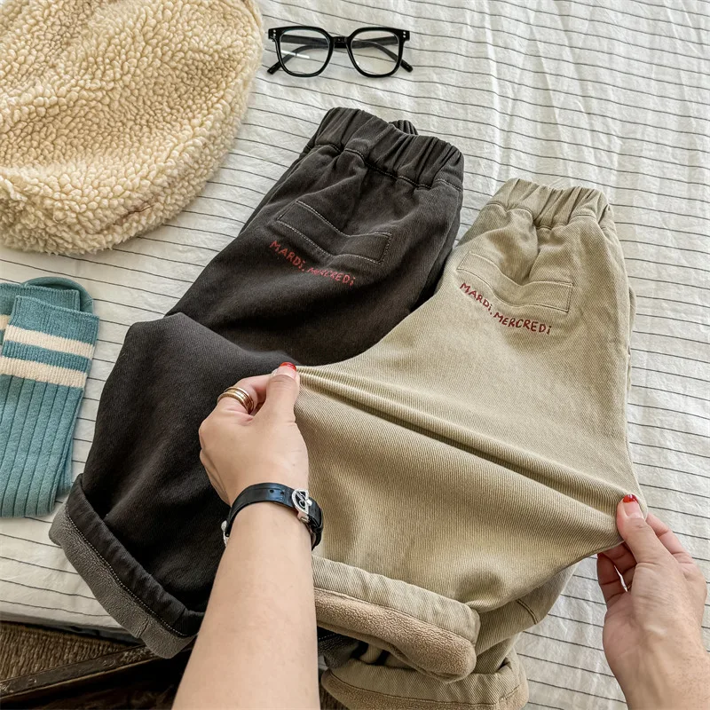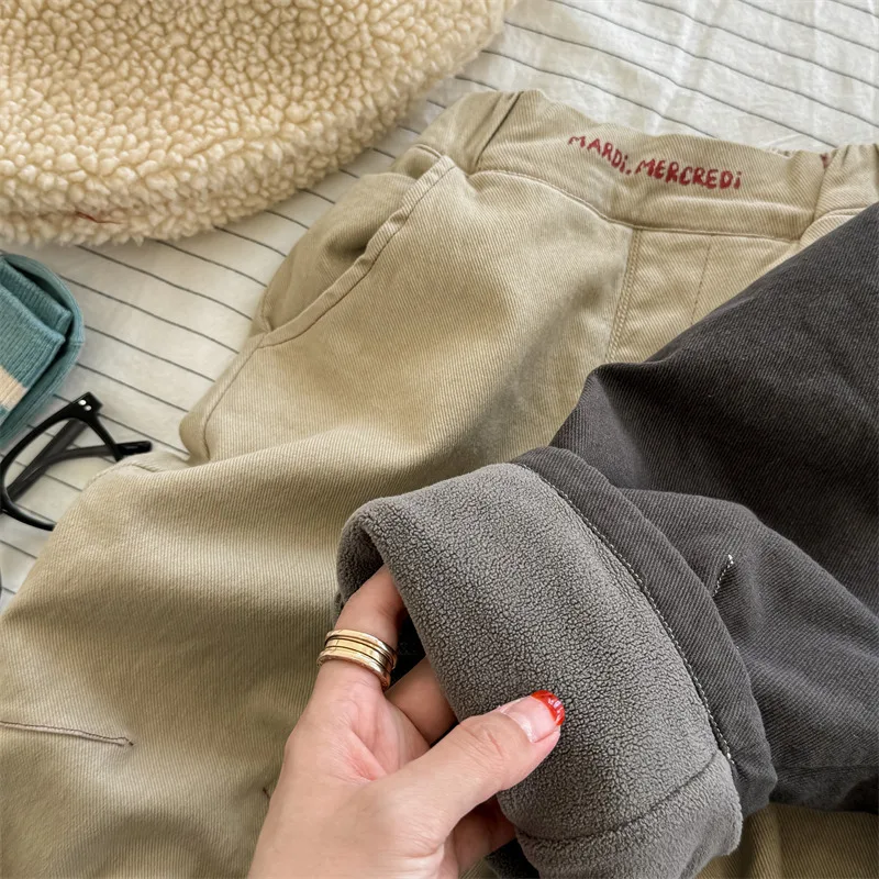 Pantalones para niños, pantalones largos y holgados con forro polar de un punto y logo bordado