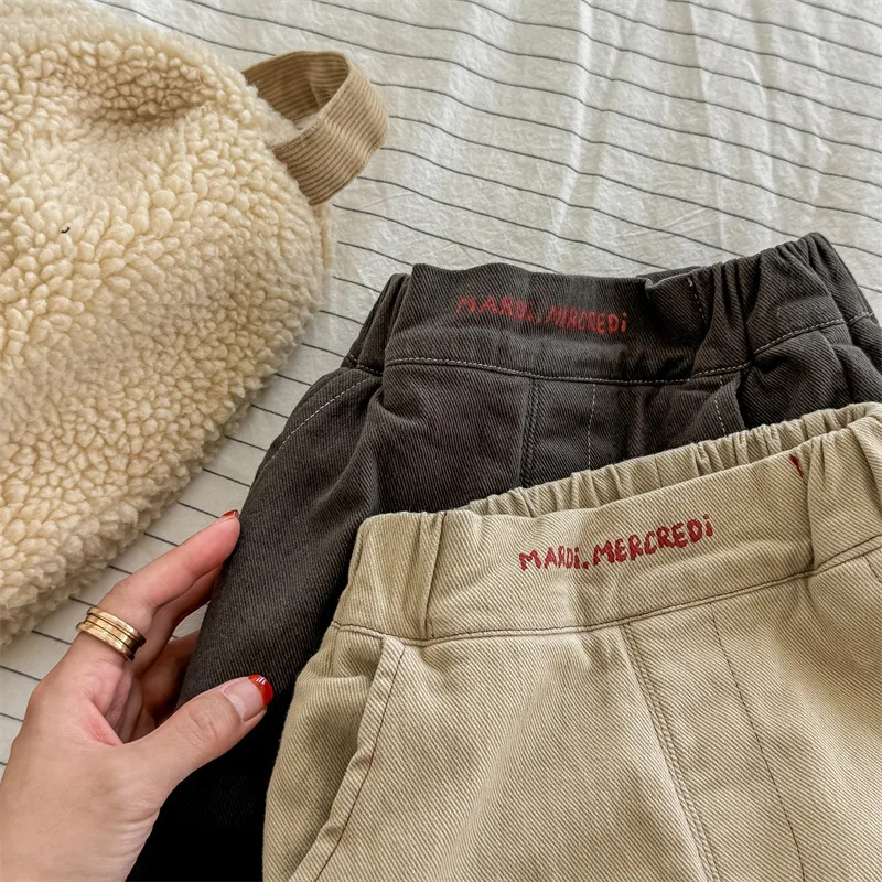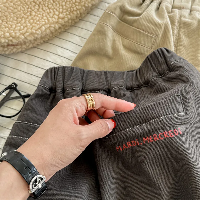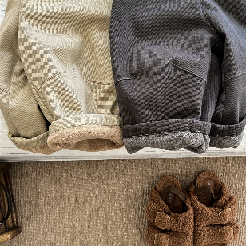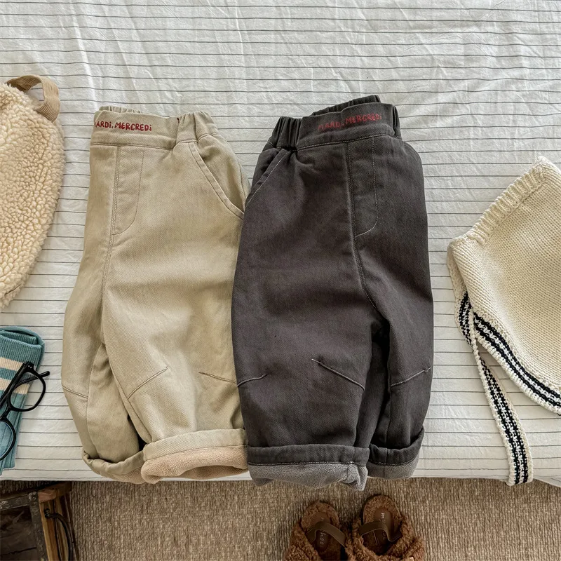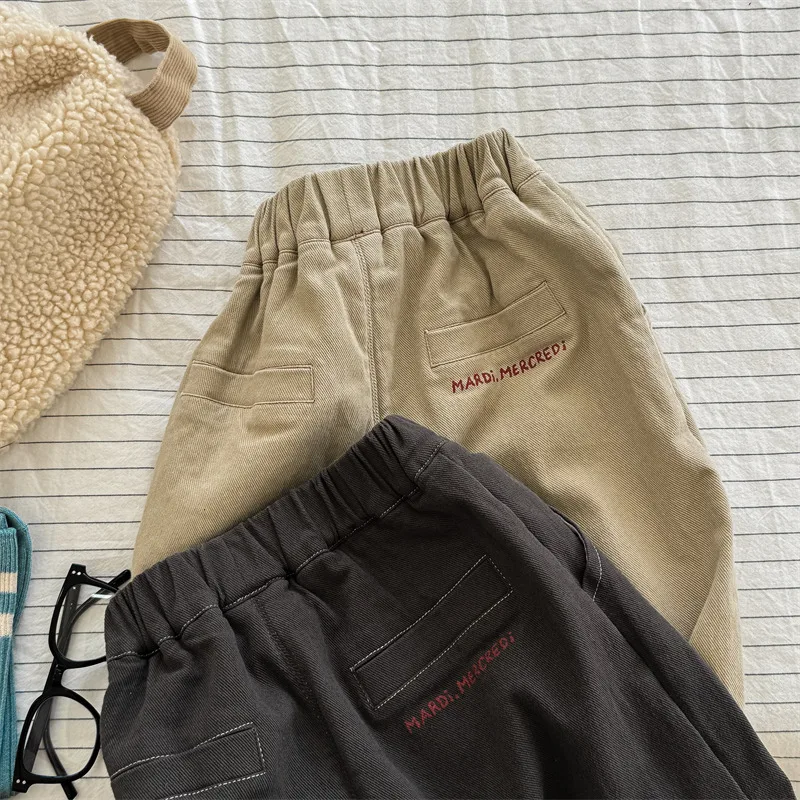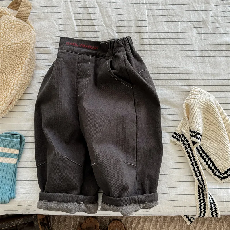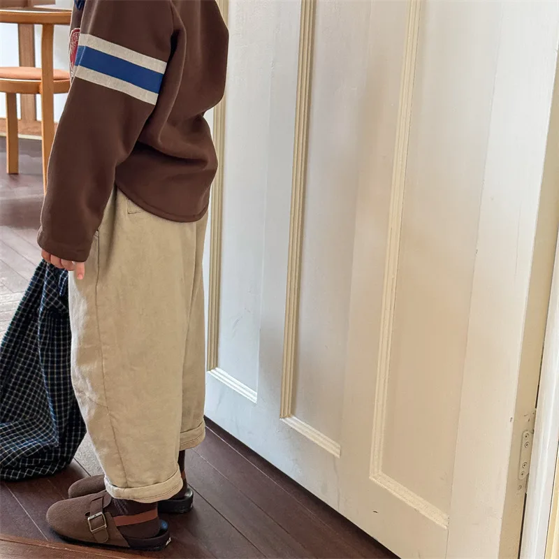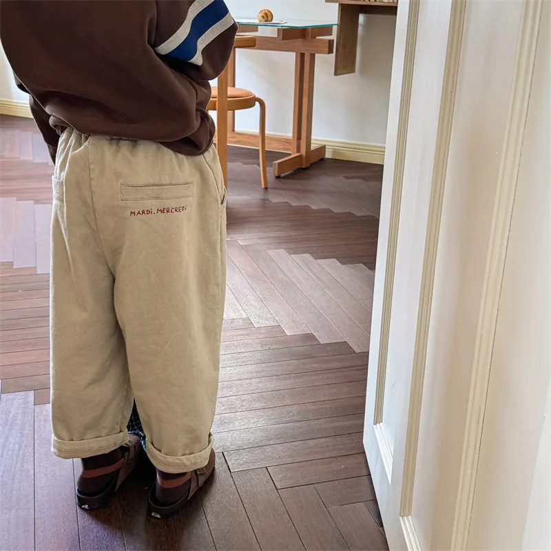 Pantalones para niños, pantalones largos y holgados con forro polar de un punto y logo bordado