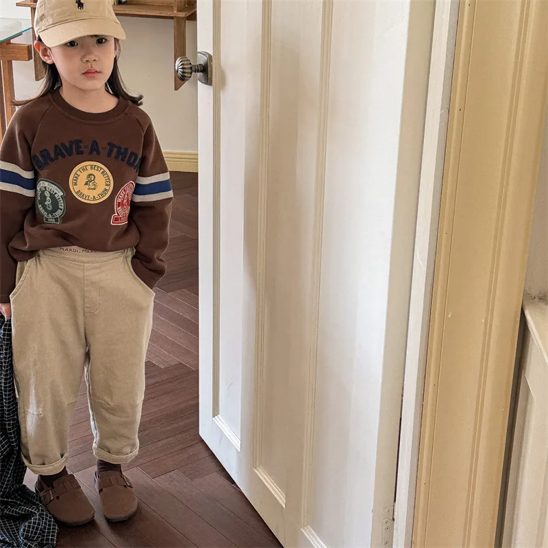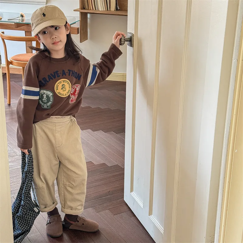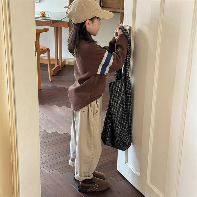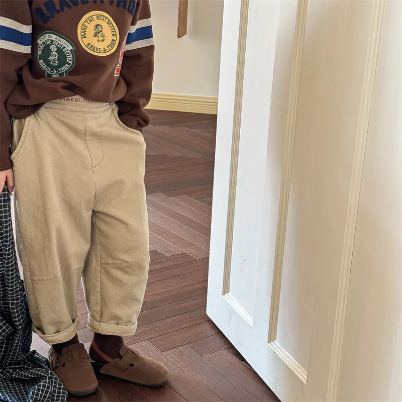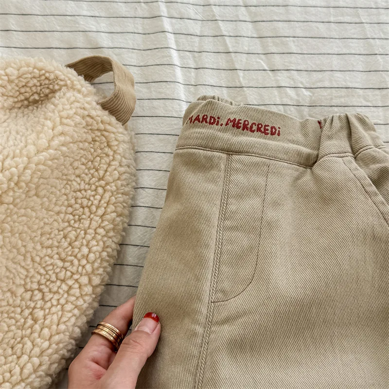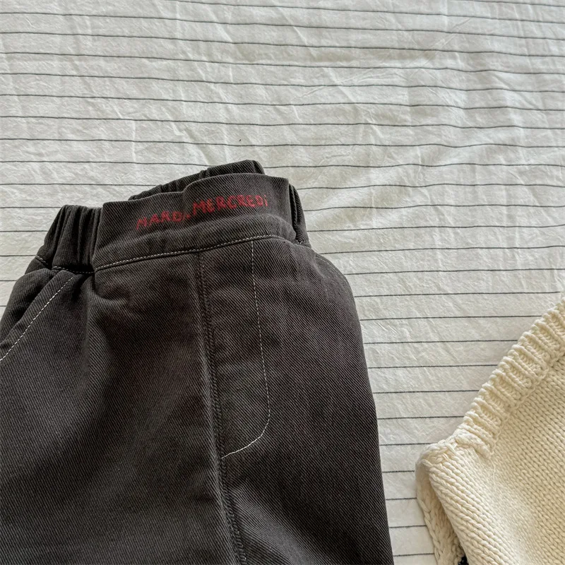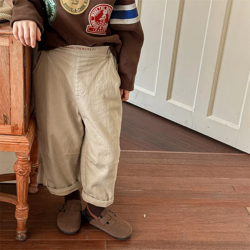Pantalones para niños, pantalones largos y holgados con forro polar de un punto y logo bordado