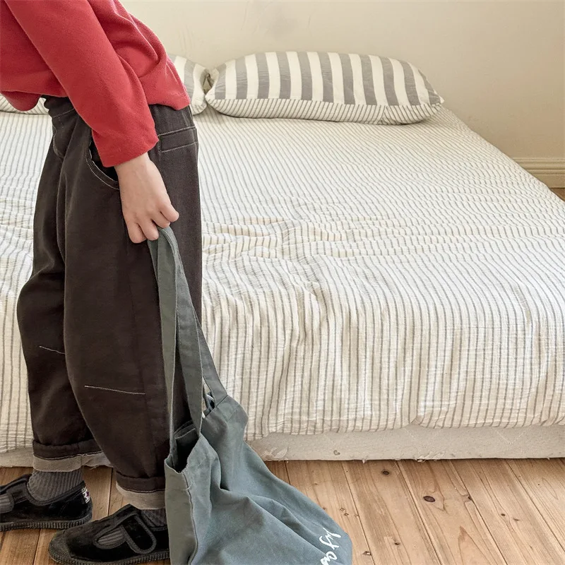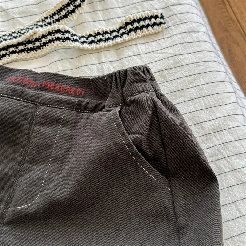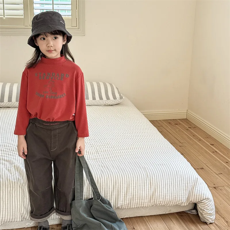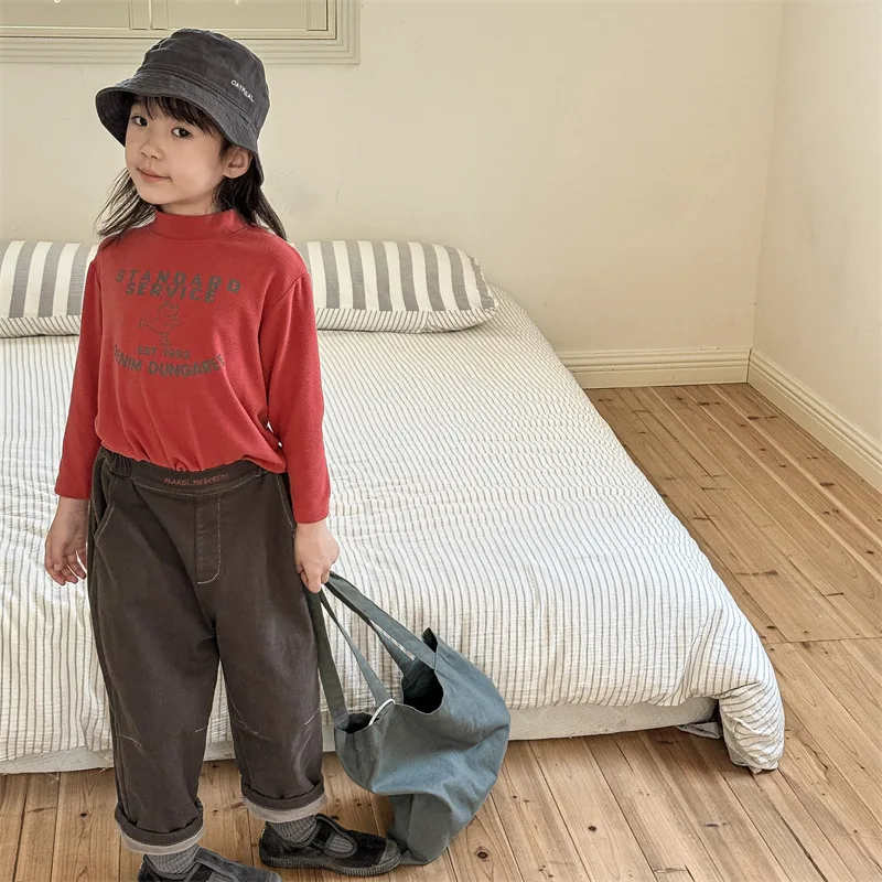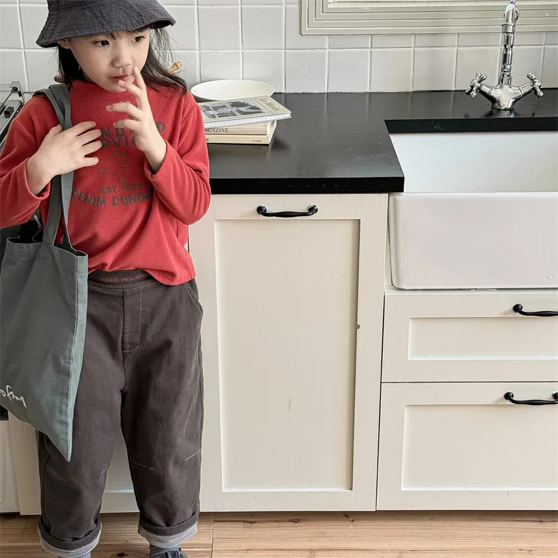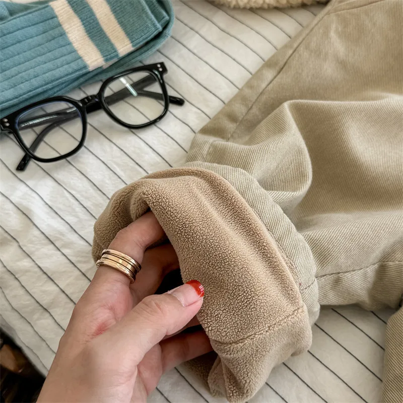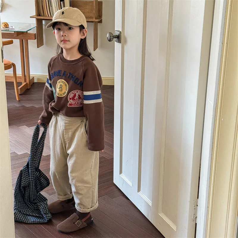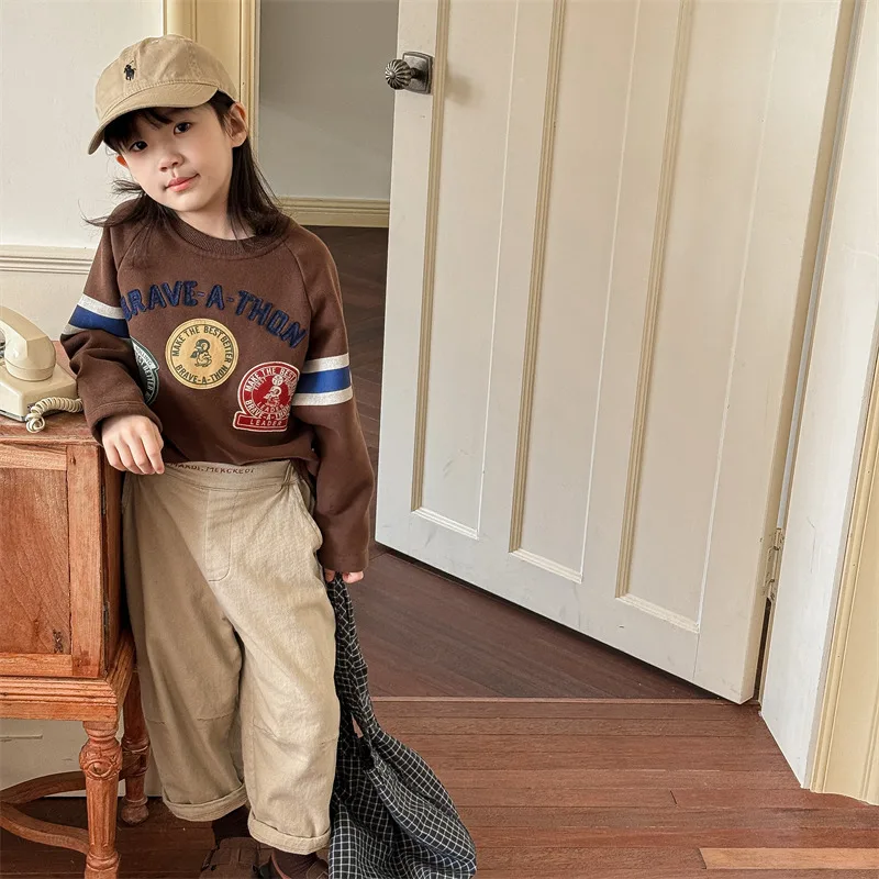 Pantalones para niños, pantalones largos y holgados con forro polar de un punto y logo bordado