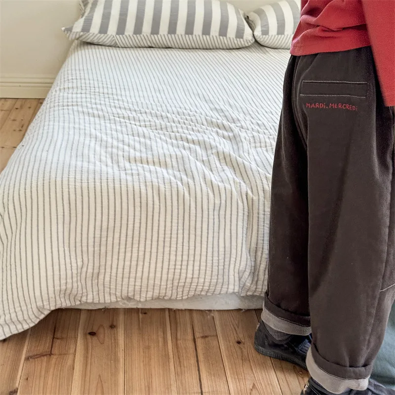 #pantalones para niños #ropa para niños #forro polar #bordado de logo #coordinación de ropa de invierno #pantalones para bebé