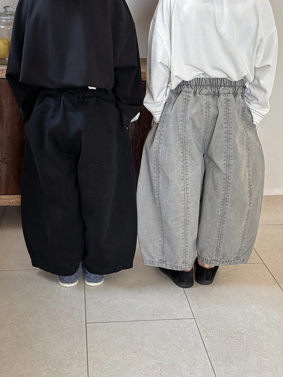 #pantalones para niños #pantalones de barril #diseño simple #silueta suelta #moda coreana #ropa para niños
