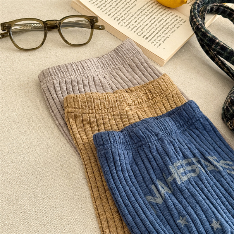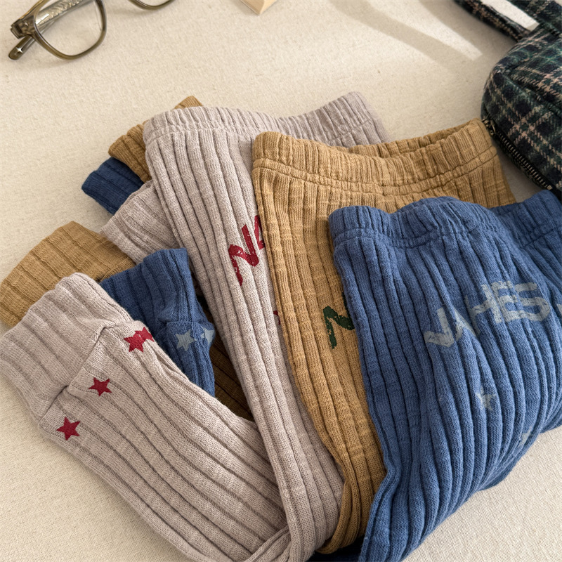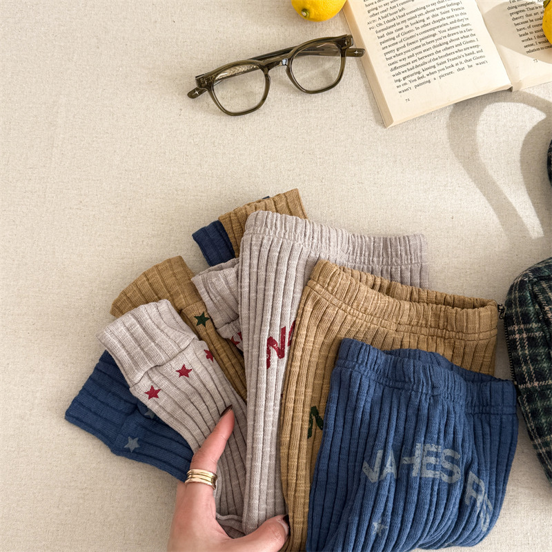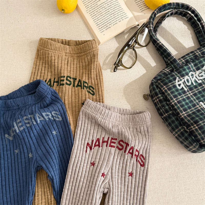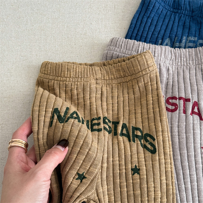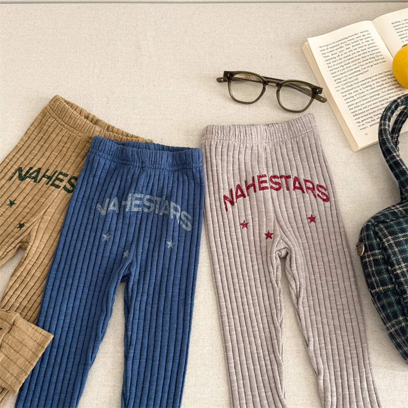 Pantalones para niños con leggings de canalé y bordado con el logotipo de la letra [mh0008991]