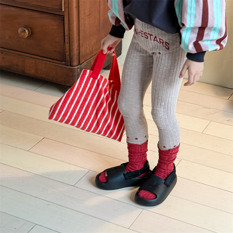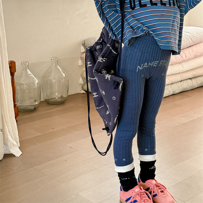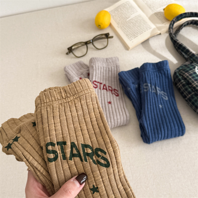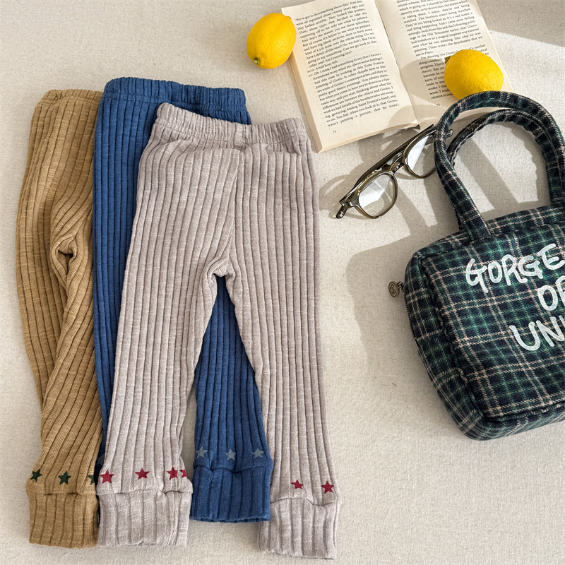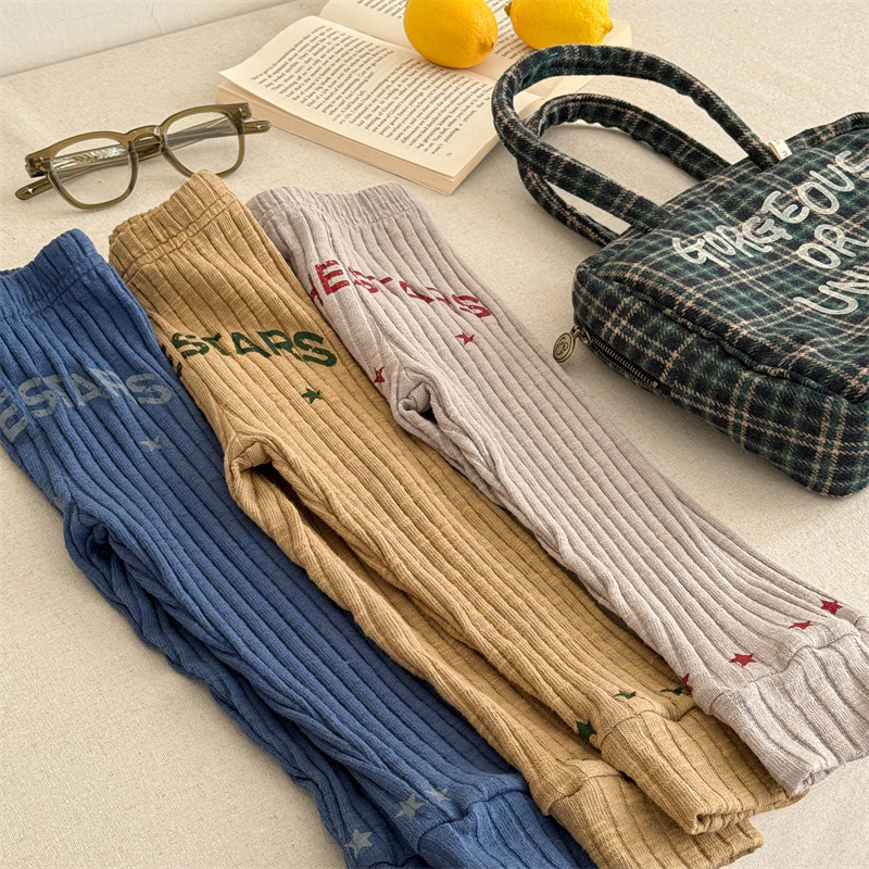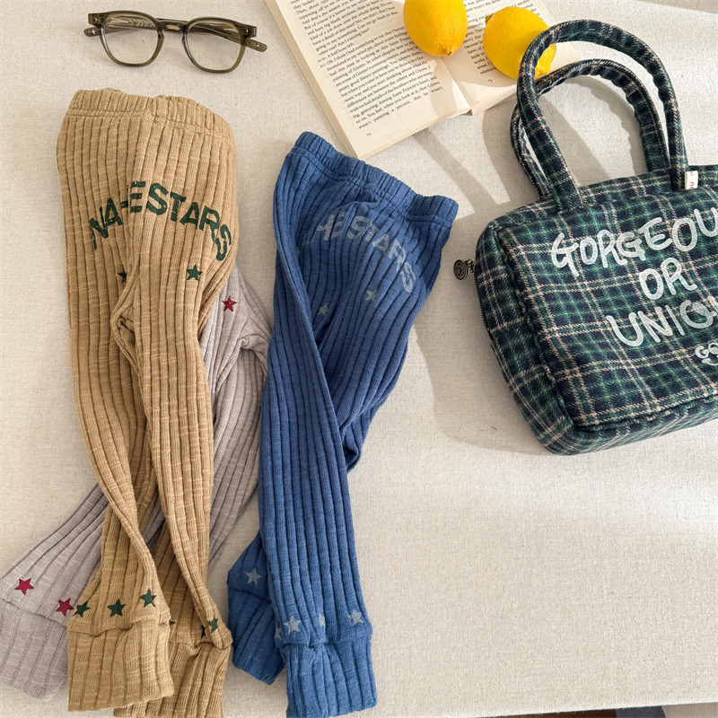 Pantalones para niños con leggings de canalé y bordado con el logotipo de la letra [mh0008991]