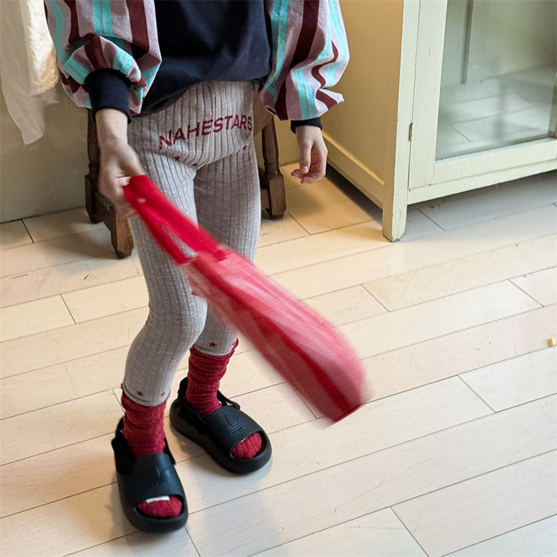 Los leggings acanalados con el logo bordado son sencillos pero elegantes. Confeccionados con material elástico, son muy cómodos de llevar. Son perfectos para el día a día y para jugar en la escuela o en el parque. Aunque tienen una silueta ajustada, su diseño acanalado realza las piernas. Son fáciles de combinar con una variedad de tops, lo que los convierte en una prenda versátil.