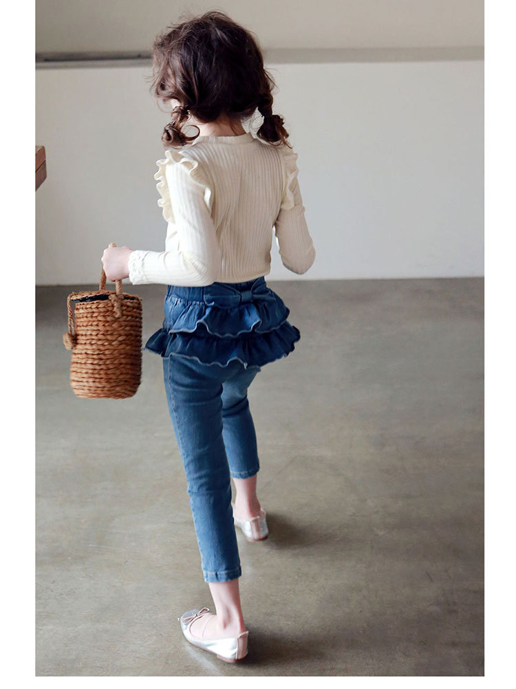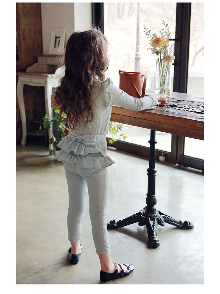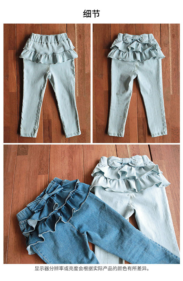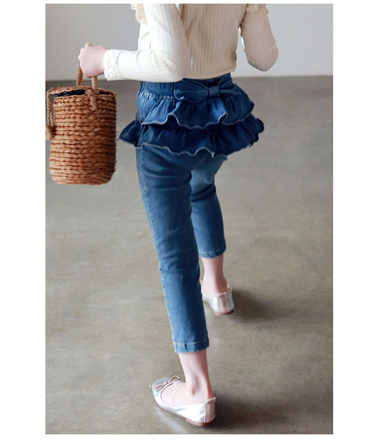 Pantalones para niños, doble capa, con volantes en la espalda, falda con cinta, leggings vaqueros [mh0009057]