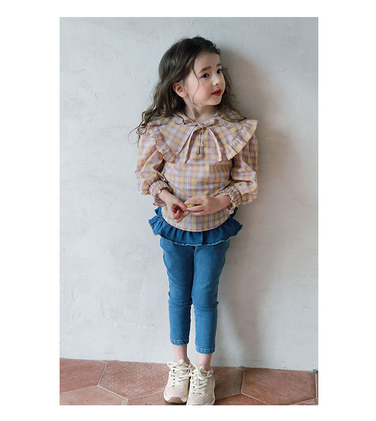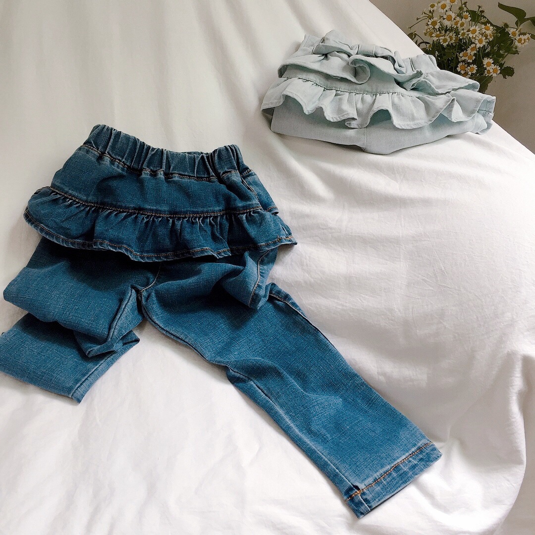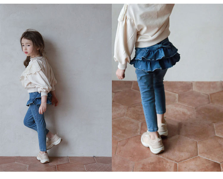 #pantalones para niños #leggings de acoplamiento #falda con volantes #leggings de mezclilla #cinta en la espalda #niños a la moda