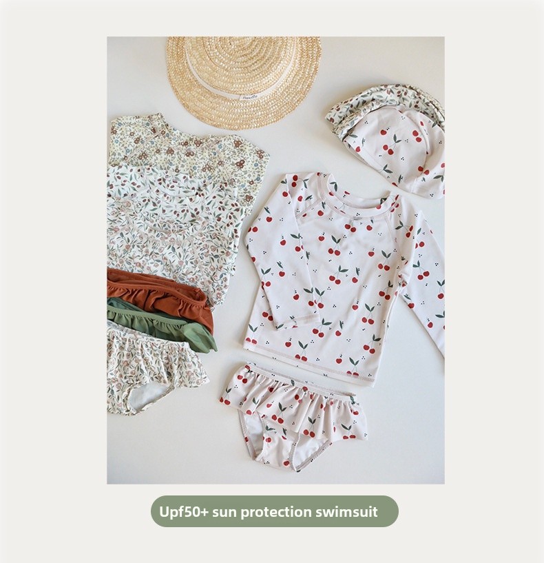 Traje de baño para niñas, de manga larga, separado, con protección contra erupciones [mh0009344]