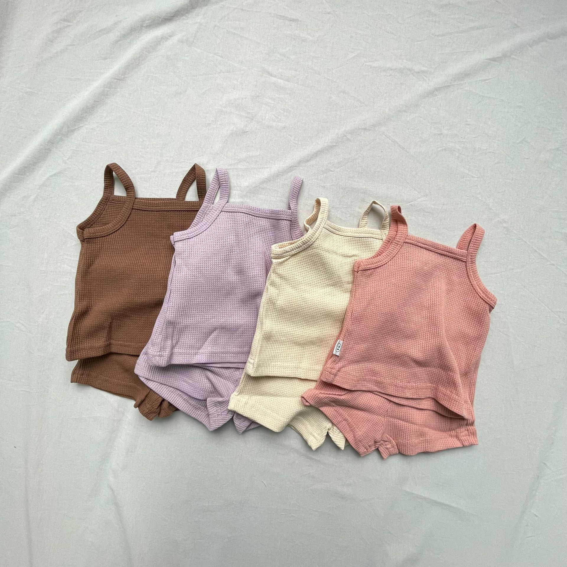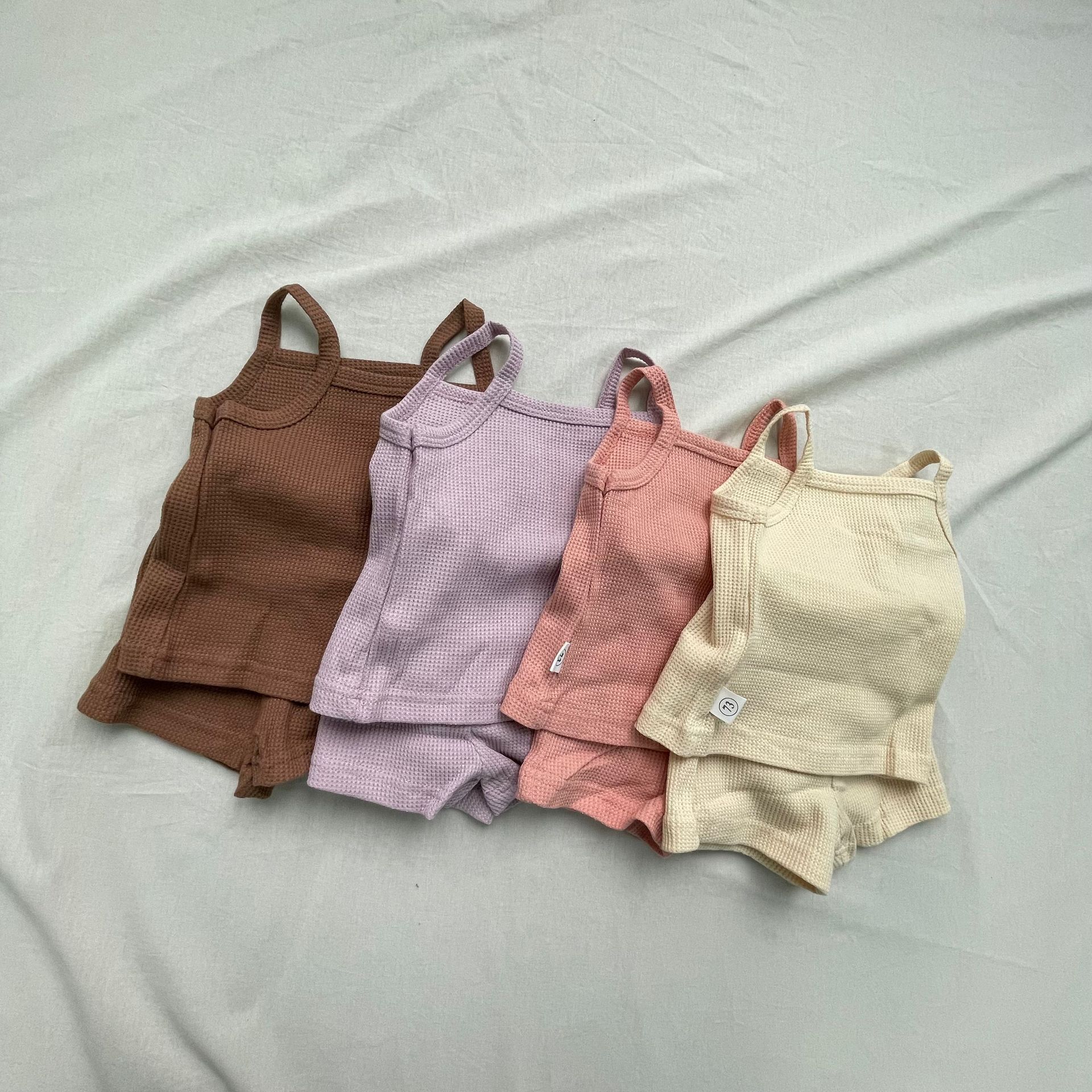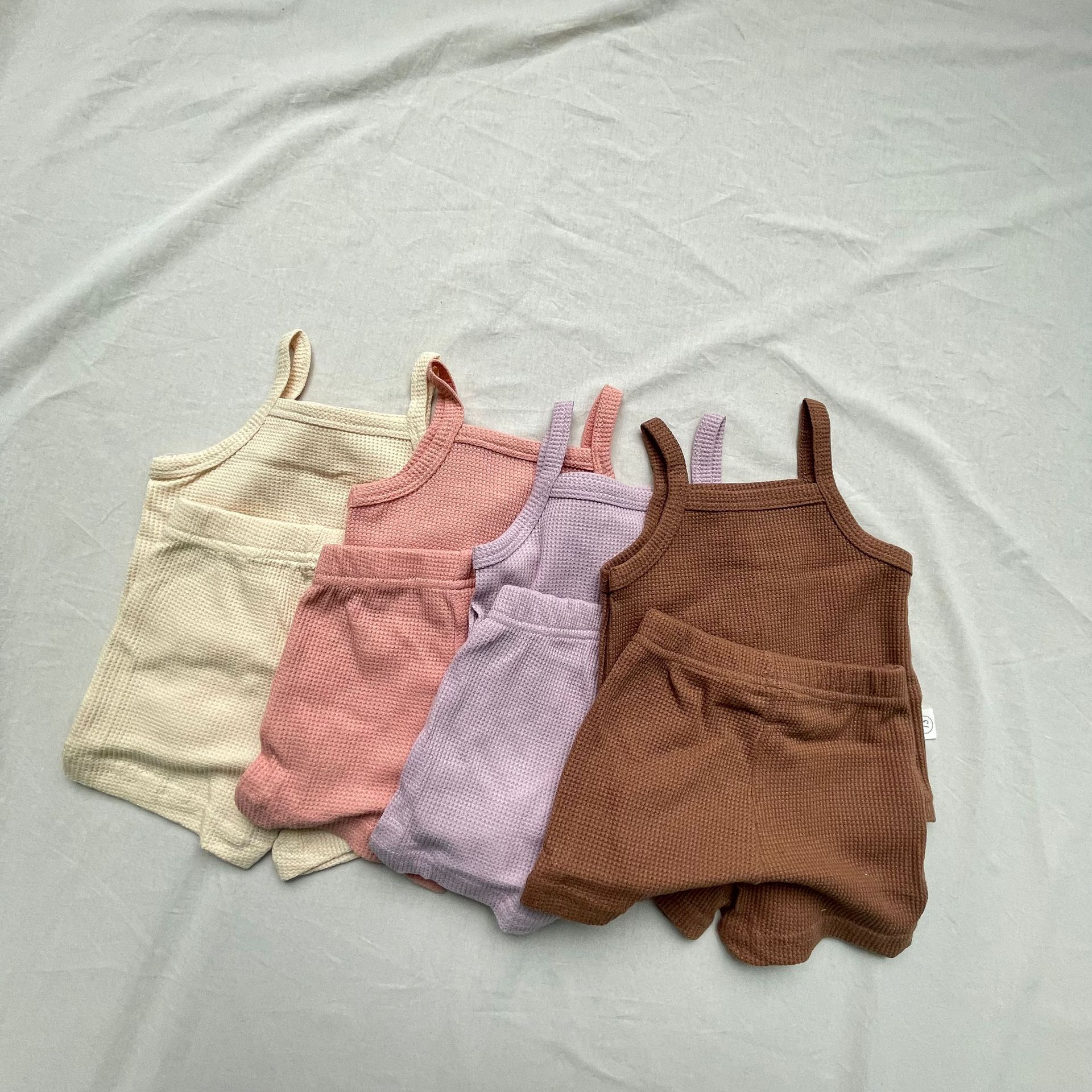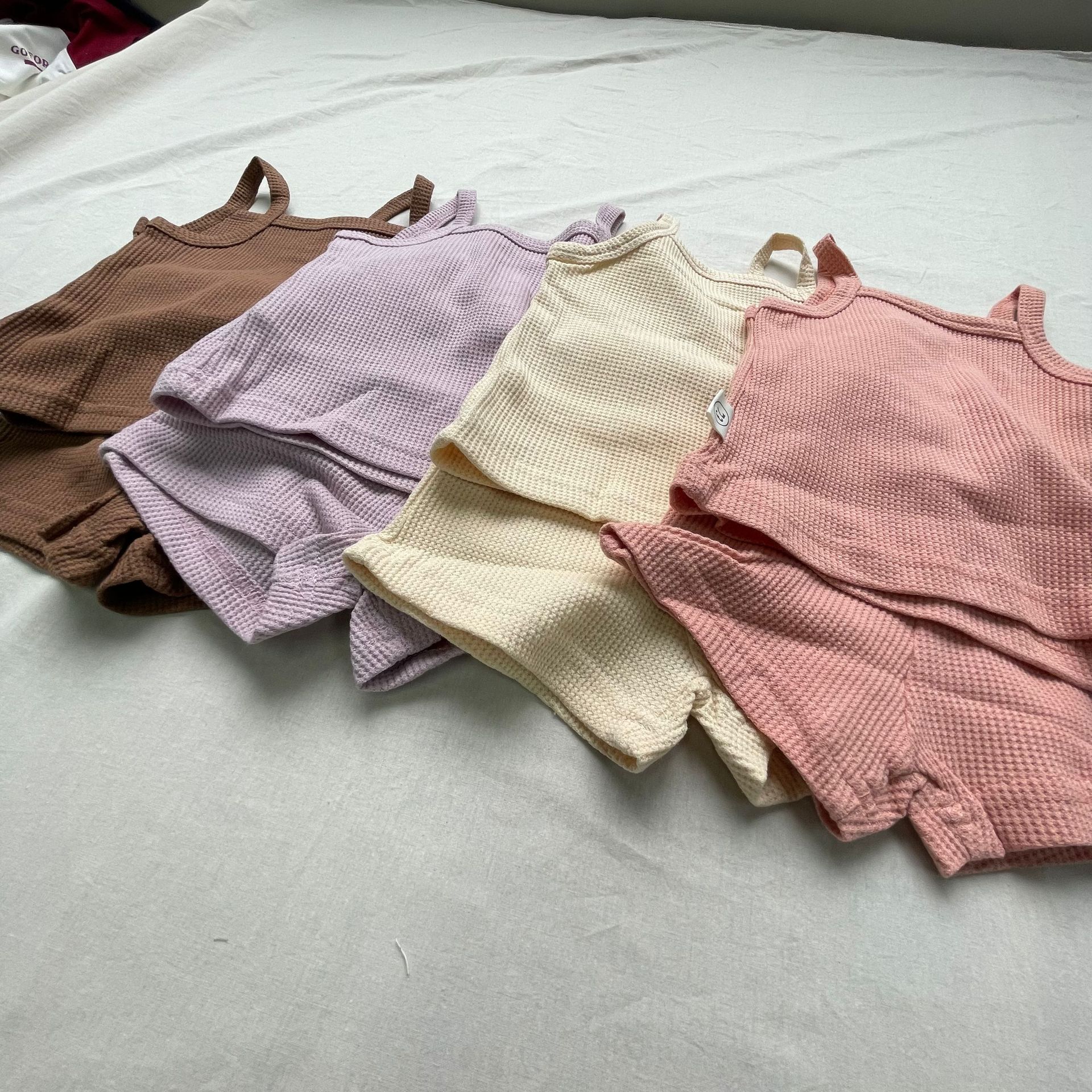 #ropa de bebé #conjunto de camisola #material gofre #pantalones cortos #ropa de verano para niños #ropa para niños