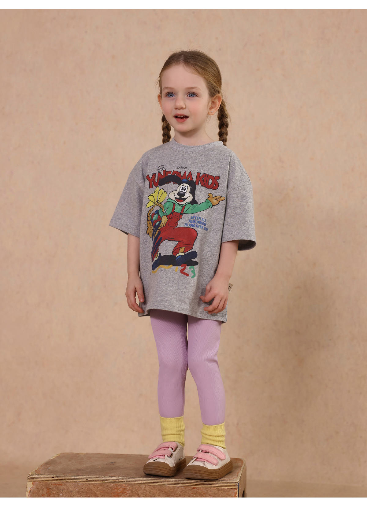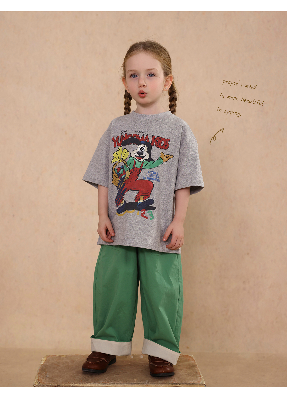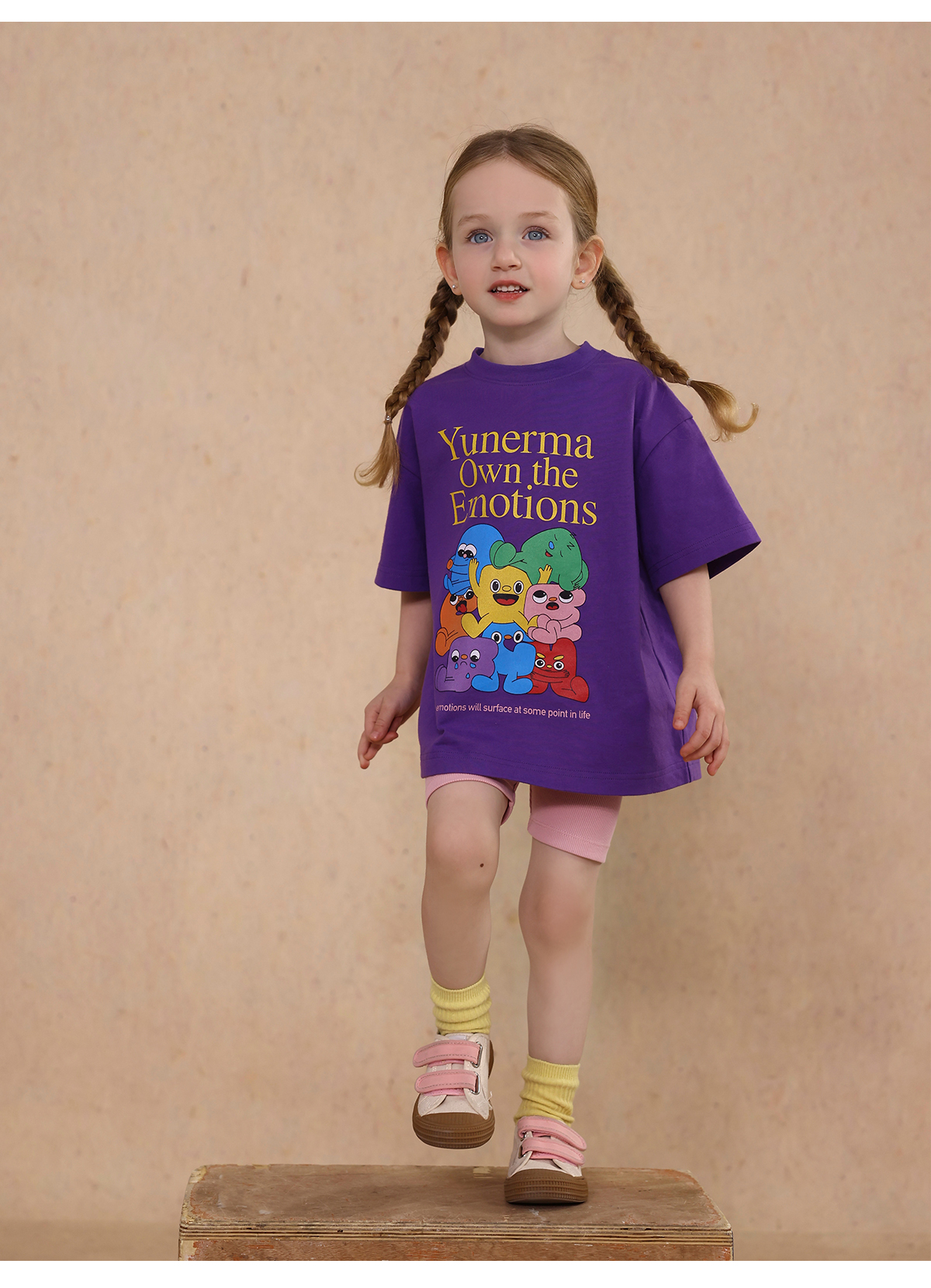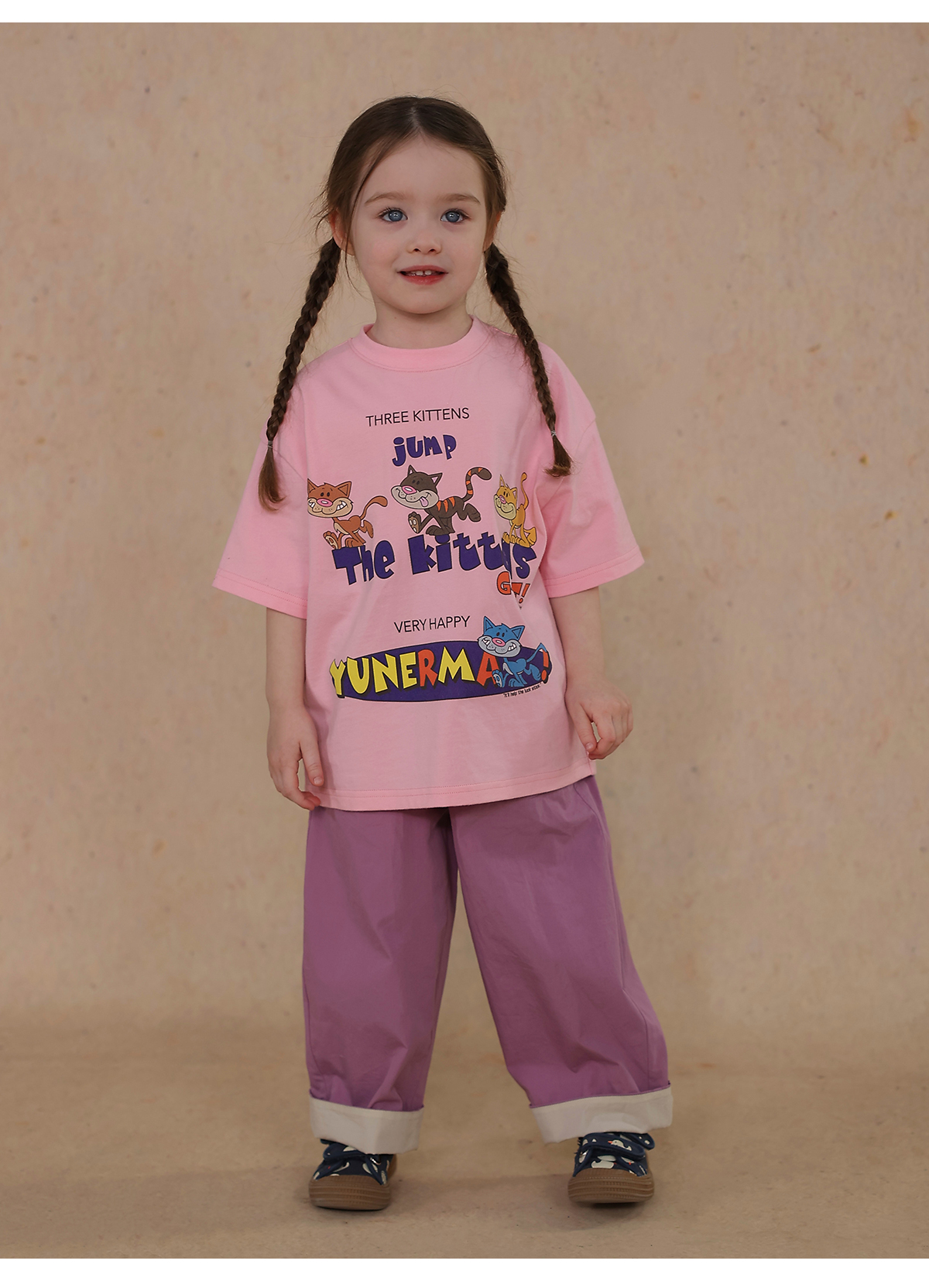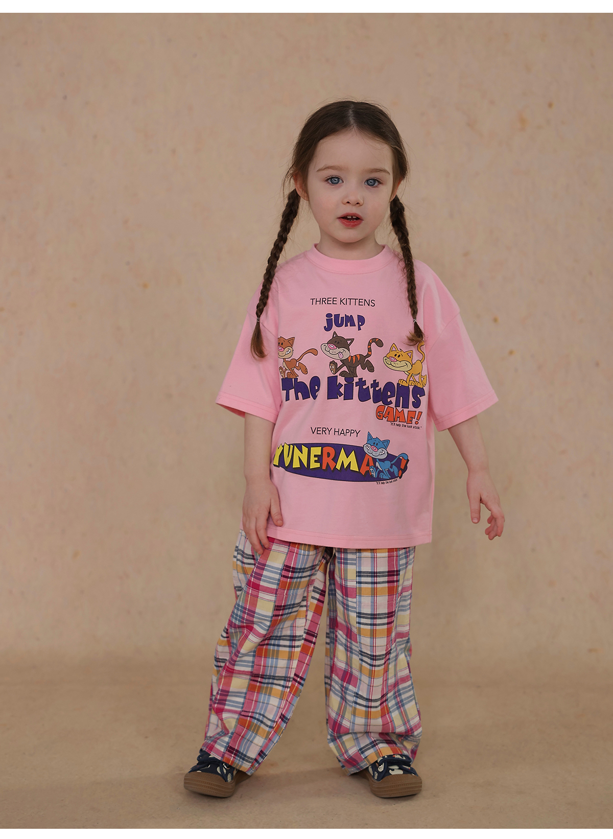 Una camiseta de verano de manga corta para niña con un adorable estampado de personajes que llama la atención. Hecha de algodón suave y transpirable, te mantendrá cómoda incluso en temporadas de mucho sudor. Su corte es ligeramente holgado, lo que permite libertad de movimiento y un toque encantador. Su diseño de estilo internacional la convierte en una prenda ideal para looks casuales de diario.
