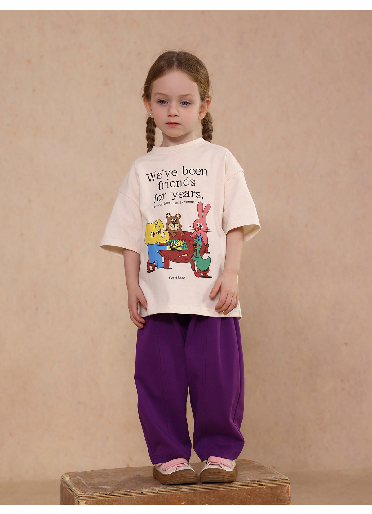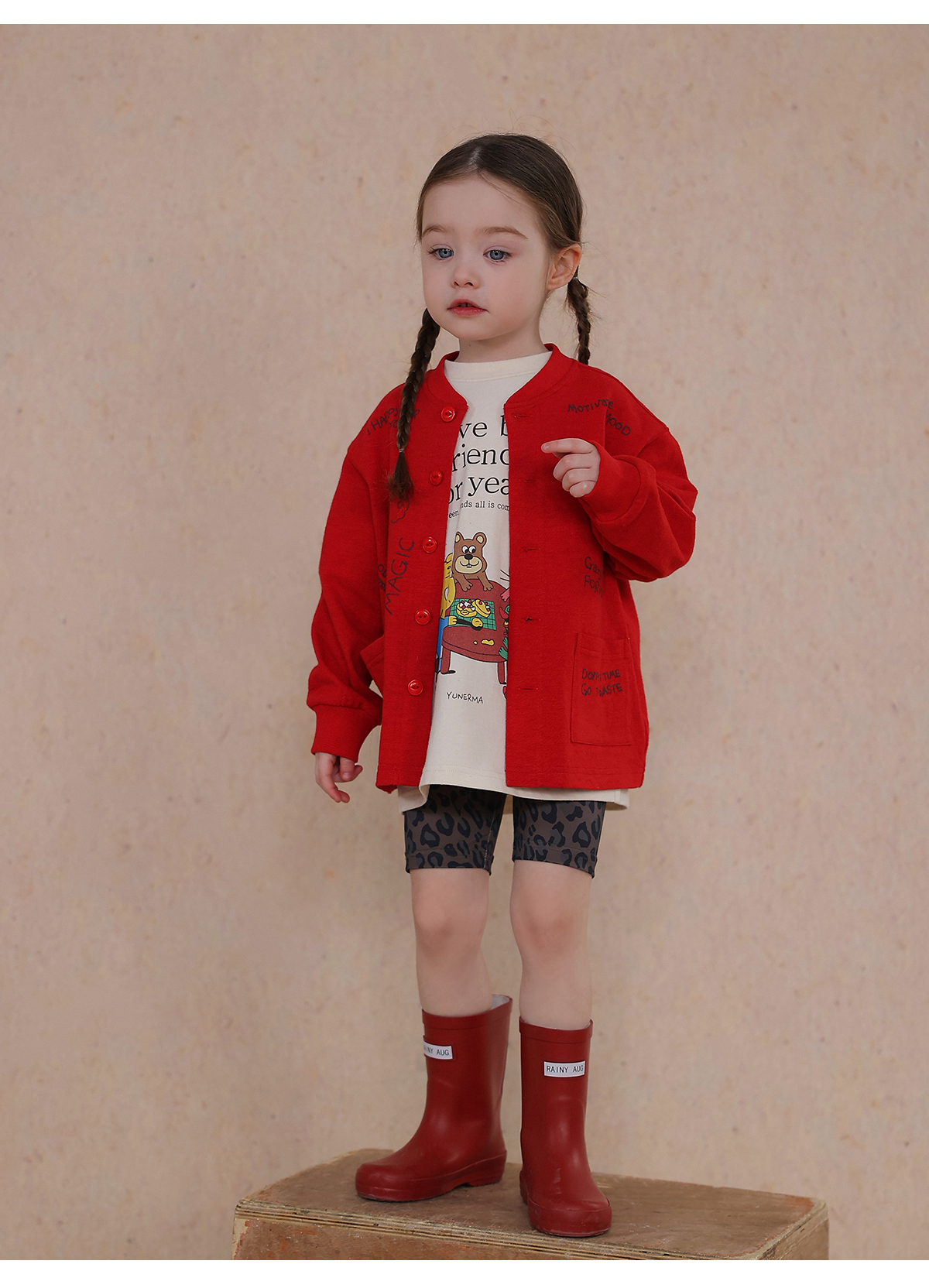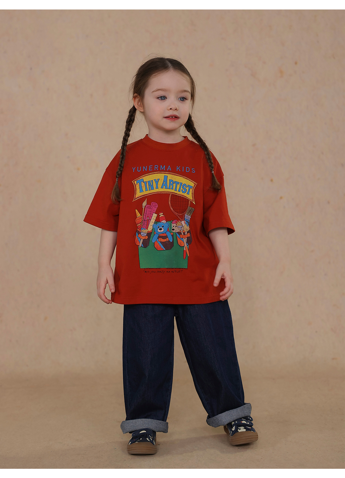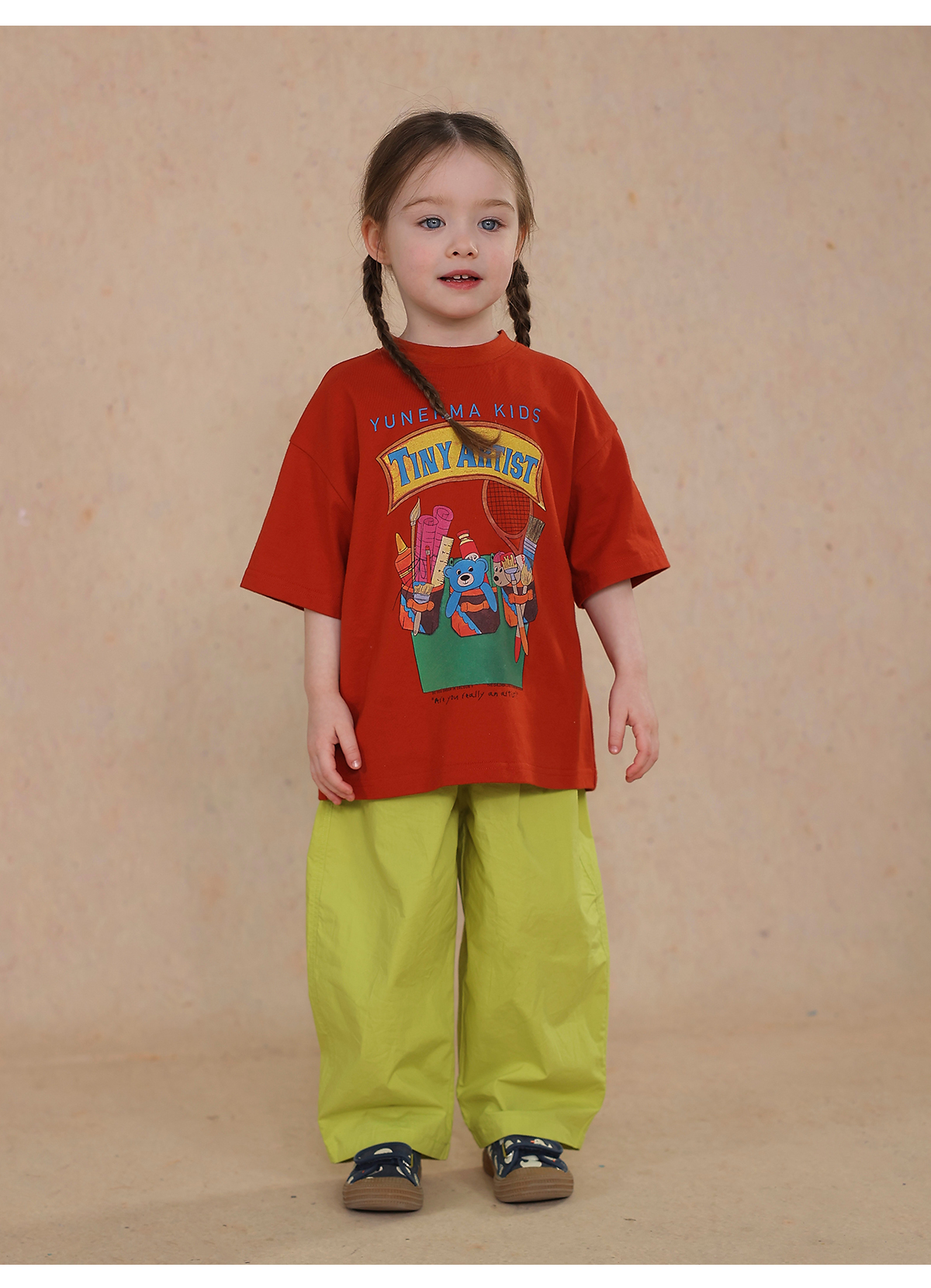 Una camiseta de verano de manga corta para niña con un adorable estampado de personajes que llama la atención. Hecha de algodón suave y transpirable, te mantendrá cómoda incluso en temporadas de mucho sudor. Su corte es ligeramente holgado, lo que permite libertad de movimiento y un toque encantador. Su diseño de estilo internacional la convierte en una prenda ideal para looks casuales de diario.