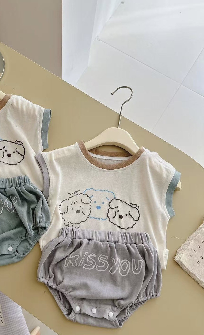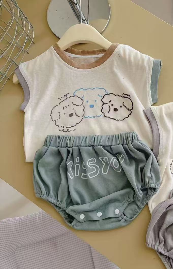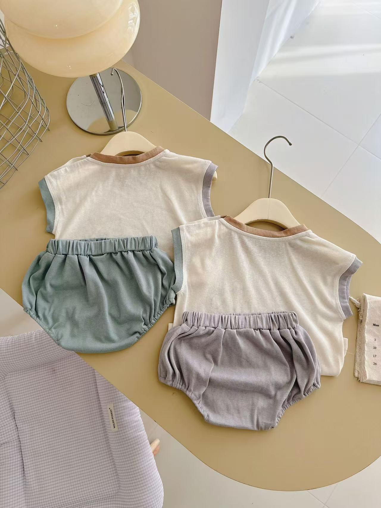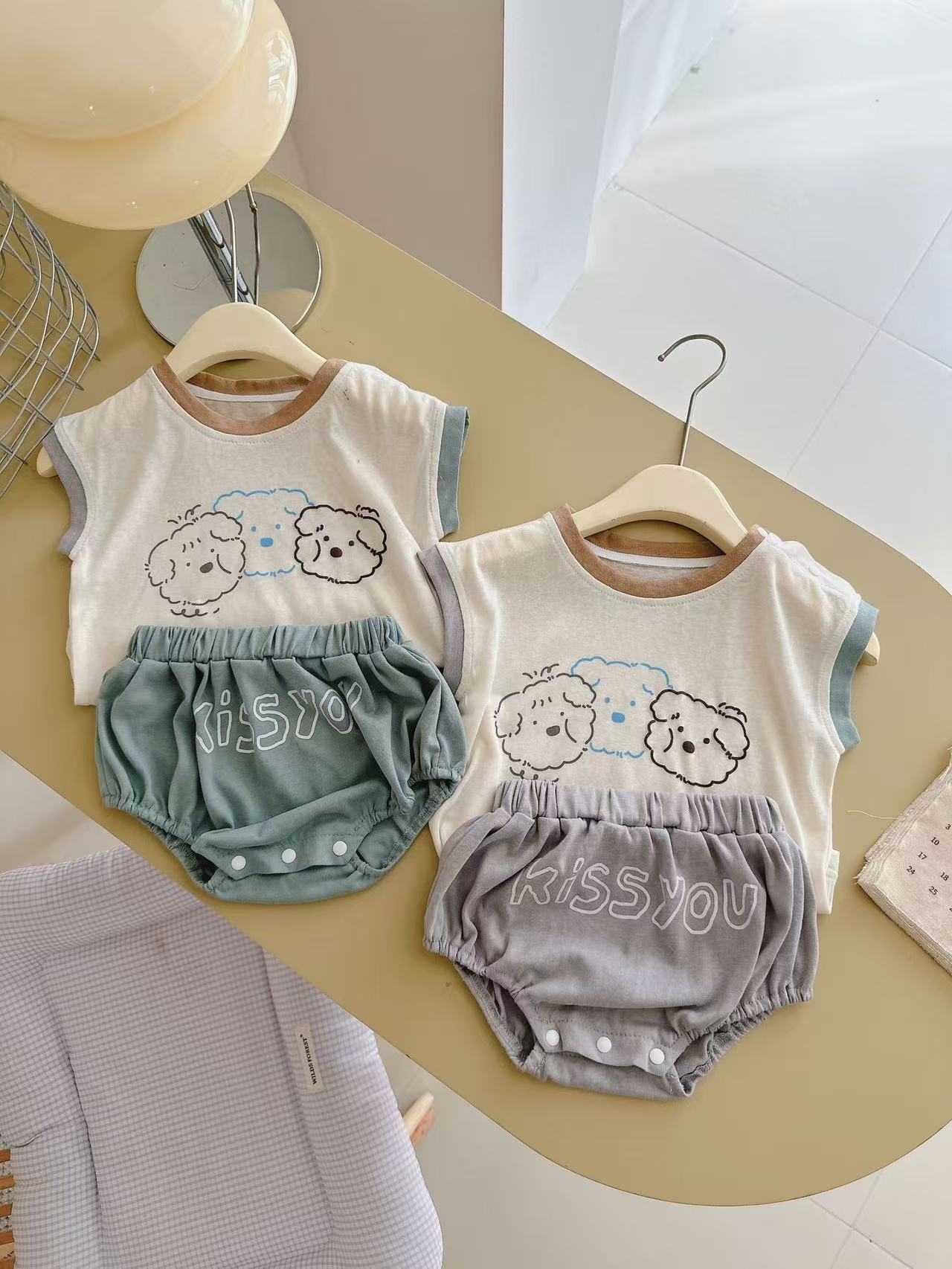 #Conjunto de bebé #Patrón de dibujos animados #Chaleco sin mangas #Pantalones Bagfart #Ropa de verano para bebés #Material de algodón #Coordinación de ropa para niños