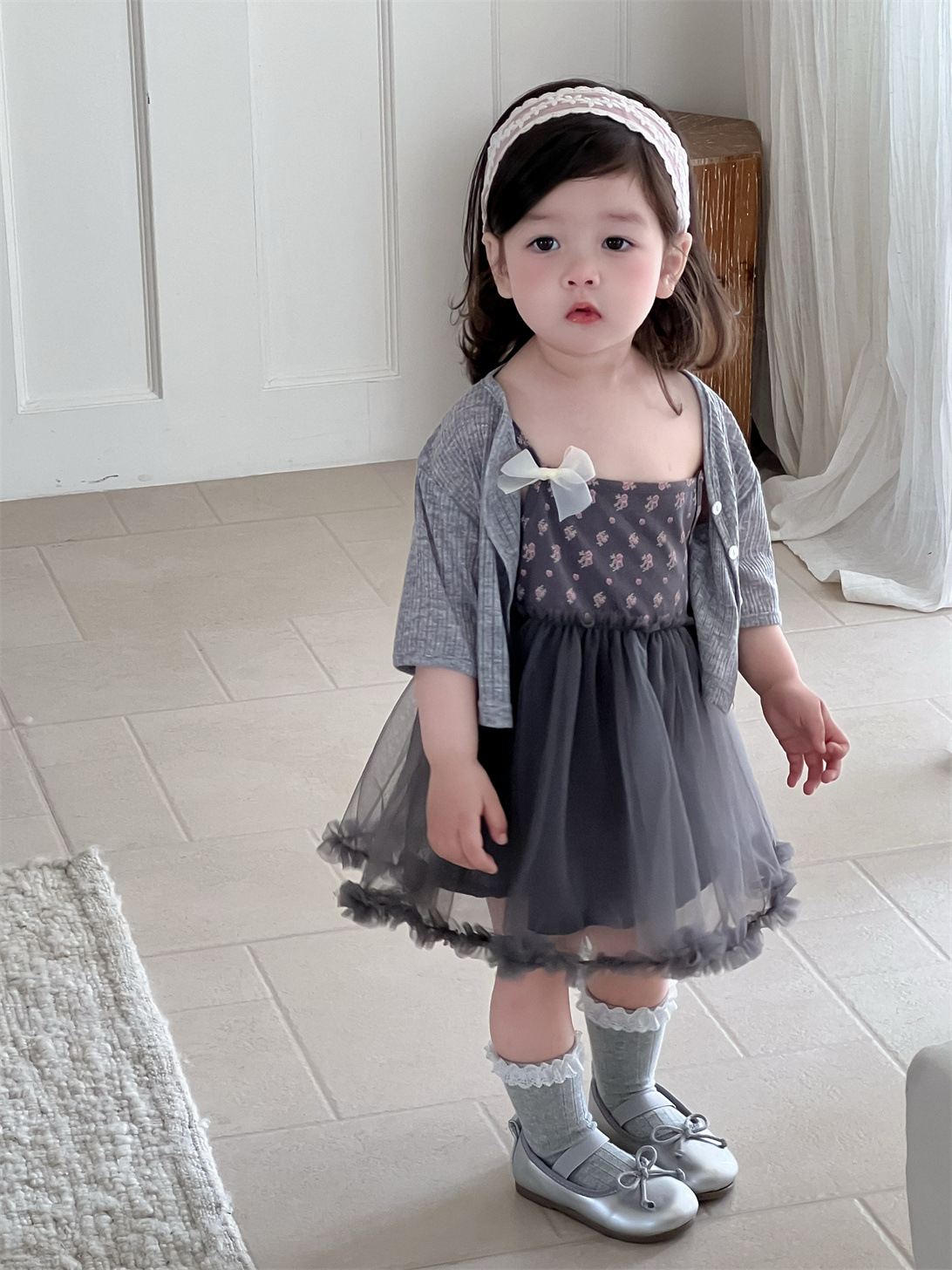 #atuendo para niños #ropa para niños #cárdigan bolero #vestido #estampado de flores #falda de tul #ropa para niñas