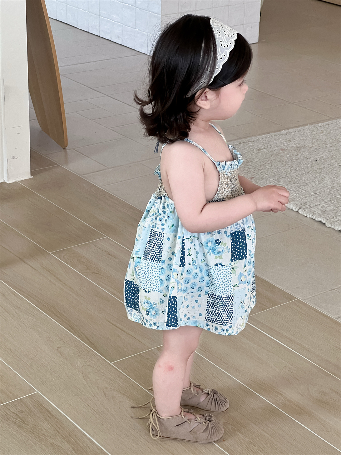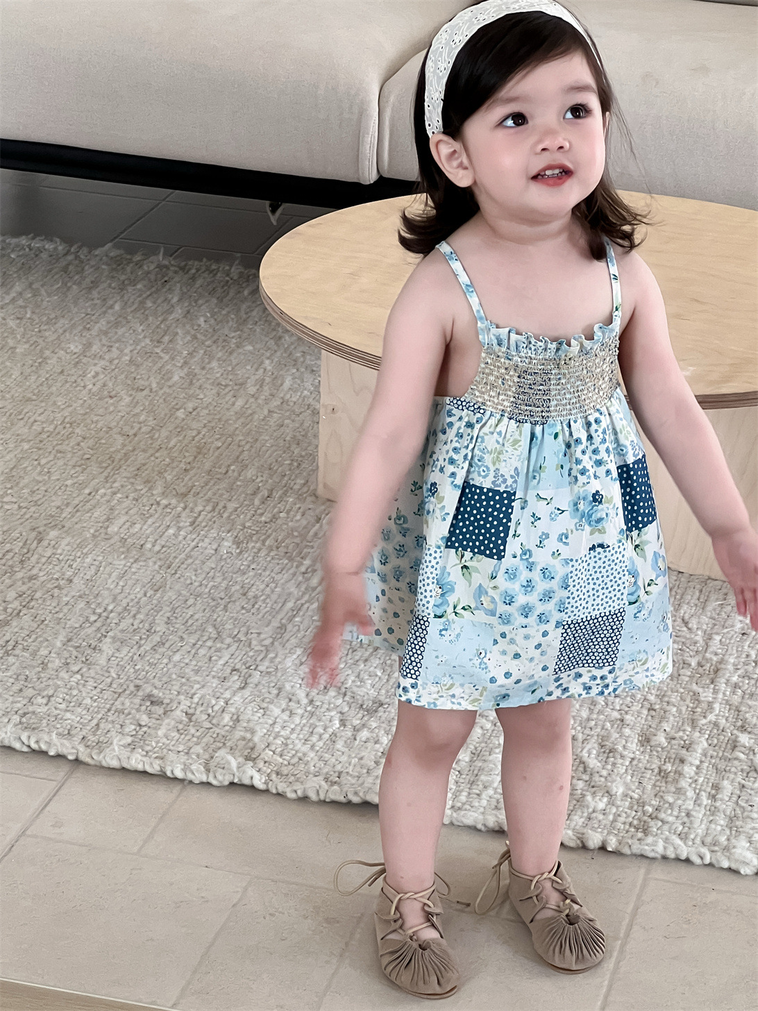 El material fino es transpirable y suave al tacto, para que tu hijo esté cómodo incluso en los días calurosos. Su corte holgado permite que tu bebé se mueva con libertad. Es perfecto para el día a día, así como para salidas cortas y ocasiones especiales como fiestas de cumpleaños. Este vestido camisola de patchwork con estampado de cuadros y flores le dará un toque de color al conjunto diario de tu hijo.