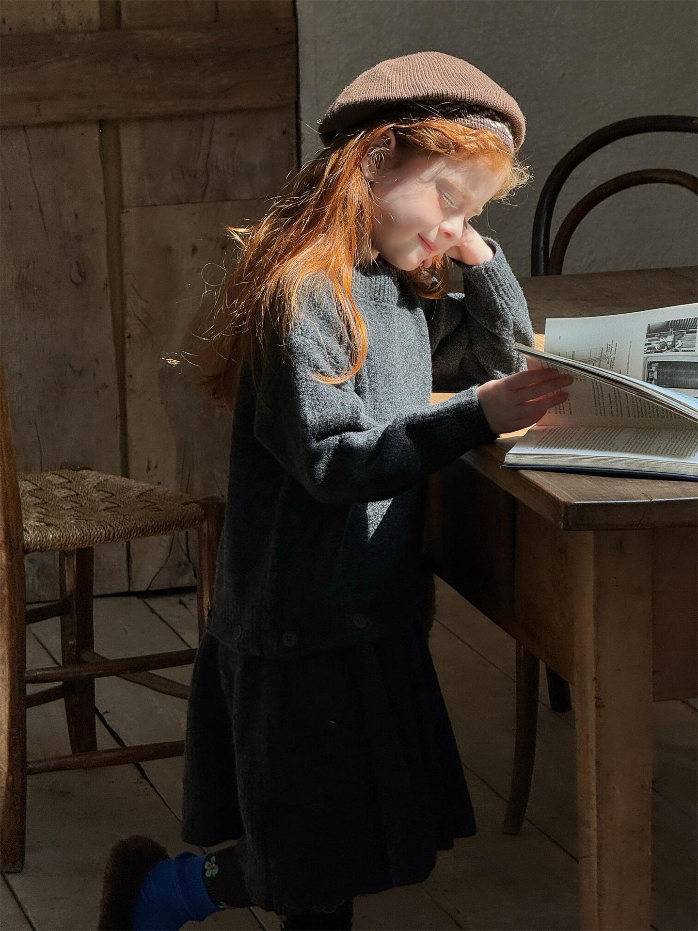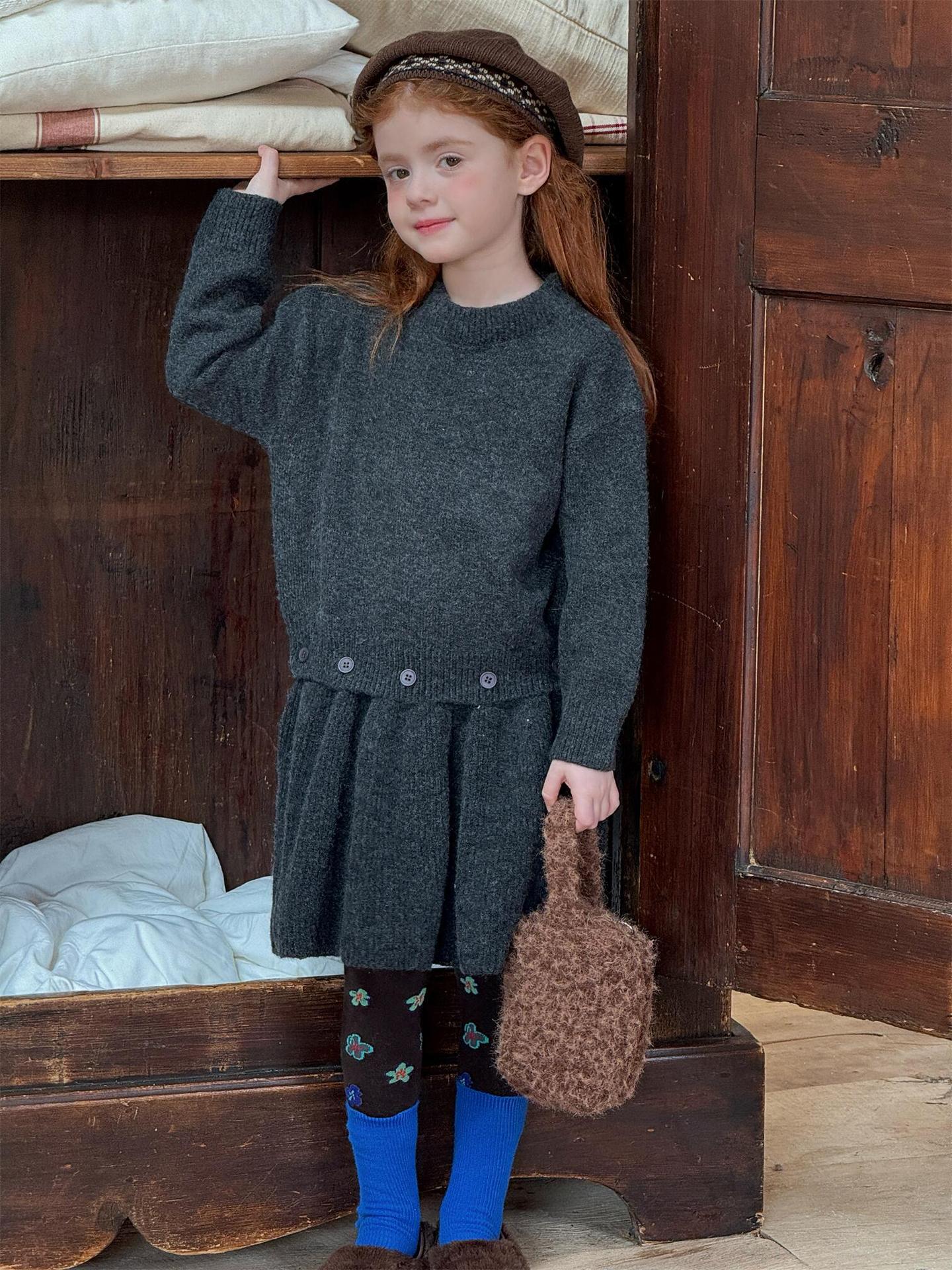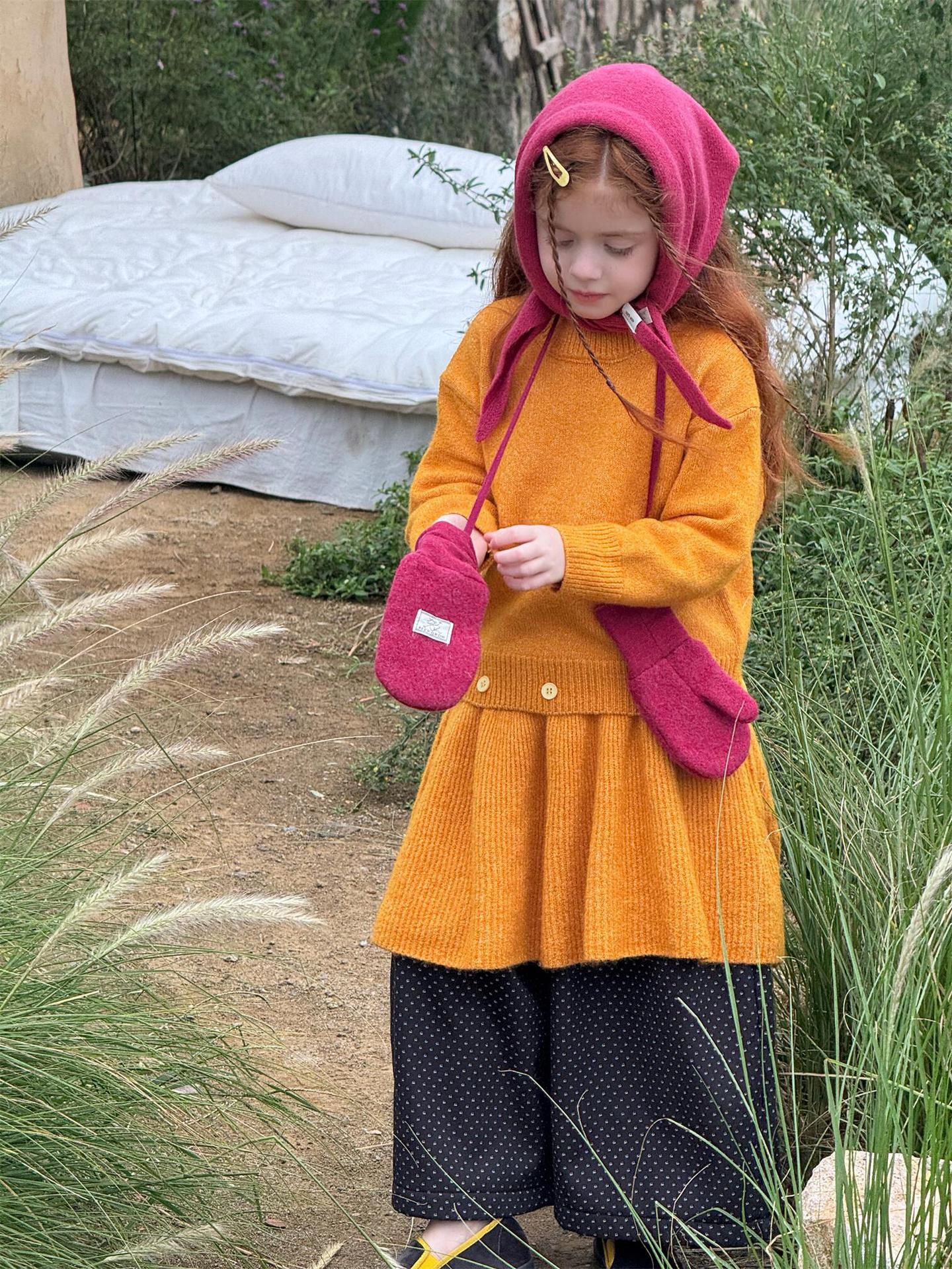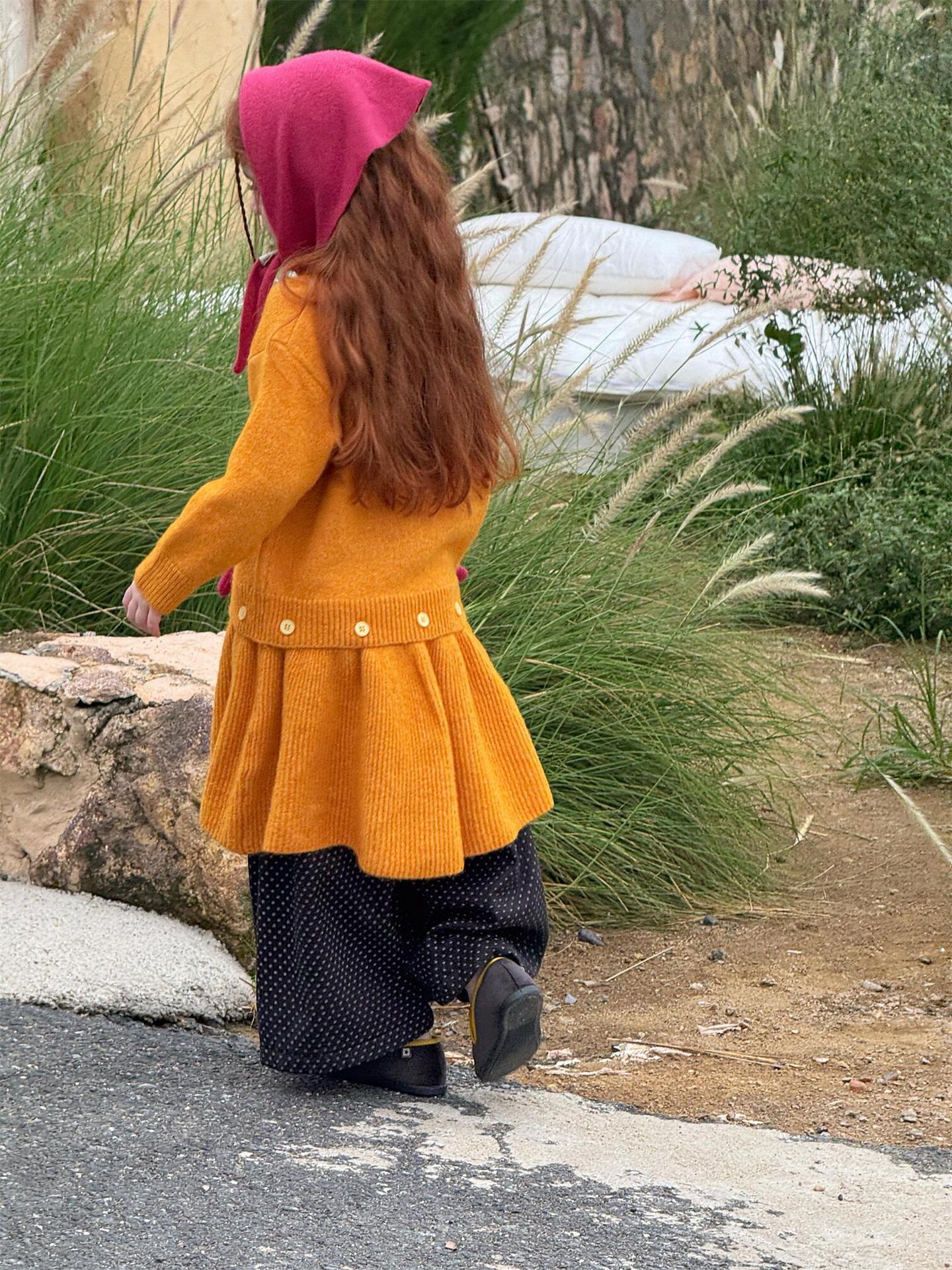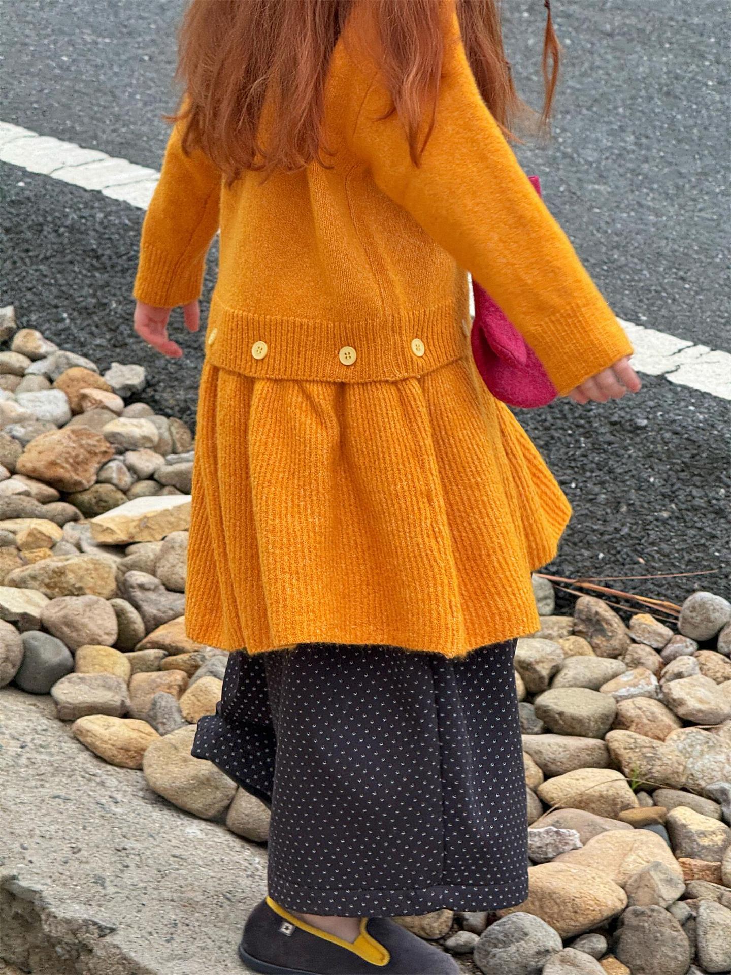 一枚でシックに決まる長袖セーターワンピースは、ニットのプルオーバーとフリル裾のドッキングデザインが目を引く一着です。洗練されたバイカラーのコントラストが全体のトーンに深みを加え、女の子のエレガントなスタイルを演出します。ゆったりとしたシルエットで着心地も良く、この上質なドレスは普段使いから特別な日まで活躍する子ども服として、ワードローブに彩りをもたらします。