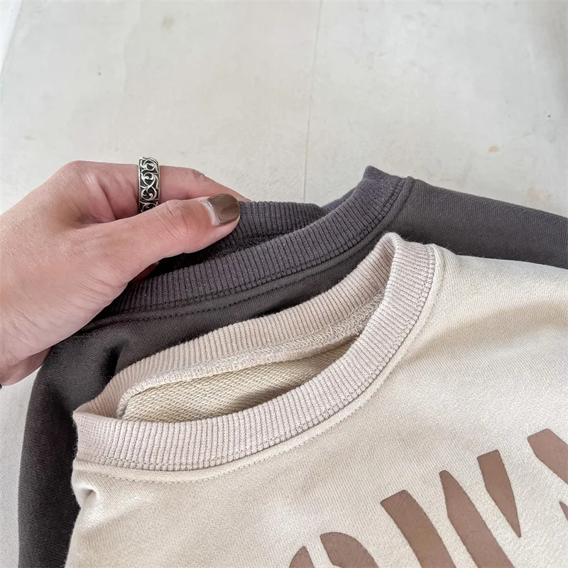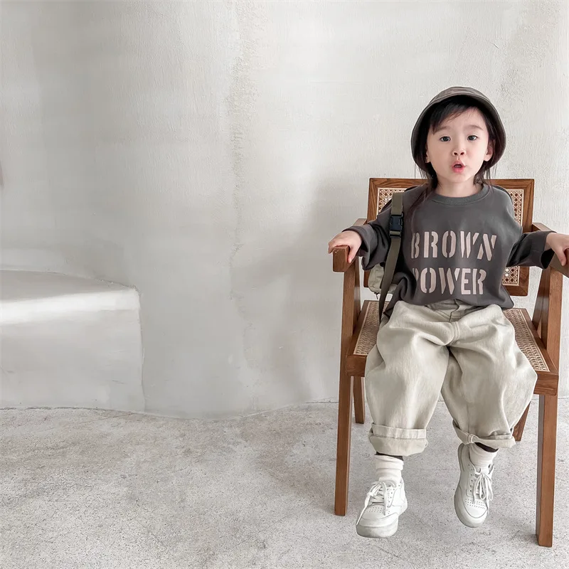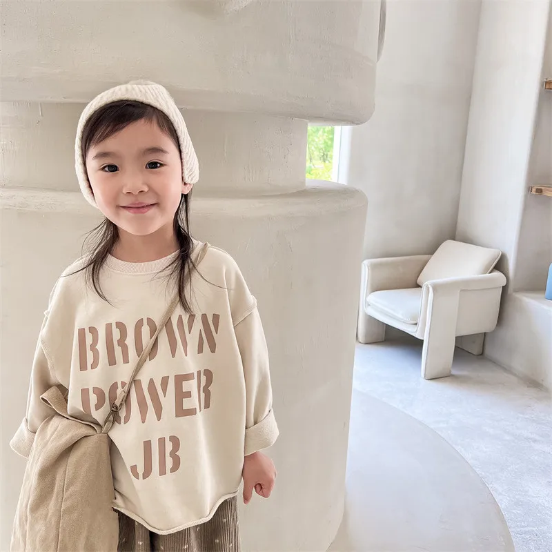 おしゃれなキッズ用レターロゴスウェットプルオーバーTシャツが新登場!この秋、お子様のカジュアルスタイルをアップデートしましょう。快適な着心地とスタイリッシュなデザインで、お子様が目立つこと間違いなしです。