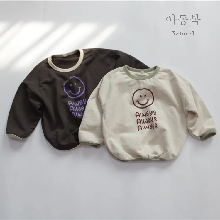 キッズ スマイル レターロゴ 長袖 ルーズ Tシャツ トップス【mh0001303】
