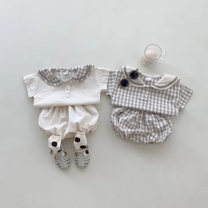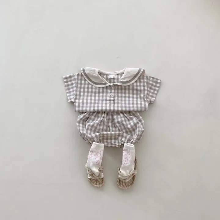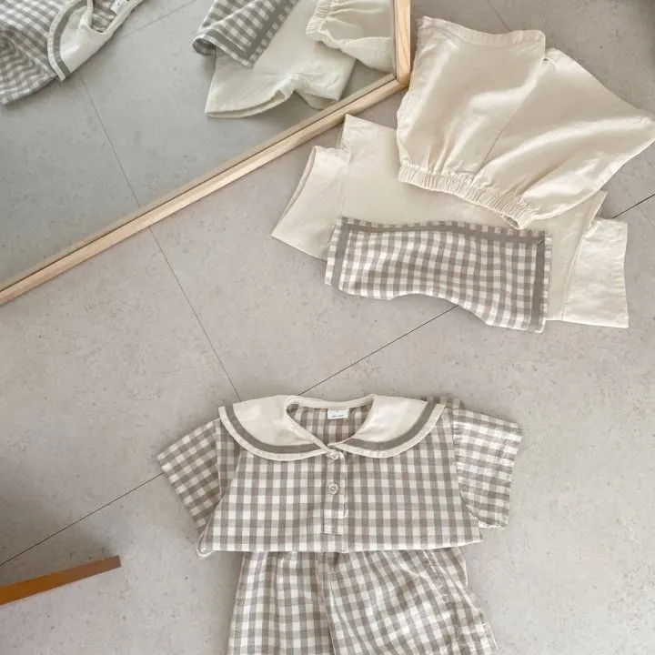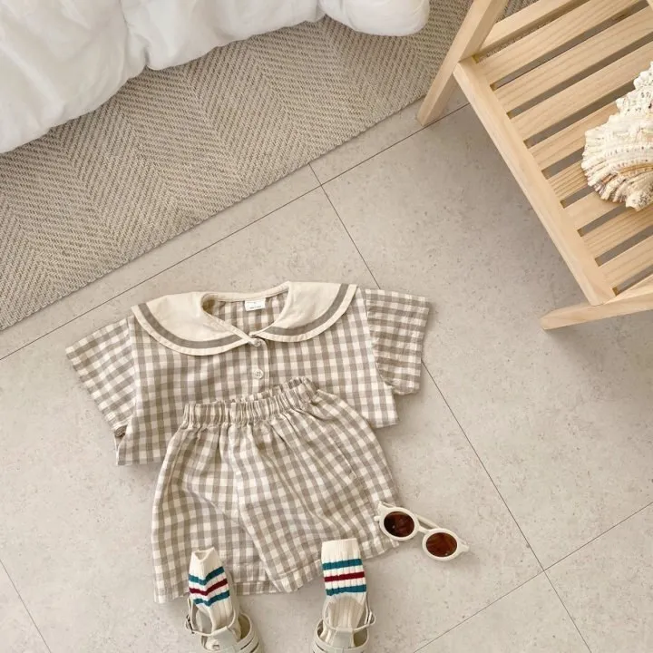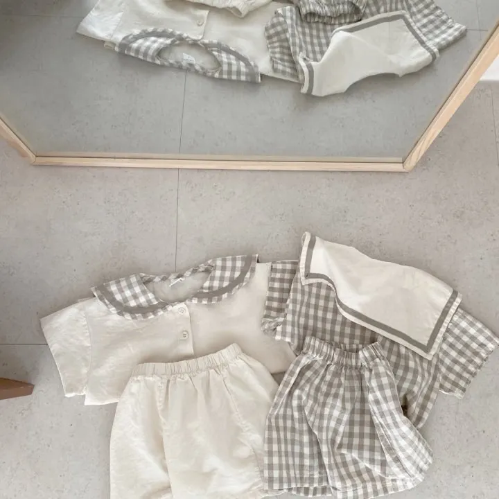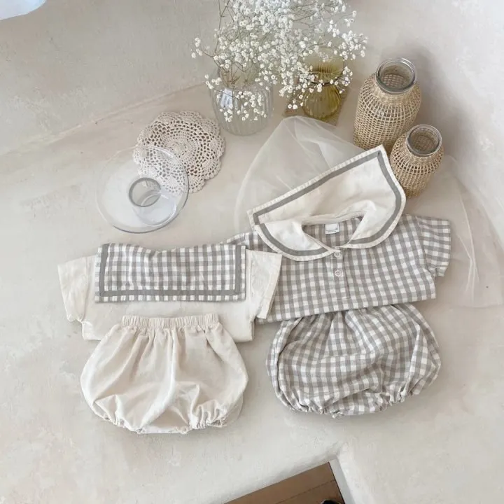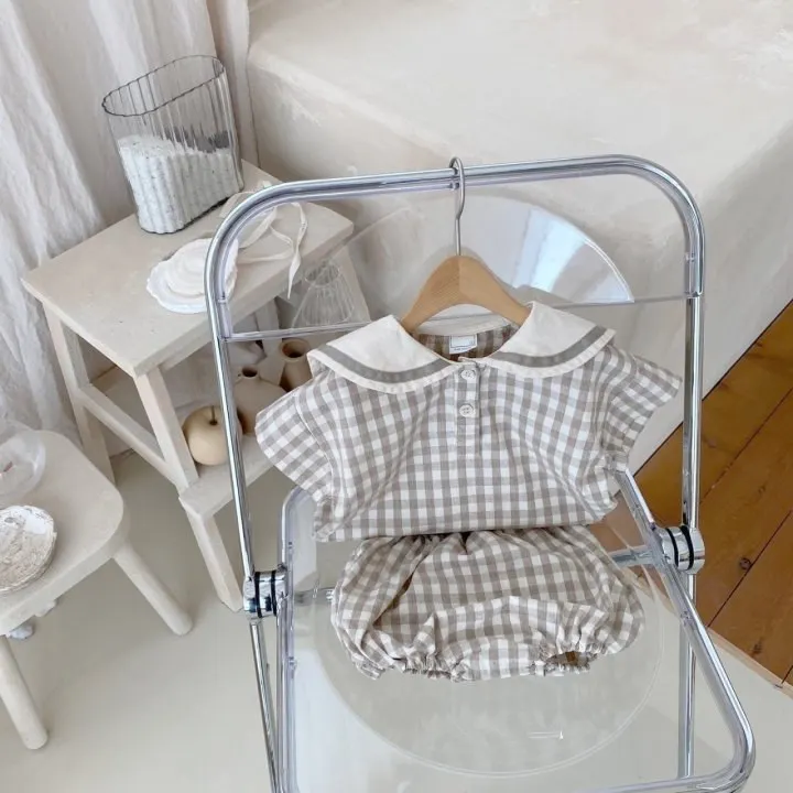 ベビーセットアップ 2点セット 半袖セーラーカラーシャツブラウス+ショートパンツ チェック無地【mh0004733】