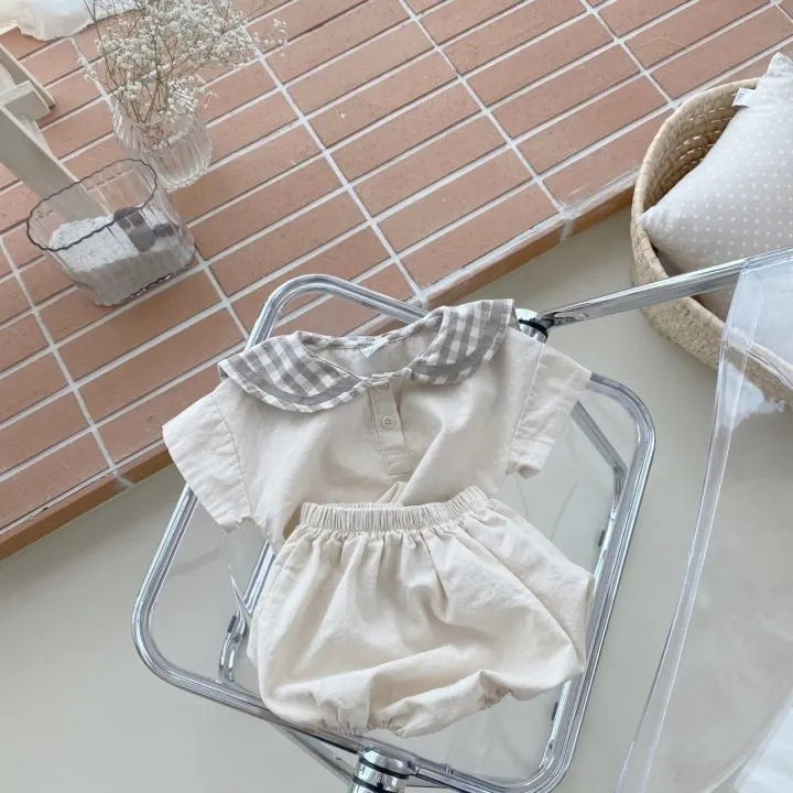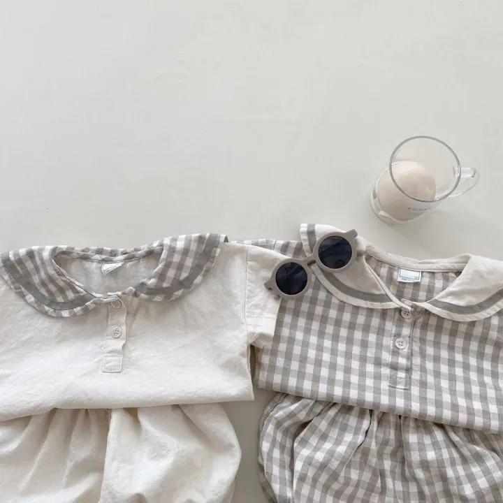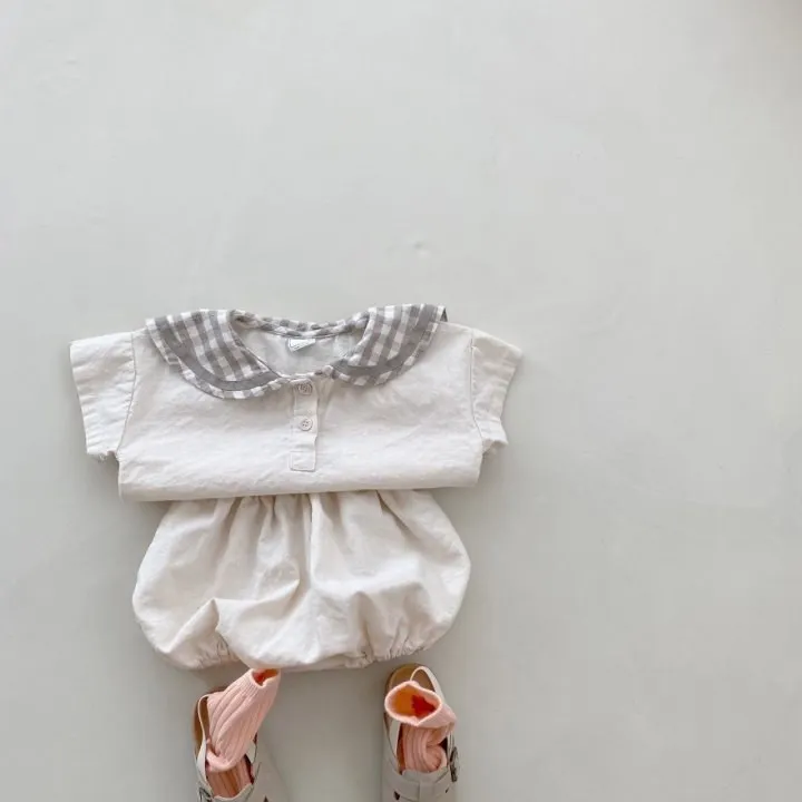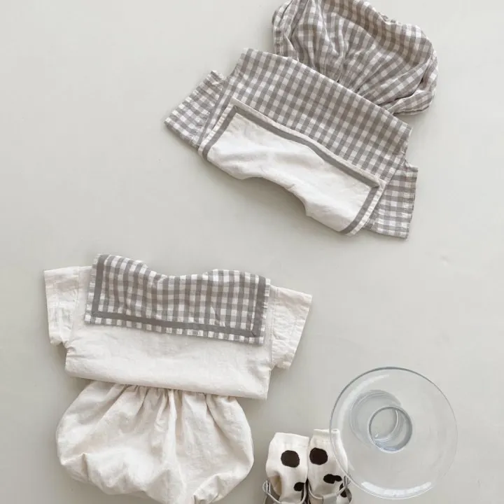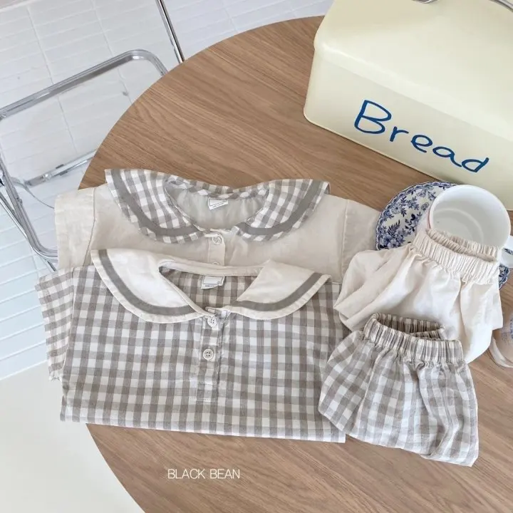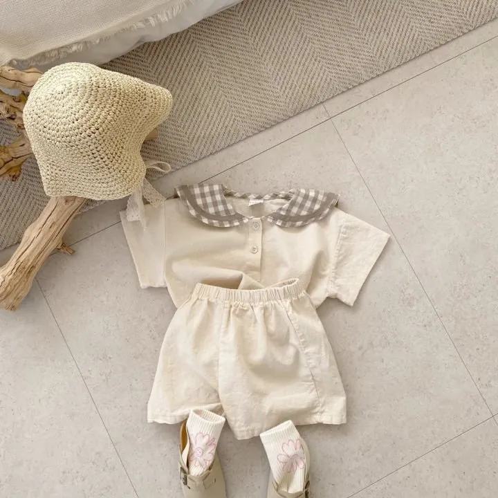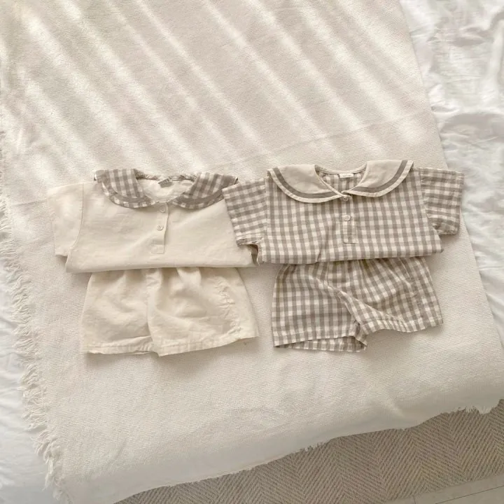 ベビーセットアップ 2点セット 半袖セーラーカラーシャツブラウス+ショートパンツ チェック無地【mh0004733】