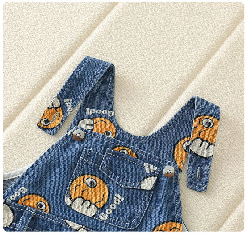 このベビーオーバーオール 帽子セット は、夏に最適なアイテムです。 軽量のデニム生地と、かわいいスマイルプリントが特徴的です。帽子とのセットで、おしゃれなカウボーイスタイルをお楽しみいただけます。
