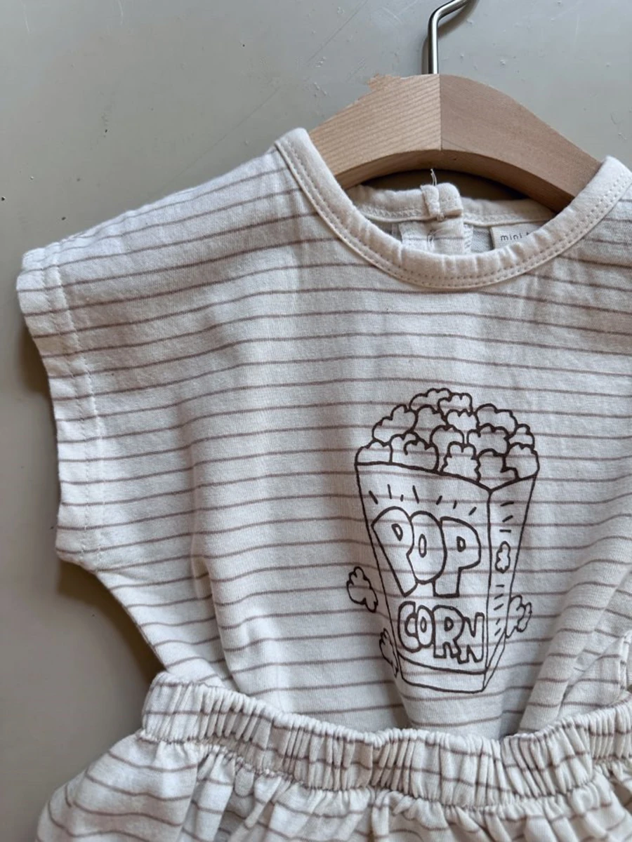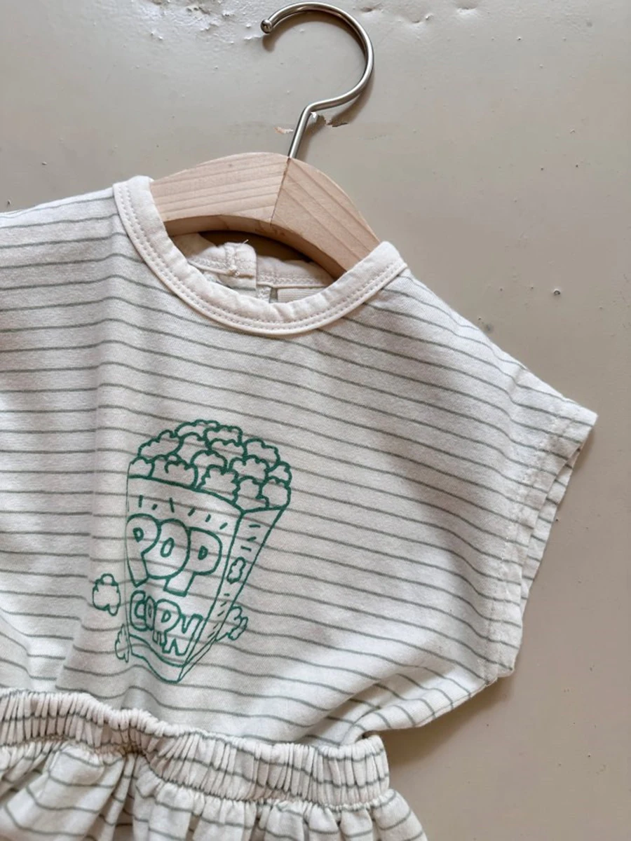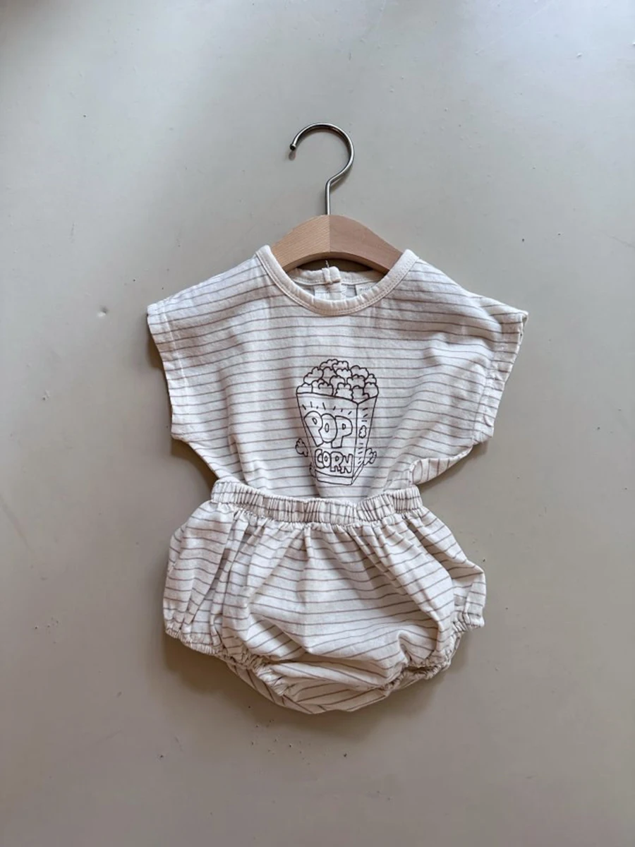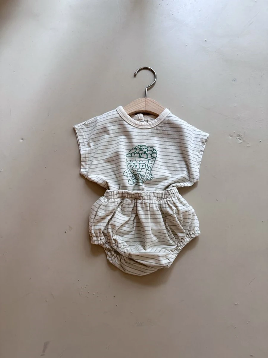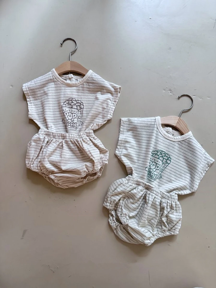 ベビーセットアップ 2点セット 半袖Tシャツ+ブルマパンツ ボーダー ポップコーンプリント 2カラー【mh0005940】