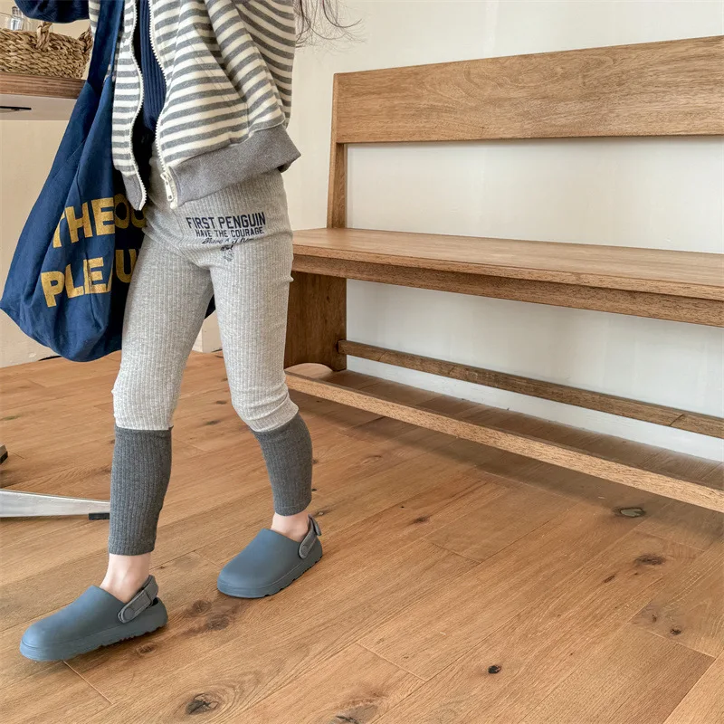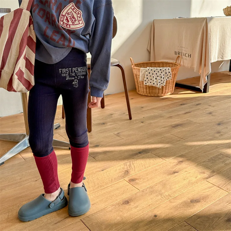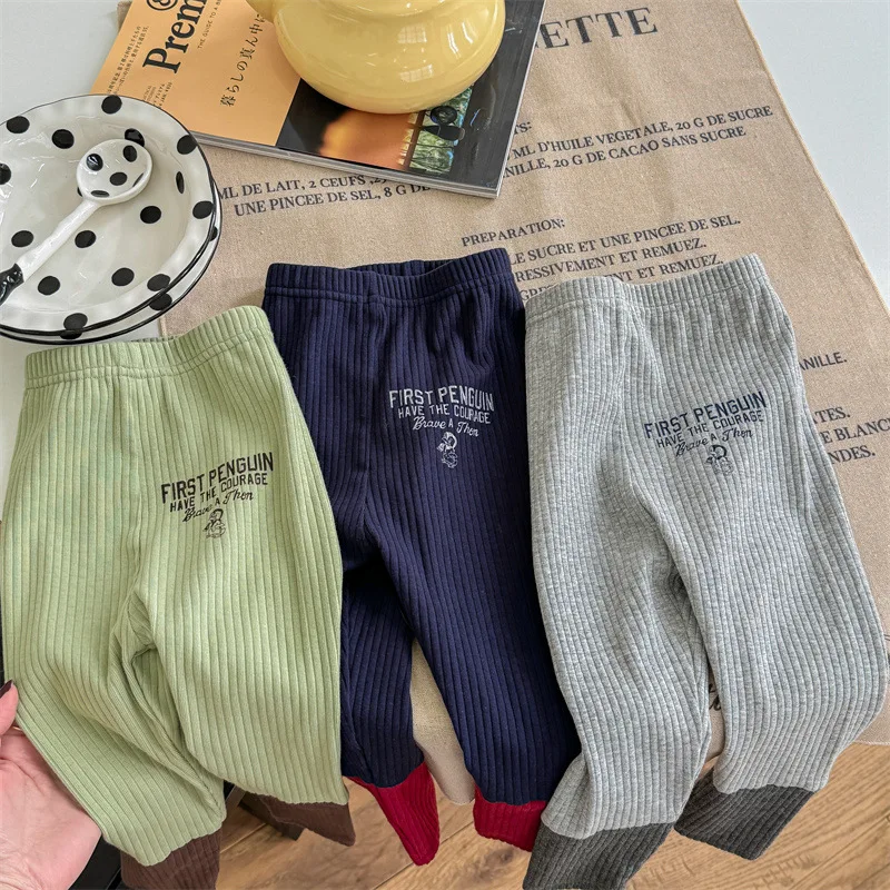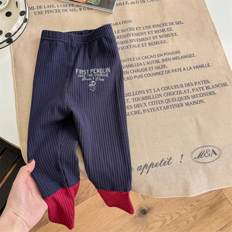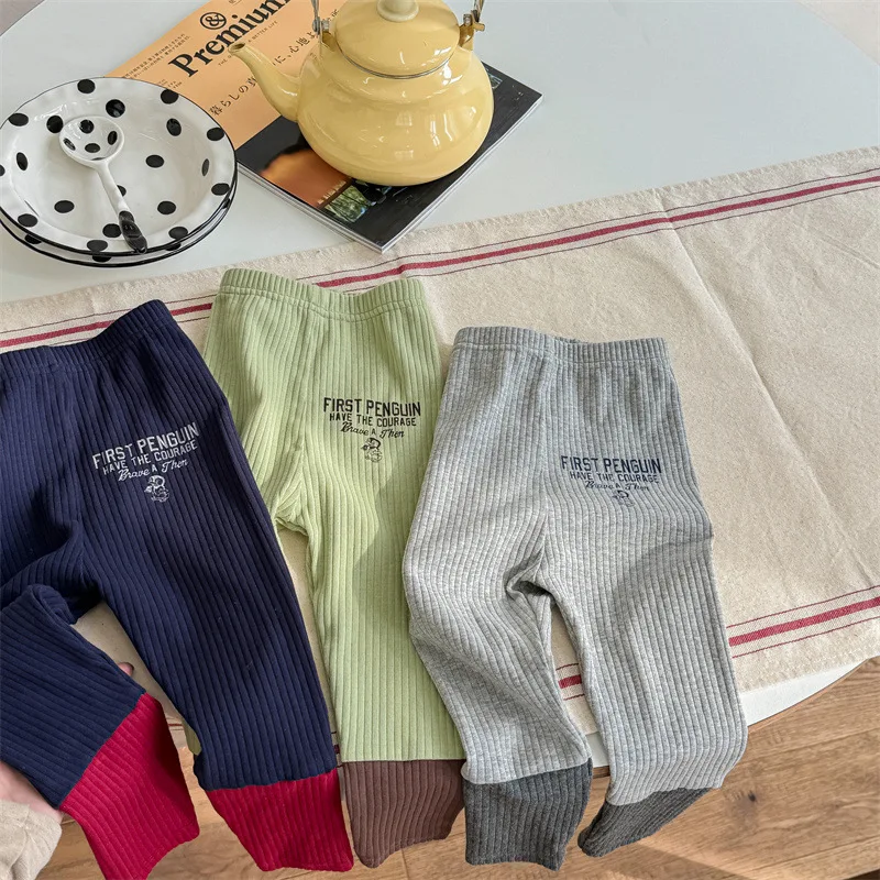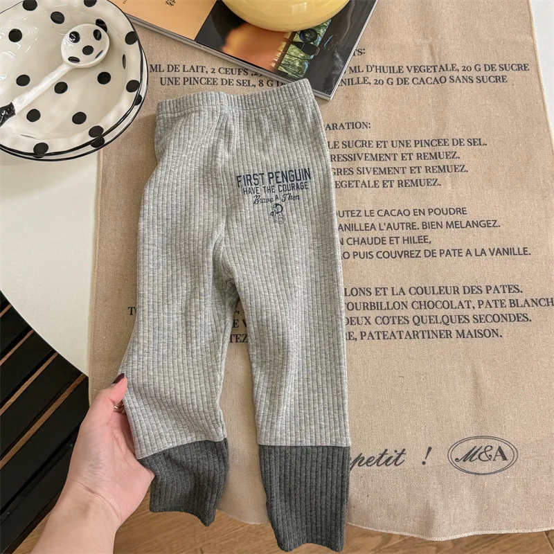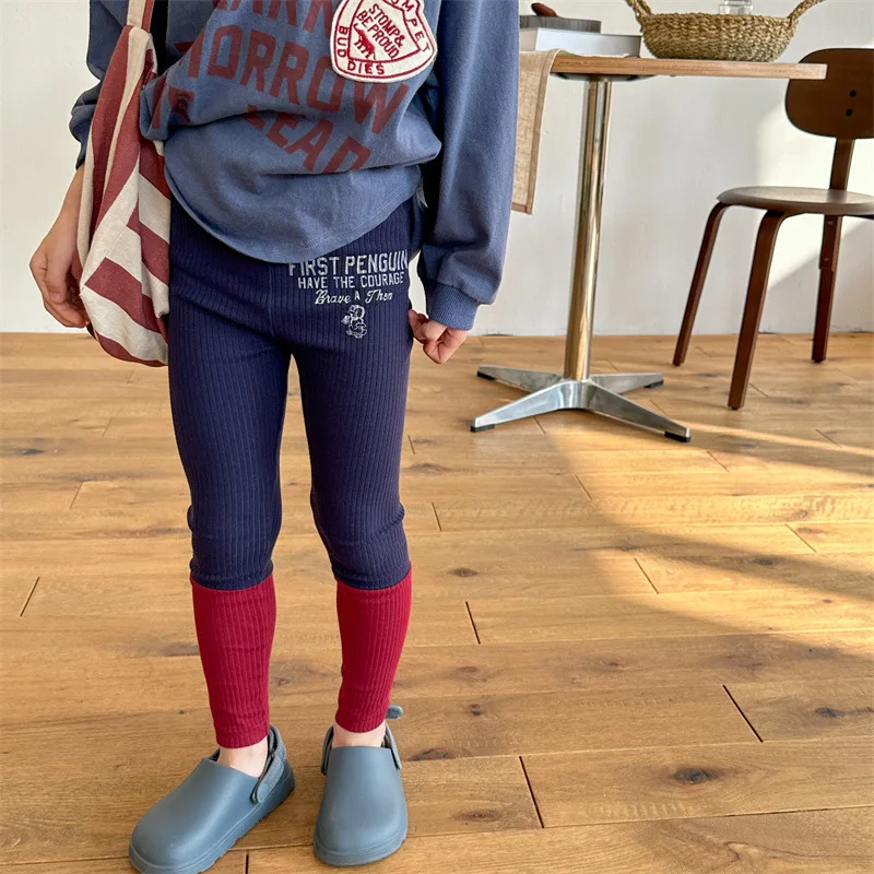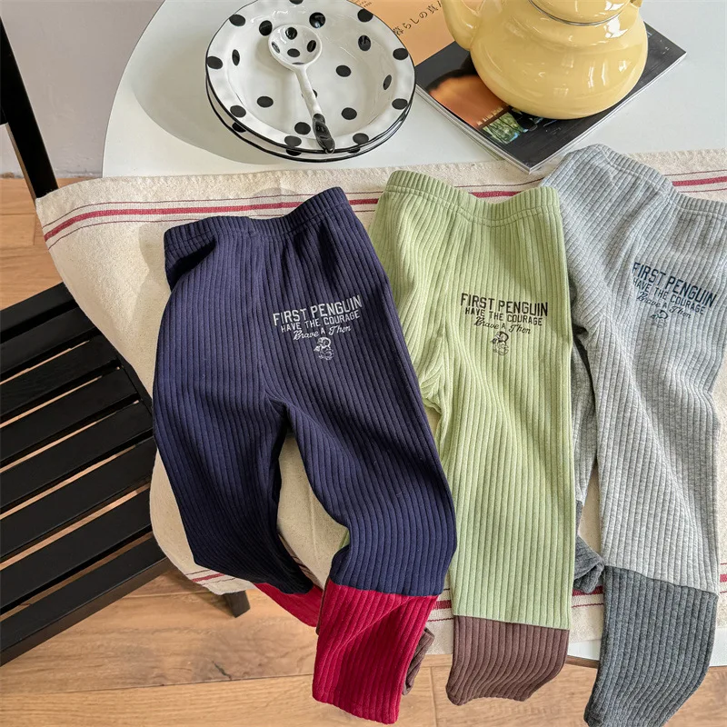 キッズパンツ ペンギンレターロゴプリントパッチワークリブレギンスパンツ 3カラー【mh0006871】