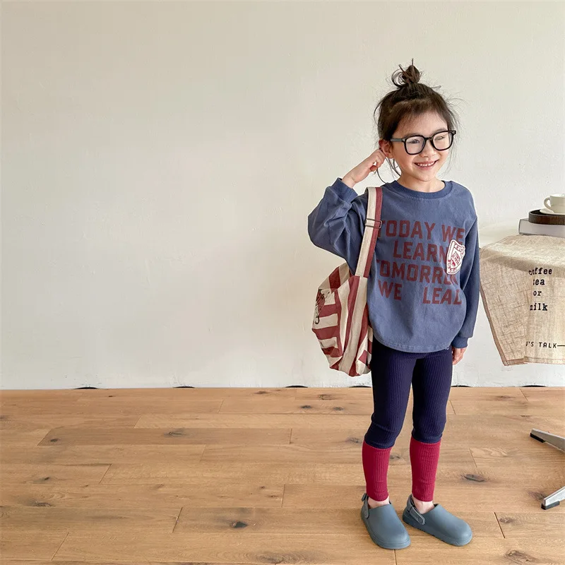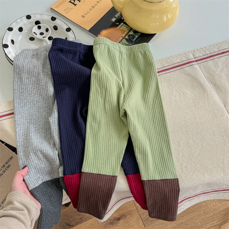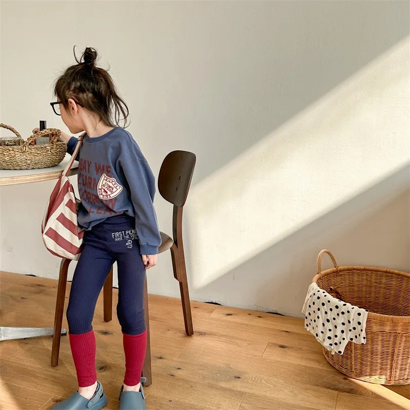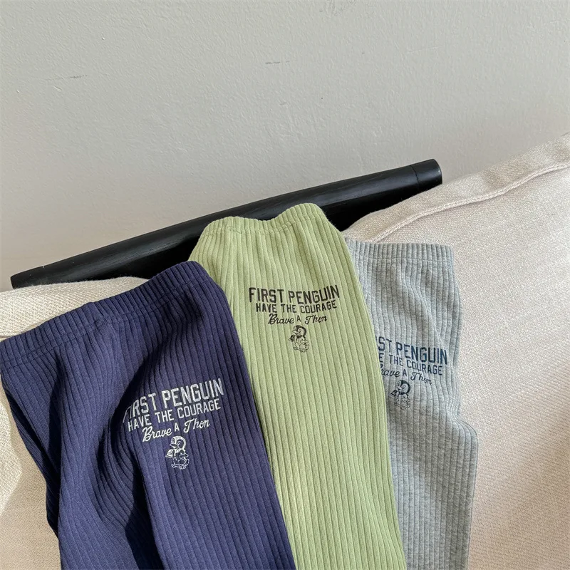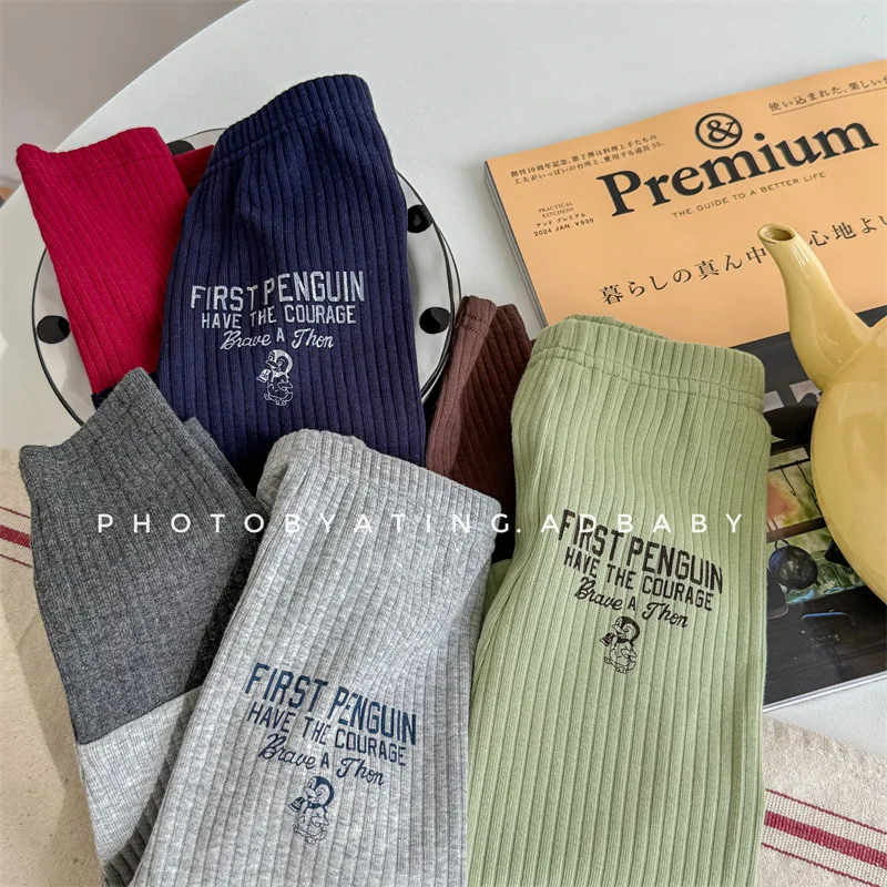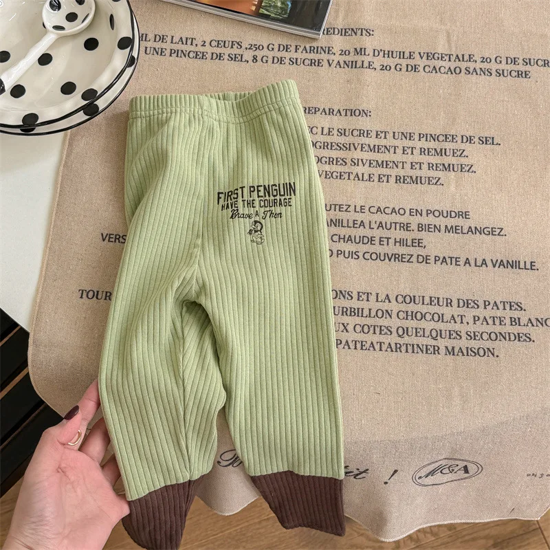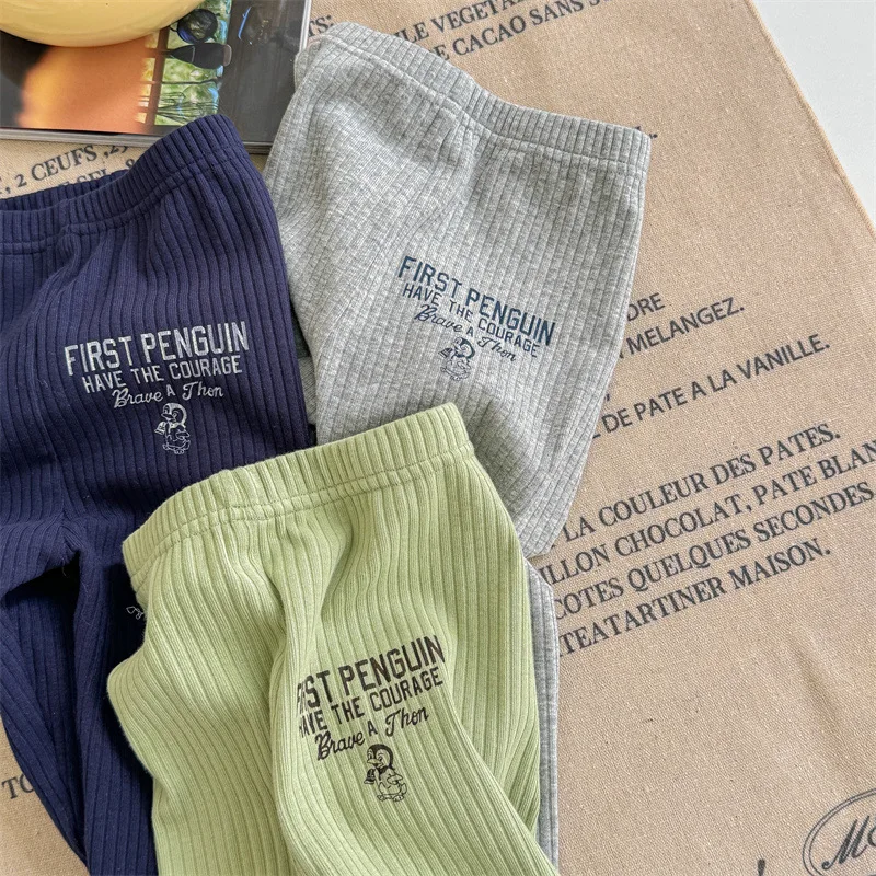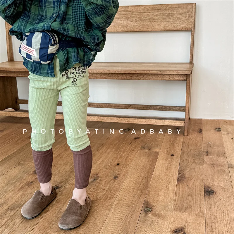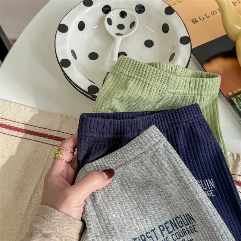 キッズパンツ ペンギンレターロゴプリントパッチワークリブレギンスパンツ 3カラー【mh0006871】