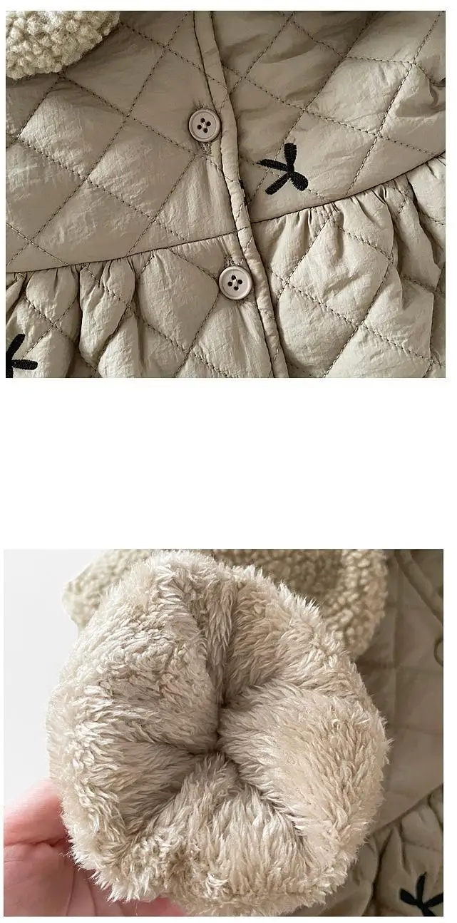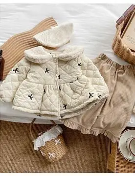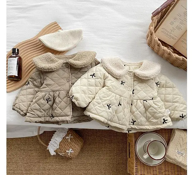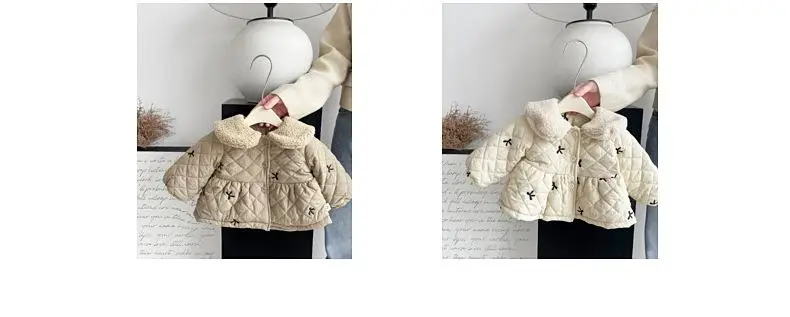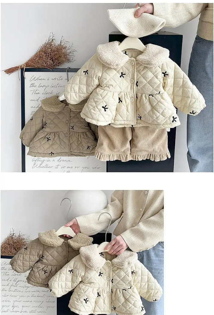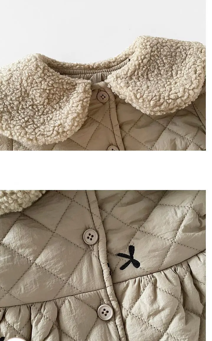 #ベビー服 #キルティングコート #リボン刺繍 #ボアフリース襟 #ペプラムデザイン #韓国子供服 #冬用ベビーアウター