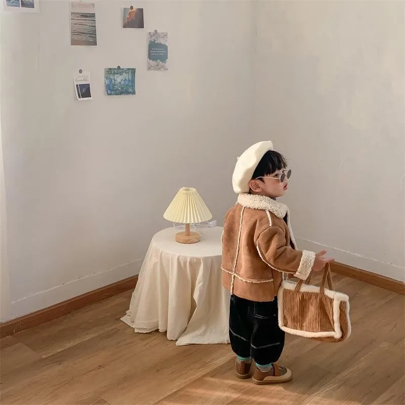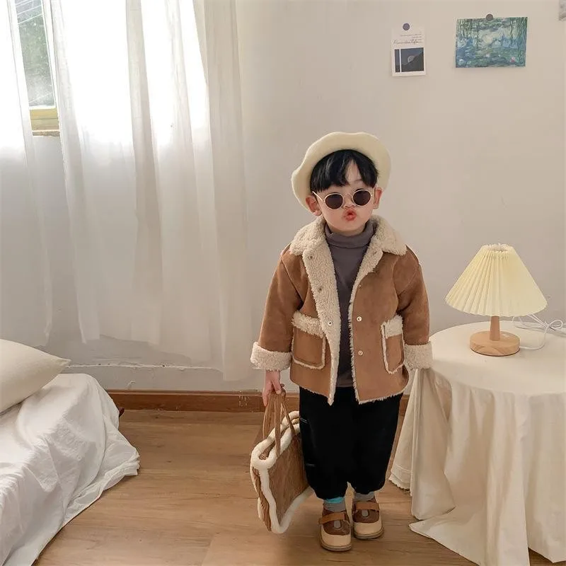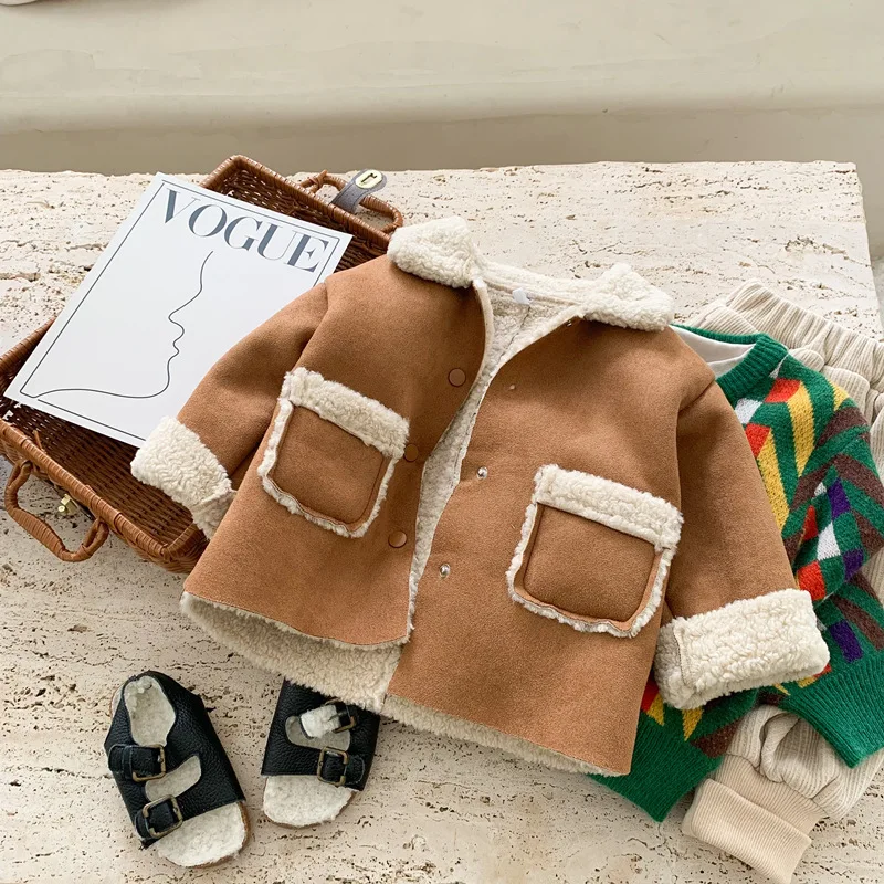 #キッズファッション #フェイクムートンジャケット #裏ボアフリース #暖かいコート #長袖アウター #赤ちゃん服 #冬用ジャケット