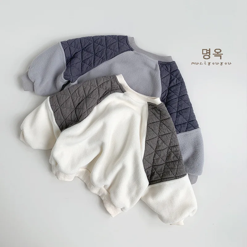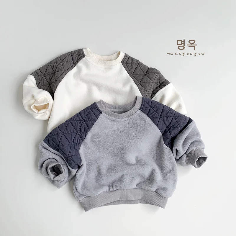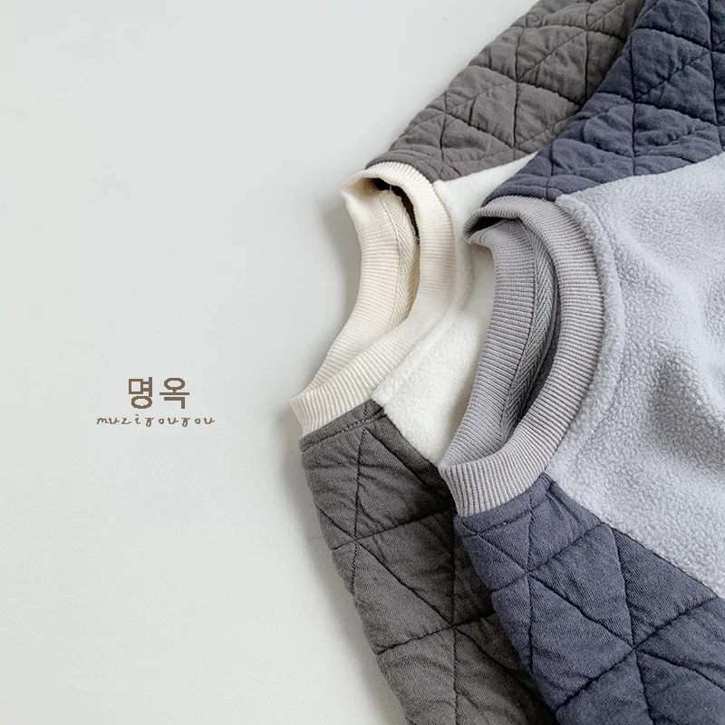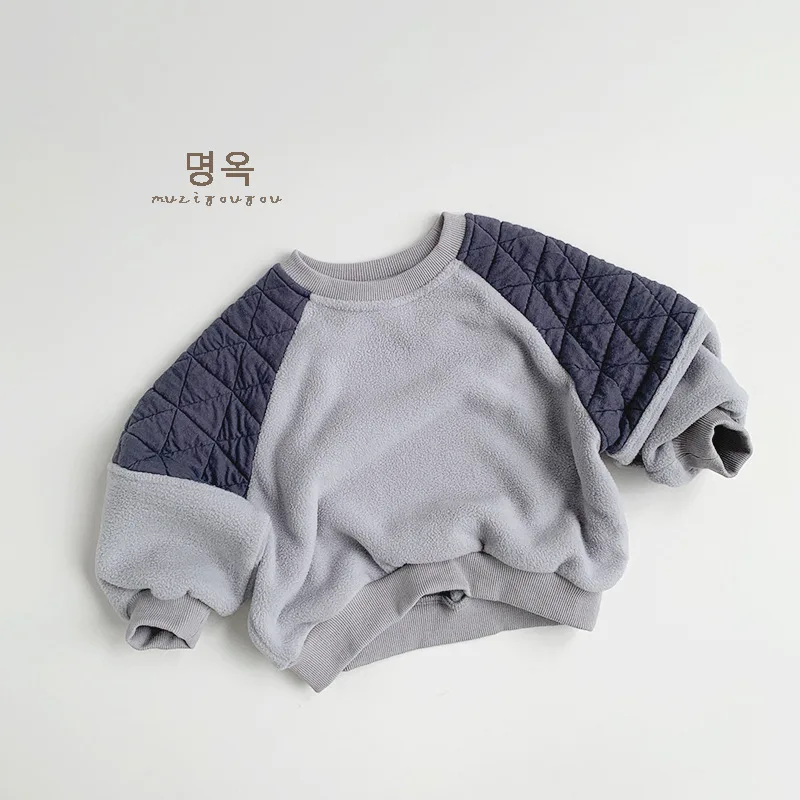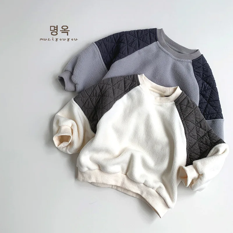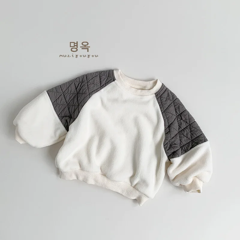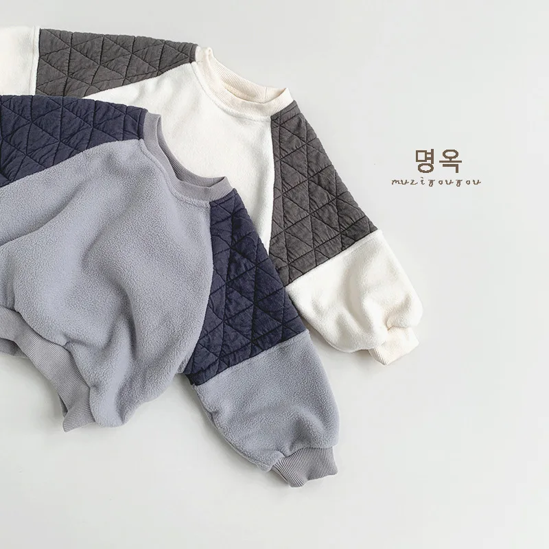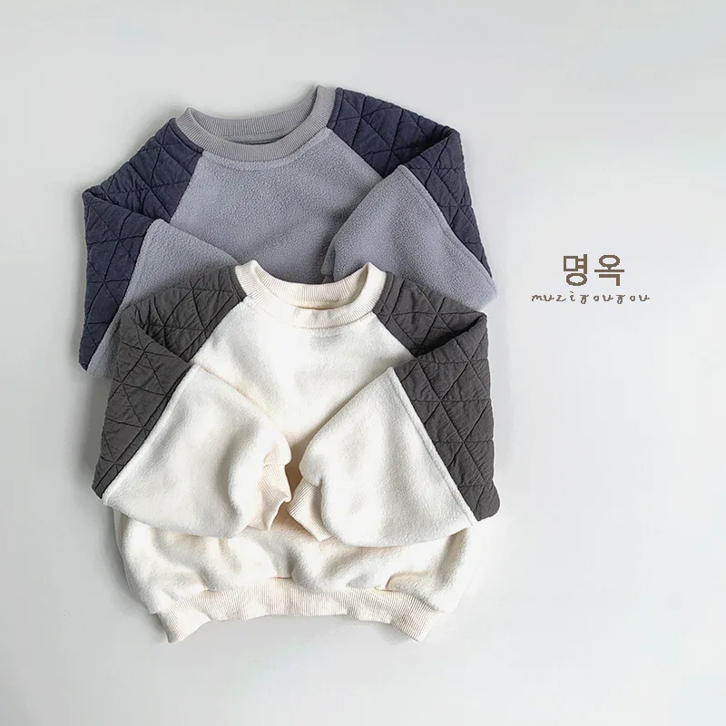 キッズトップス 裏フリースキルティングパッチワーク長袖スウェットトレーナー【mh0008400】