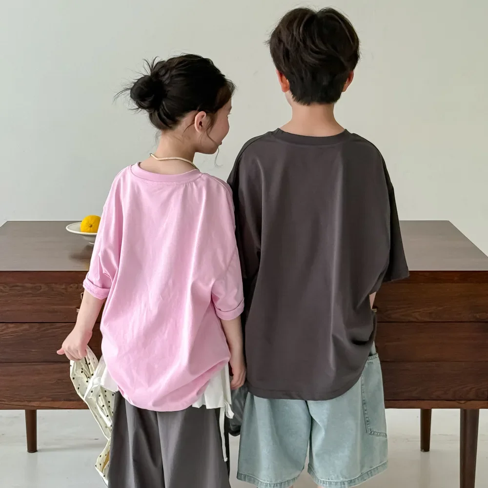 柔らかなコットン素材を使っているので、肌触りも良く、通気性も抜群。クルーネックでゆったりとしたシルエットなので、男の子にも女の子にもおしゃれに着こなせます。動きやすさも抜群で、夏の普段使いにぴったりのカジュアルトップスです。公園遊びからお出かけまで、さまざまなシーンで活躍する一枚となるでしょう。