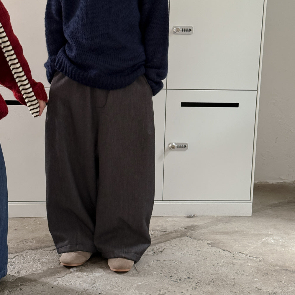 デニム風の裏起毛素材を採用した、キッズワイドパンツです。無地ながらも、デニム特有の風合いとルーズフィットストレートシルエットがスタイリッシュな印象を与えます。厚手裏起毛生地は、肌寒い季節も暖かく快適な穿き心地。ゆったりとしたサイジングで動きやすく、デイリーユースにぴったりの子ども服です。男の子にも女の子にも着せられるユニセックスなカジュアルパンツとして、様々なトップス自然と馴染みます。