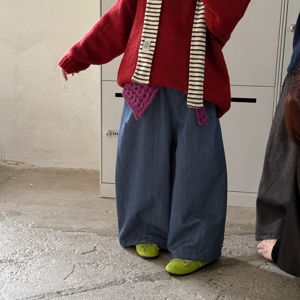 ワイドパンツ キッズ 裏起毛 厚手 デニム風 無地 ストレート ルーズフィット【mh0011680】