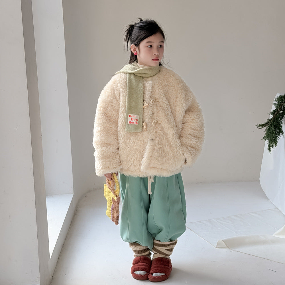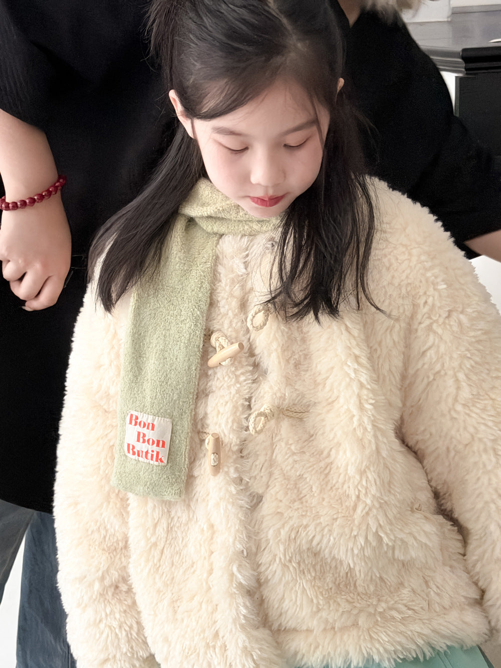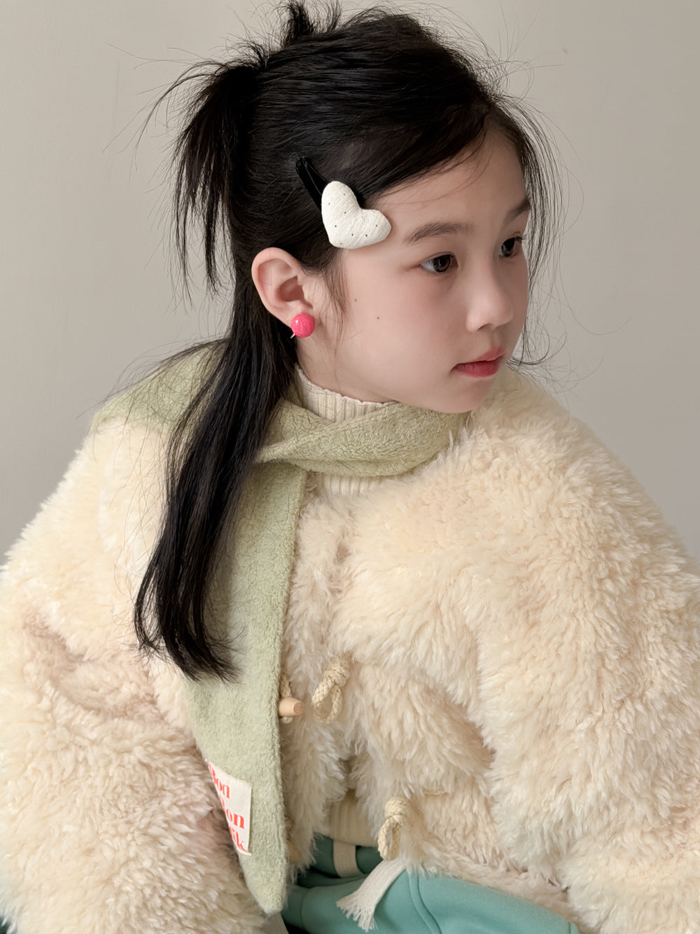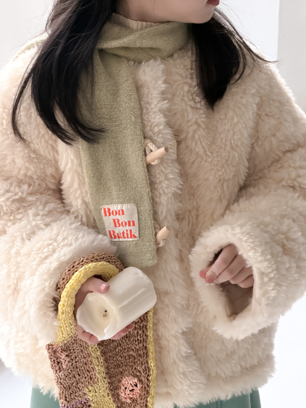 ふんわりとしたファーフリース素材が目を引くダッフルジャケットは、柔らかな質感が魅力的なアウターです。クラシカルなトグルボタンがアクセントとなり、お子さまの上品で愛らしい雰囲気を演出するデザインに仕上がっています。軽やかな着心地と優れた保温性を両立させた子供服は、日常のコーディネートをスタイリッシュに格上げする子ども服です。