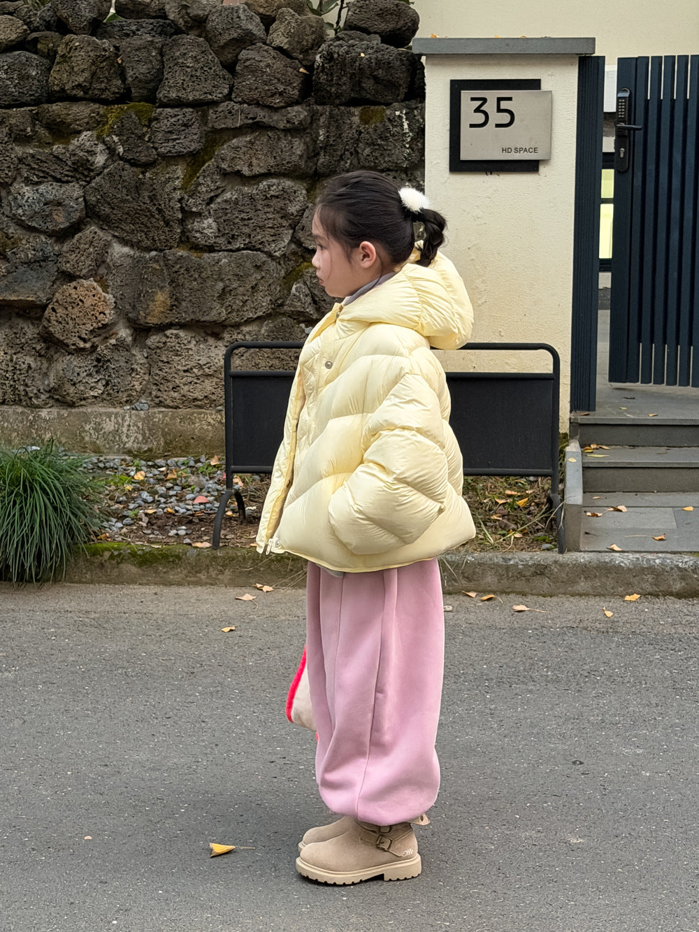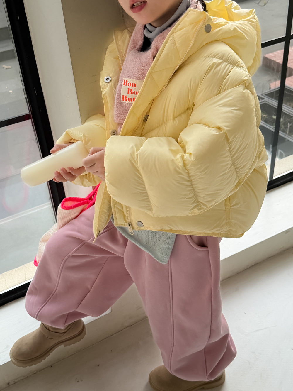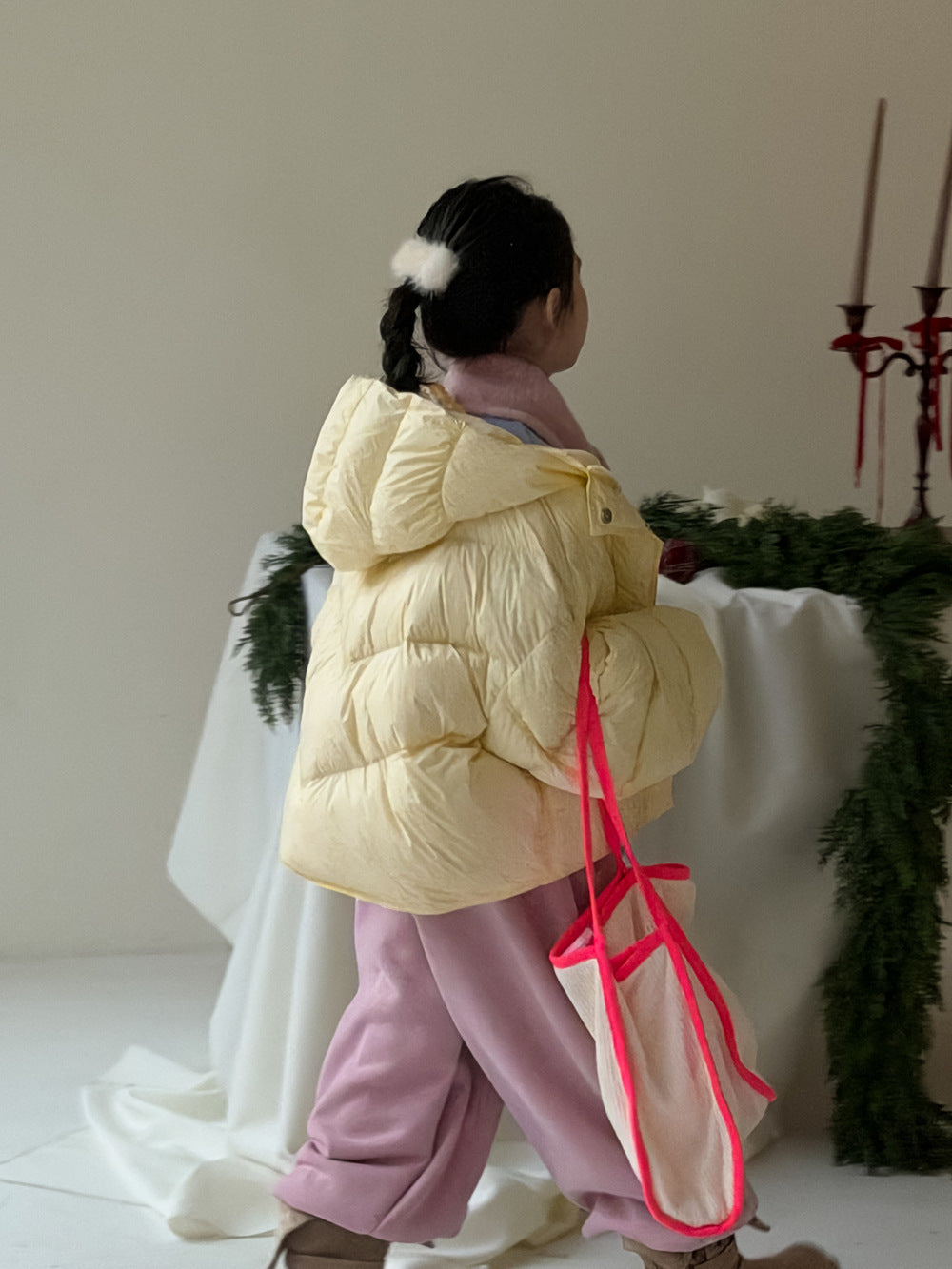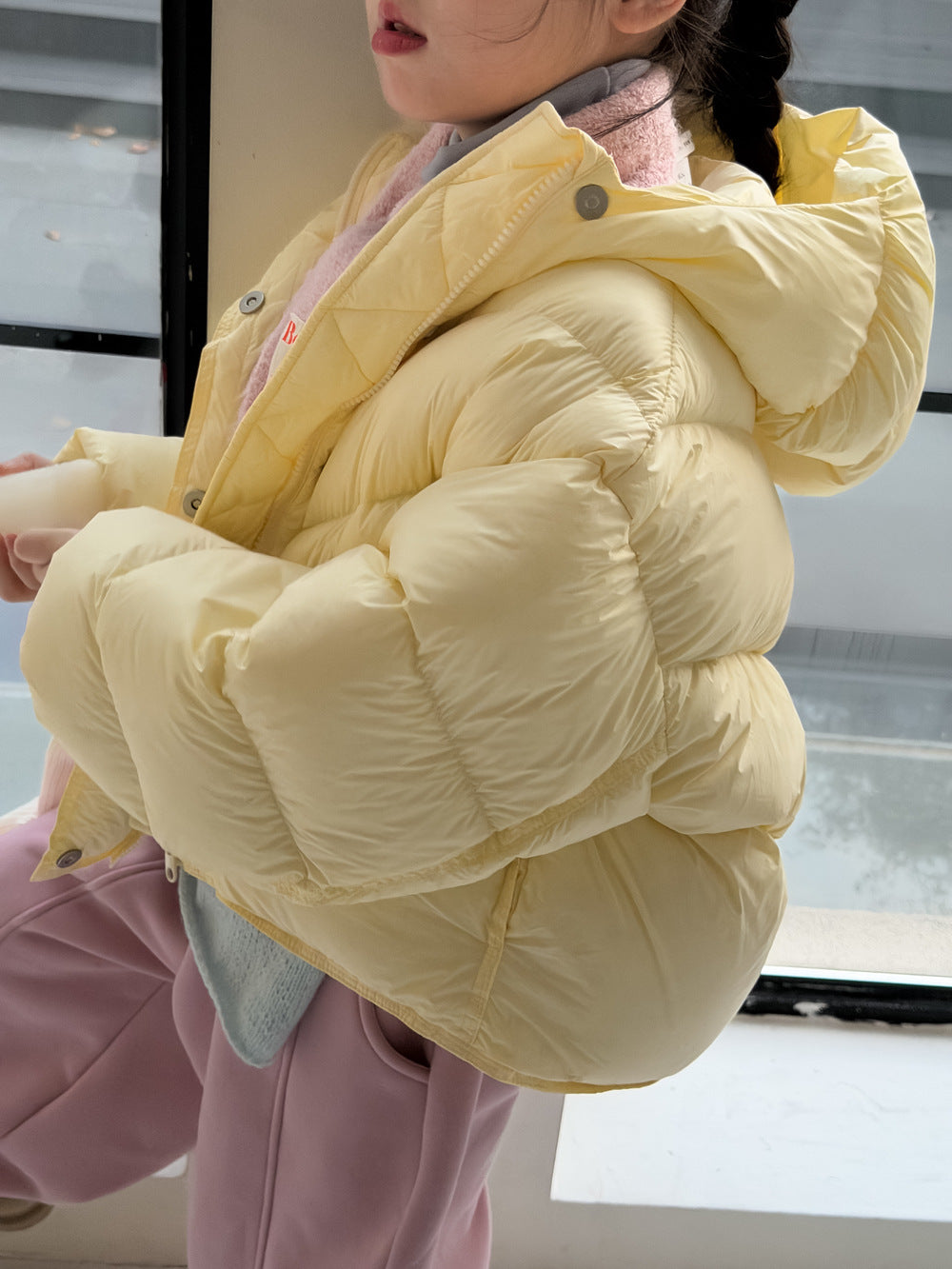 ボリューム感のあるシルエットが印象的なフーディダウンジャケットは、首元を優しく包み込むスタンドカラーのデザインが特徴です。ボンバージャケットのような軽やかな着用感と暖かさを両立させたアウターは、元気に活動するお子さまの日常を快適にサポートします。洗練されたデザインの子供服は、シンプルなコーディネートをモダンに格上げし、都会的な表情を引き立てる子ども服として重宝するコートです。