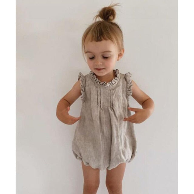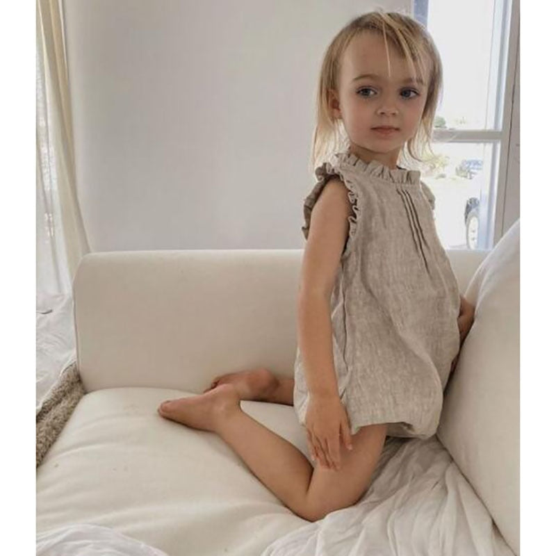 ベビー コットンリネン ノースリーブ ロンパース【mh0000367】