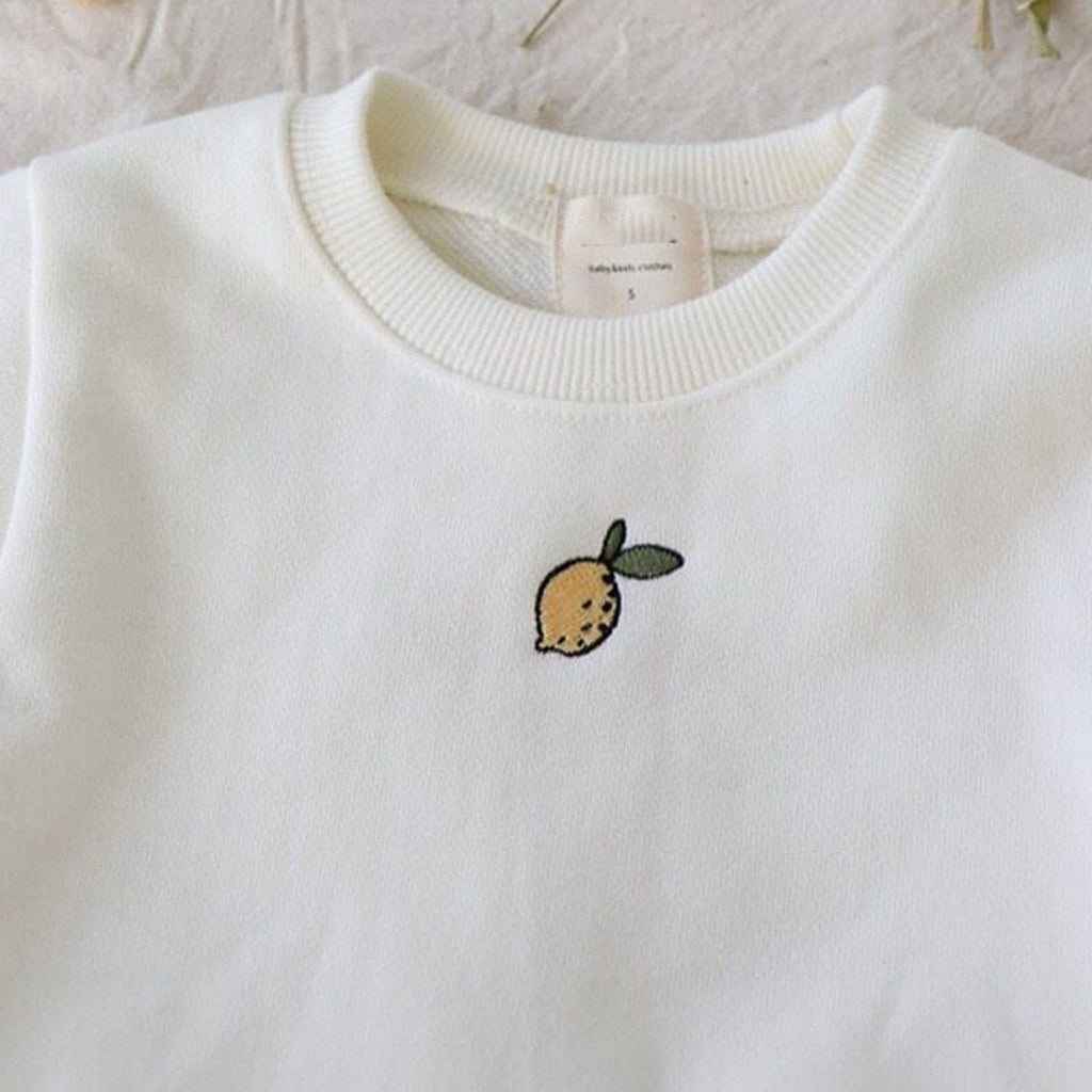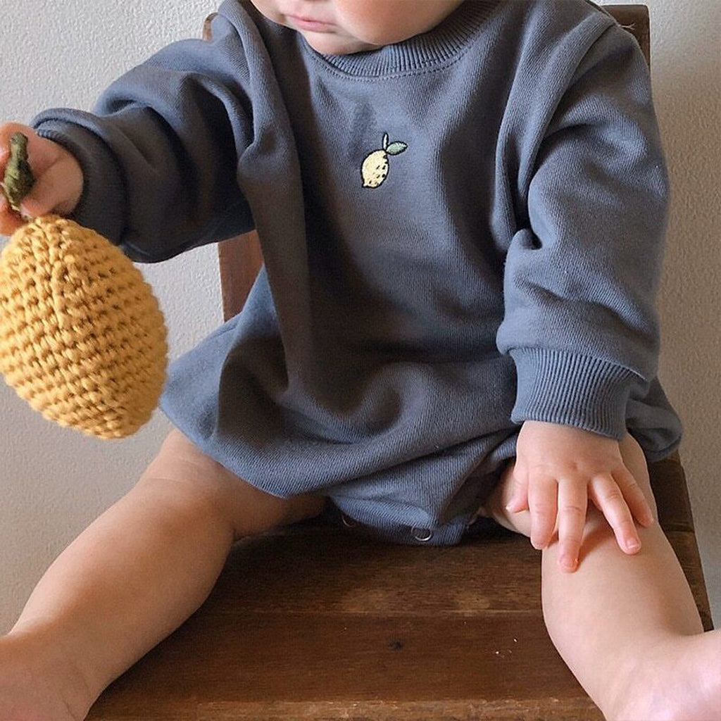 ベビーロンパース レモン刺繍ワンポイント 長袖ボディスーツ グレー/ホワイト/ピンク/3カラー【mh0000418】