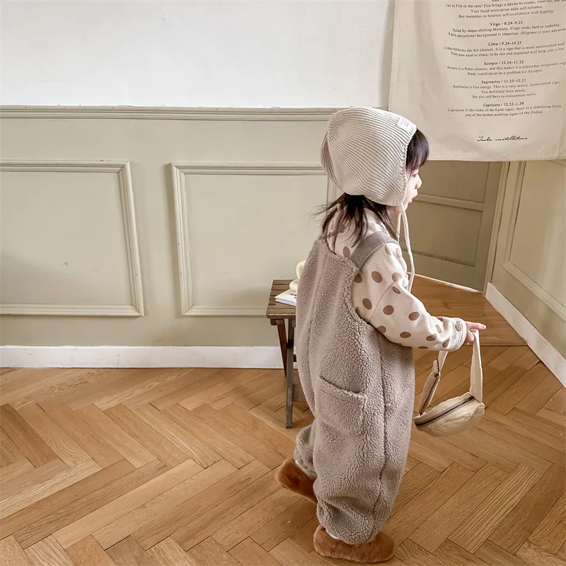 キッズ向けボアフリースサスペンダーパンツ・サロペットが登場!冬のおしゃれと暖かさを叶えます。