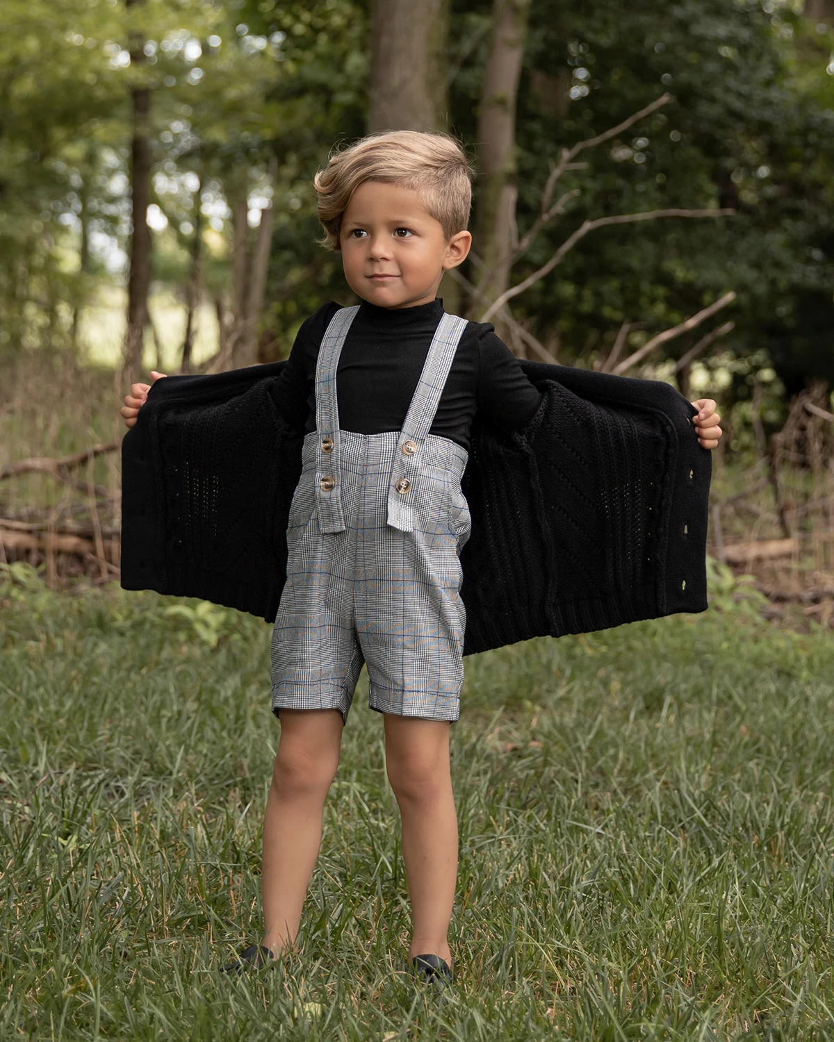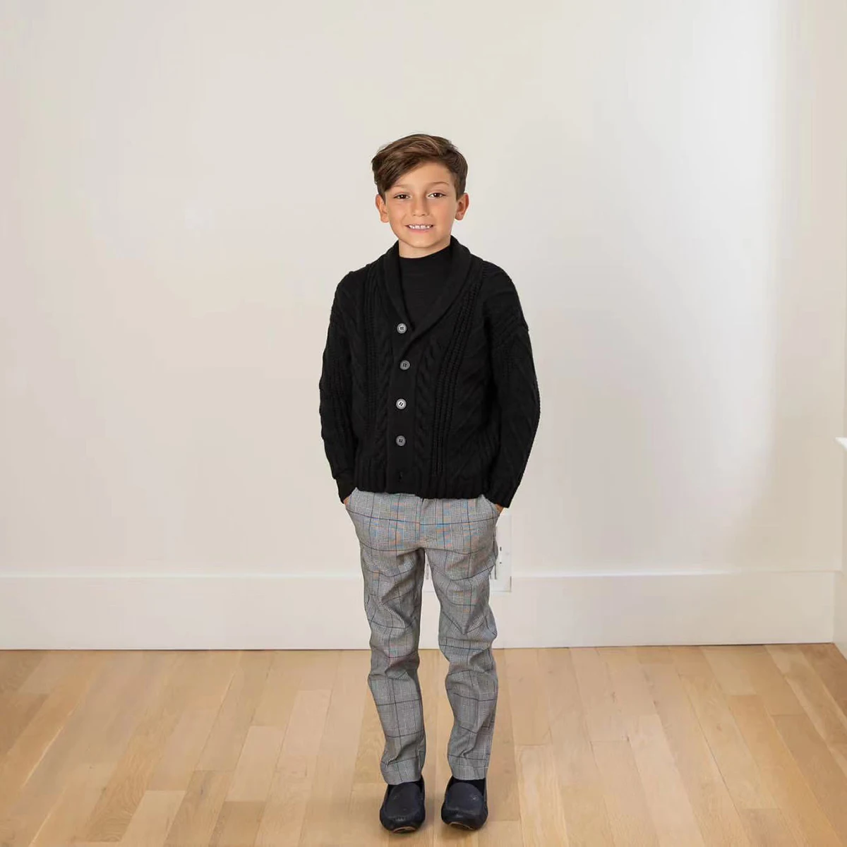 新しい季節にぴったりの、ベビーキッズジュニア向けのケーブルニットカーディガンが登場しました。トラッドなチェック柄とサスペンダーパンツとのセットアップでおしゃれなリンクコーディネートにピッタリです。柔らかな素材で、お子様が快適に過ごせるデザインとなっています。兄弟でお揃いで楽しめるサイズ展開も魅力です。
