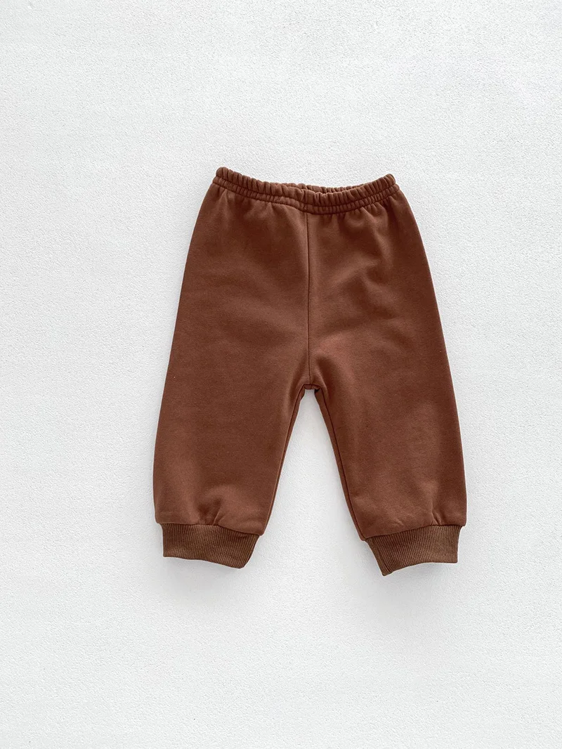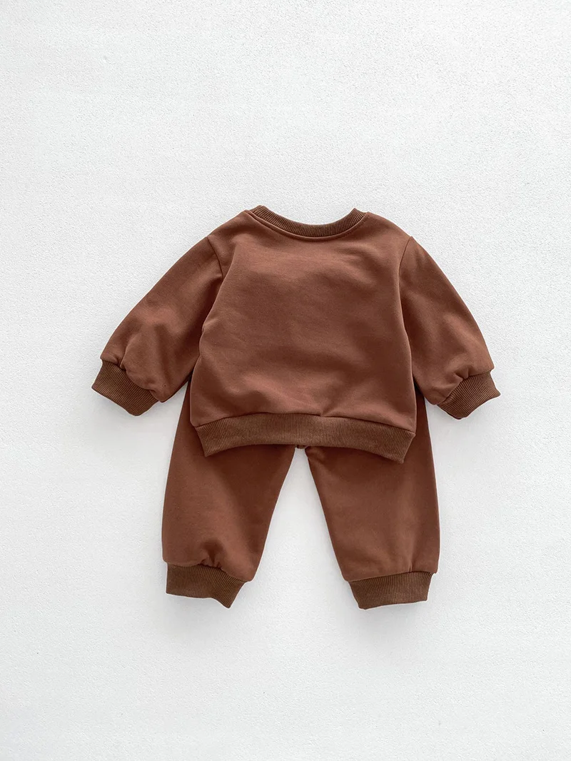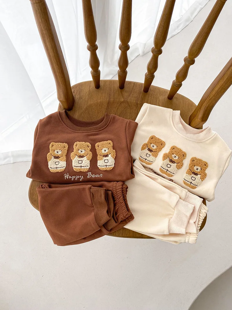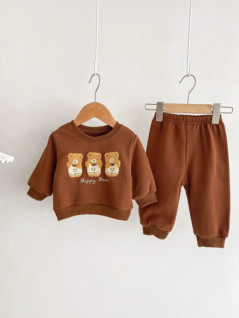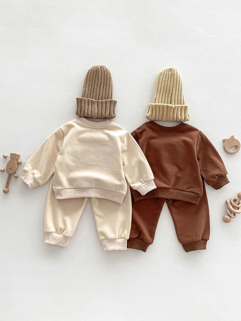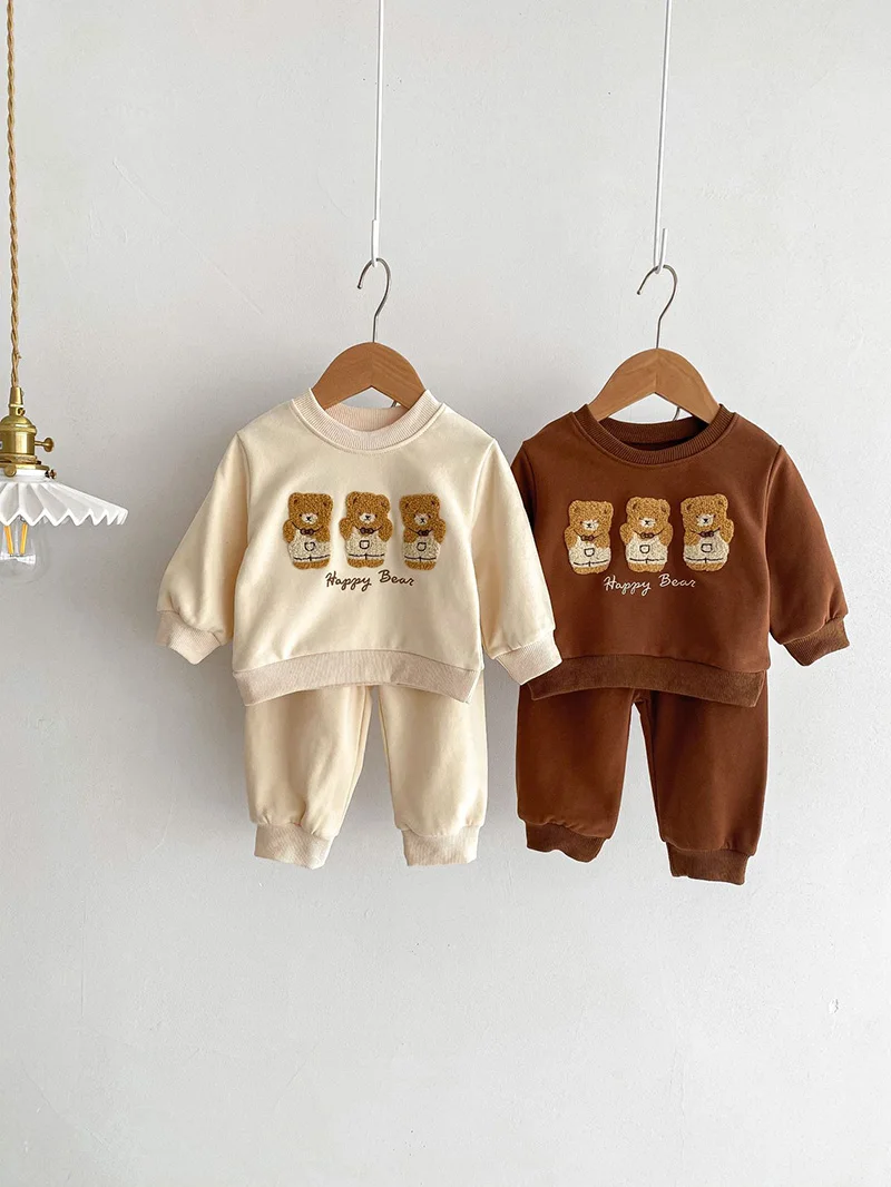 ベビーセットアップ 2点セット スウェットトレーナー スウェットパンツ ベアくま刺繍 ベージュ/ブラウン/2カラー