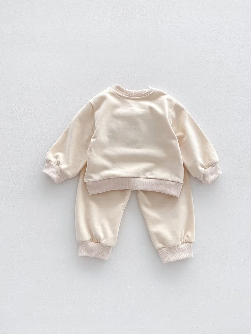 日常の快適な遊びやお出かけに最適な、ベビーセットアップが新登場。可愛らしいベアくま刺繍がポイントで、2点セットでの提供です。スウェットトレーナーとパンツは動きやすく、柔らかい肌触りがお子様にやさしい素材を使用。快適な着心地で、毎日のお洋服にぴったりです。