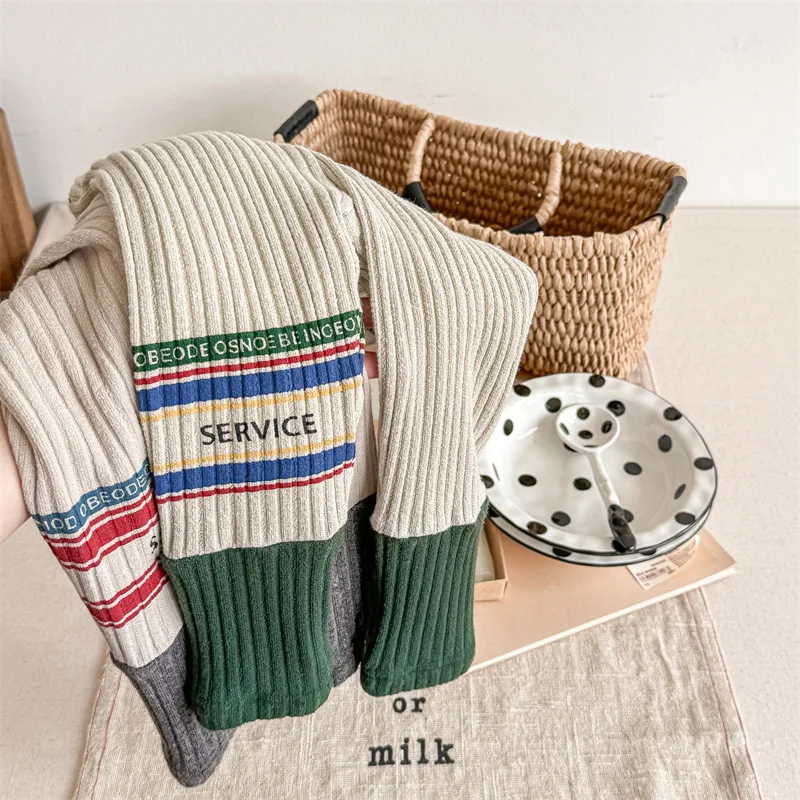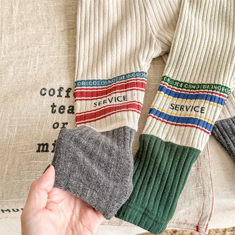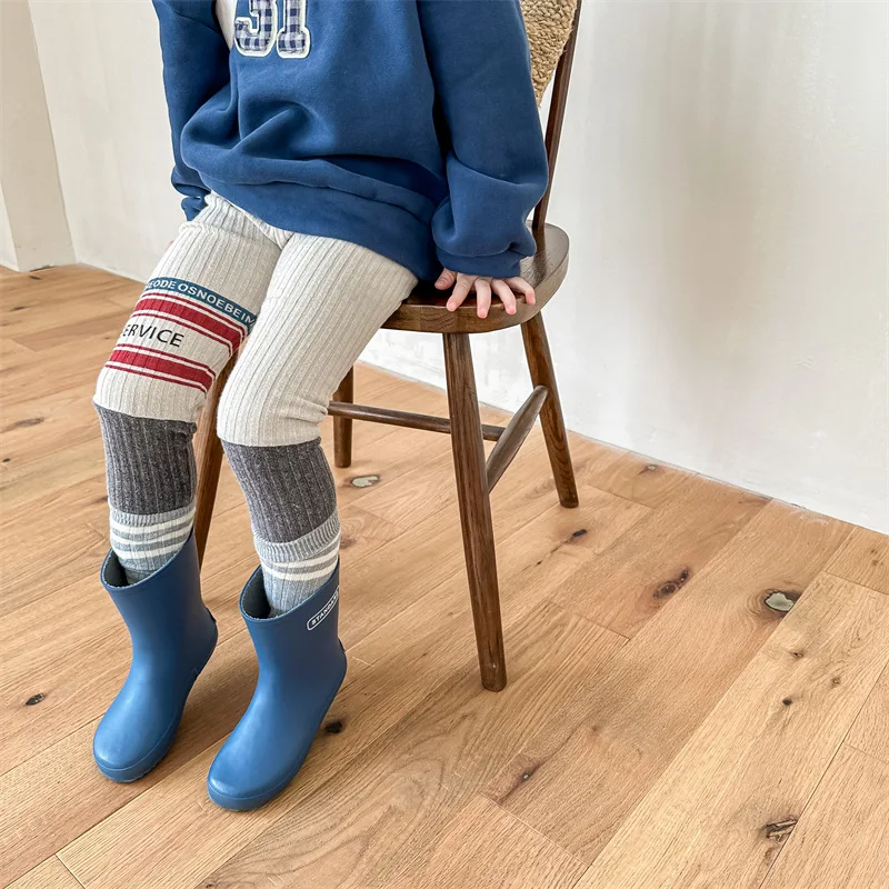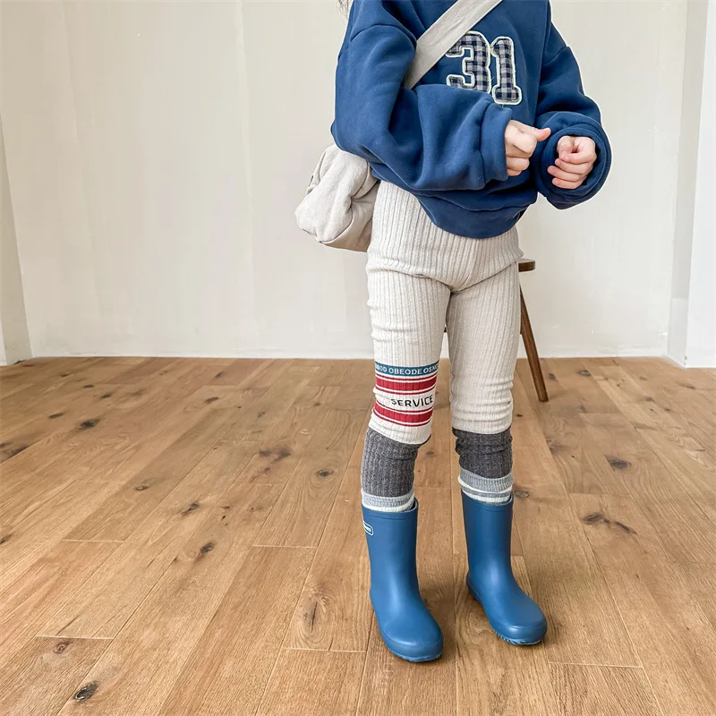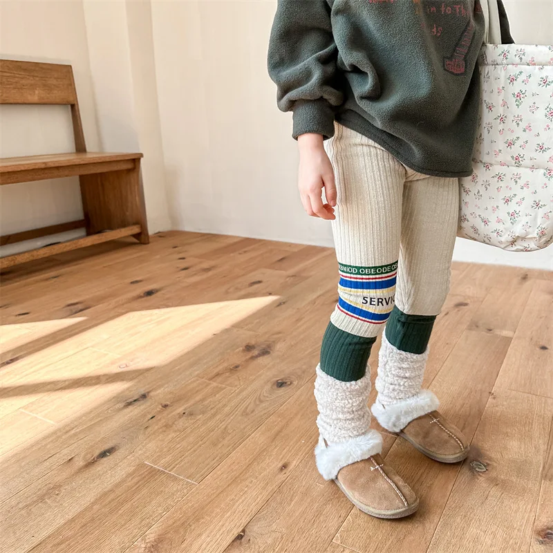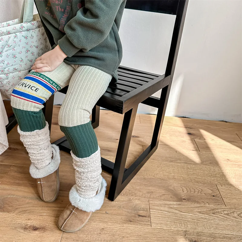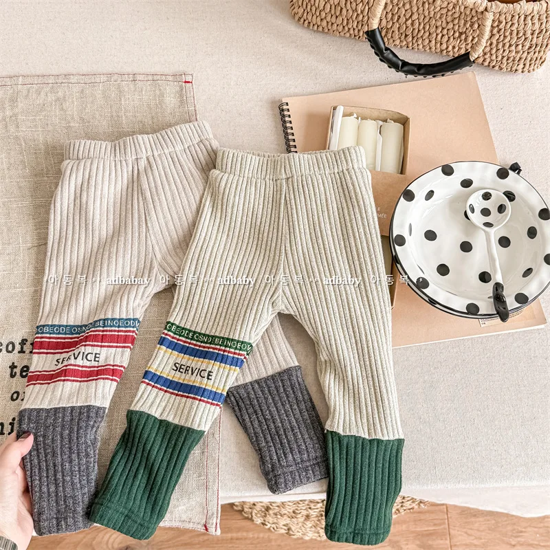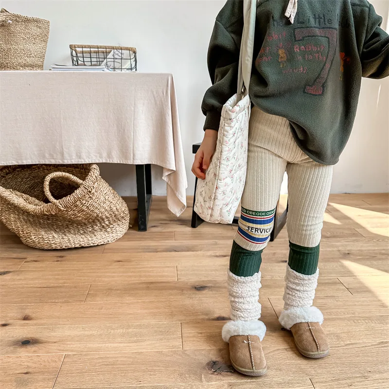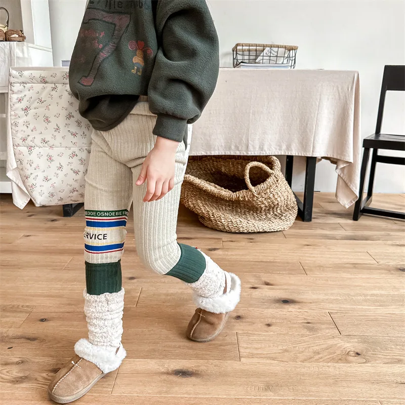 キッズレギンスパンツ レターロゴパッチワーク 切り替えレギンス 裏フリース 2カラー ユニセックス 男の子 女の子 子供服