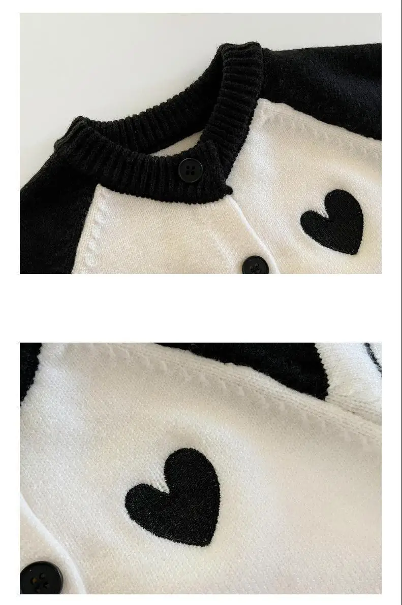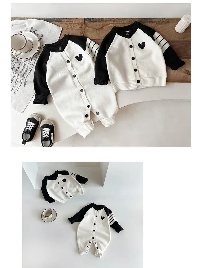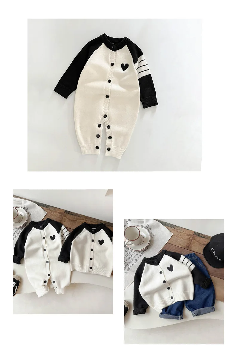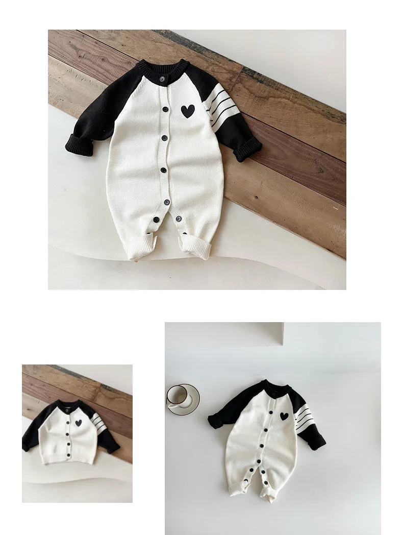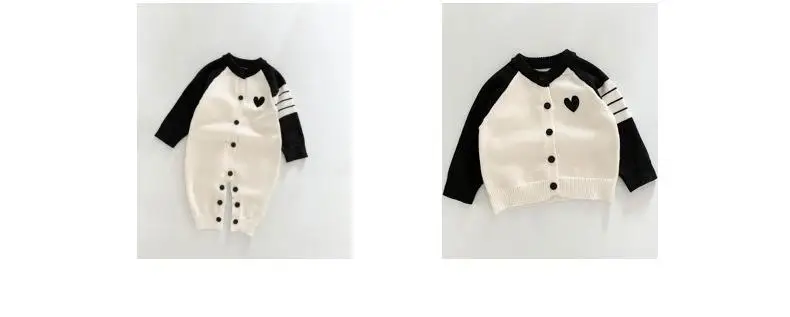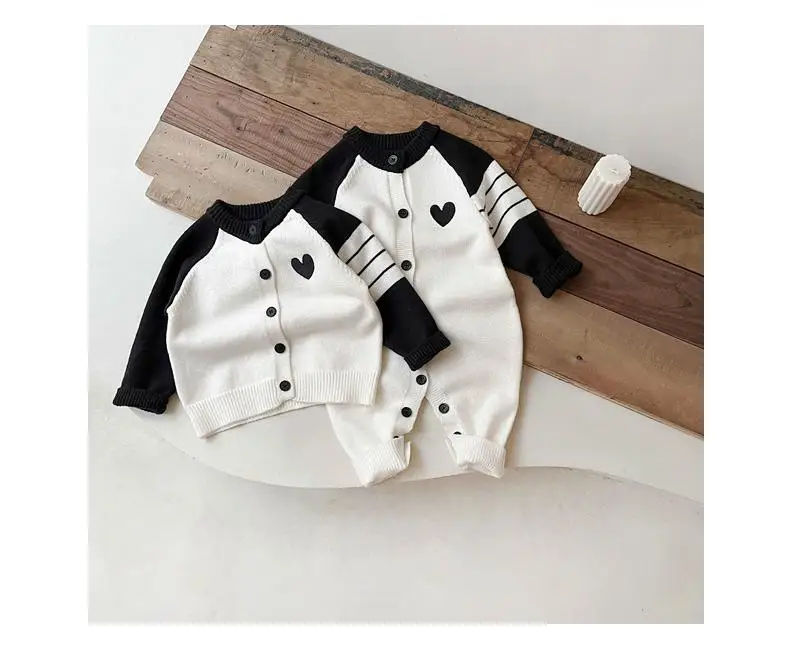 ベビーカーディガン/ジャンプスーツ ハートラグランパッチワークニットジャケット/ロンパース【mh-0008606】