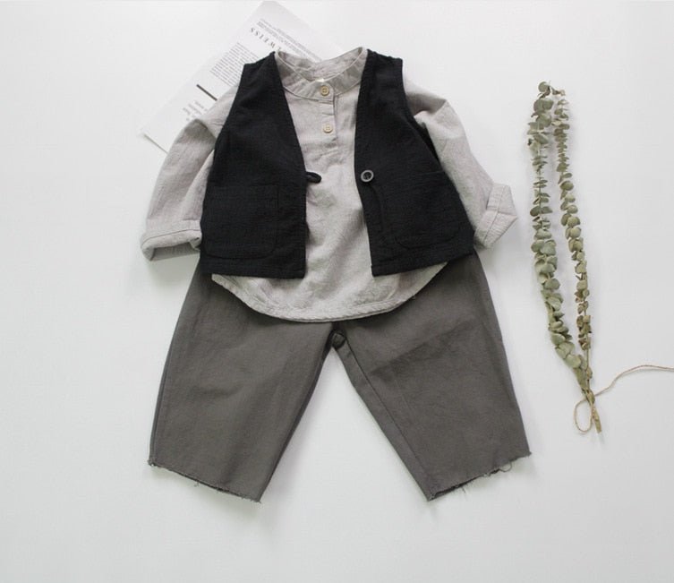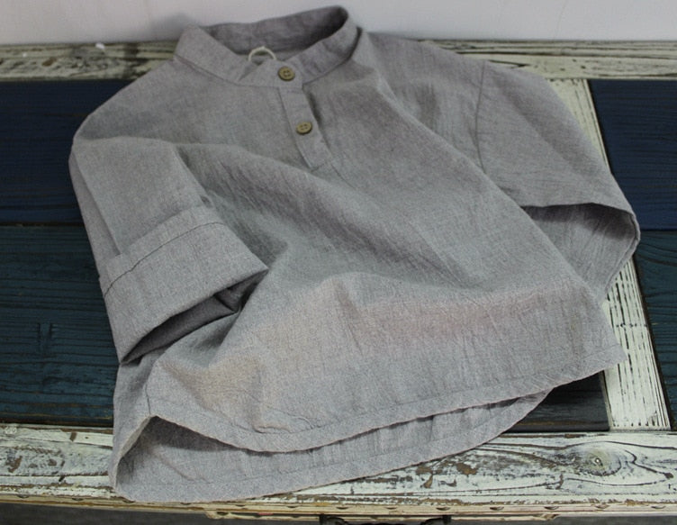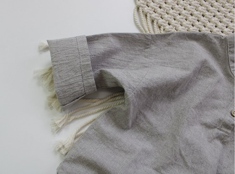 キッズにぴったりのシンプルなデザインのスタンドカラーのシャツです。コットンとリネン素材で作られ、肌にやさしく通気性があります。韓国風のスタイルで、長袖で季節を問わず着用できます。お洒落なだけでなく、子供の動きやすさも考慮されています。