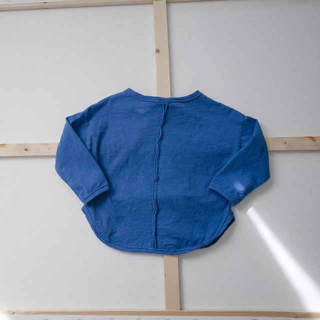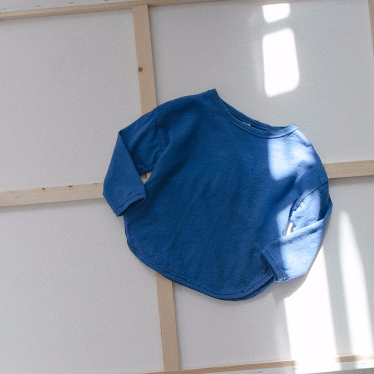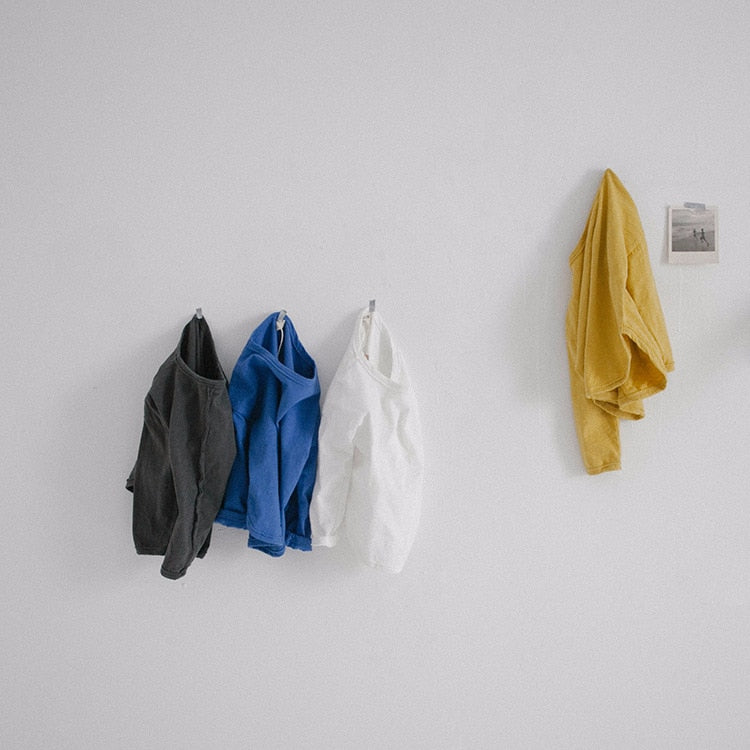 シンプルで可愛らしい韓国スタイルのルーズトップス。春と秋にぴったりのコットン素材で、子どもたちの肌に優しい。男女兼用のロングスリーブシャツは、純色のティーシャツとしてもおすすめ。シンプルながらもおしゃれなデザインで、子どもたちのお洋服にぴったり。