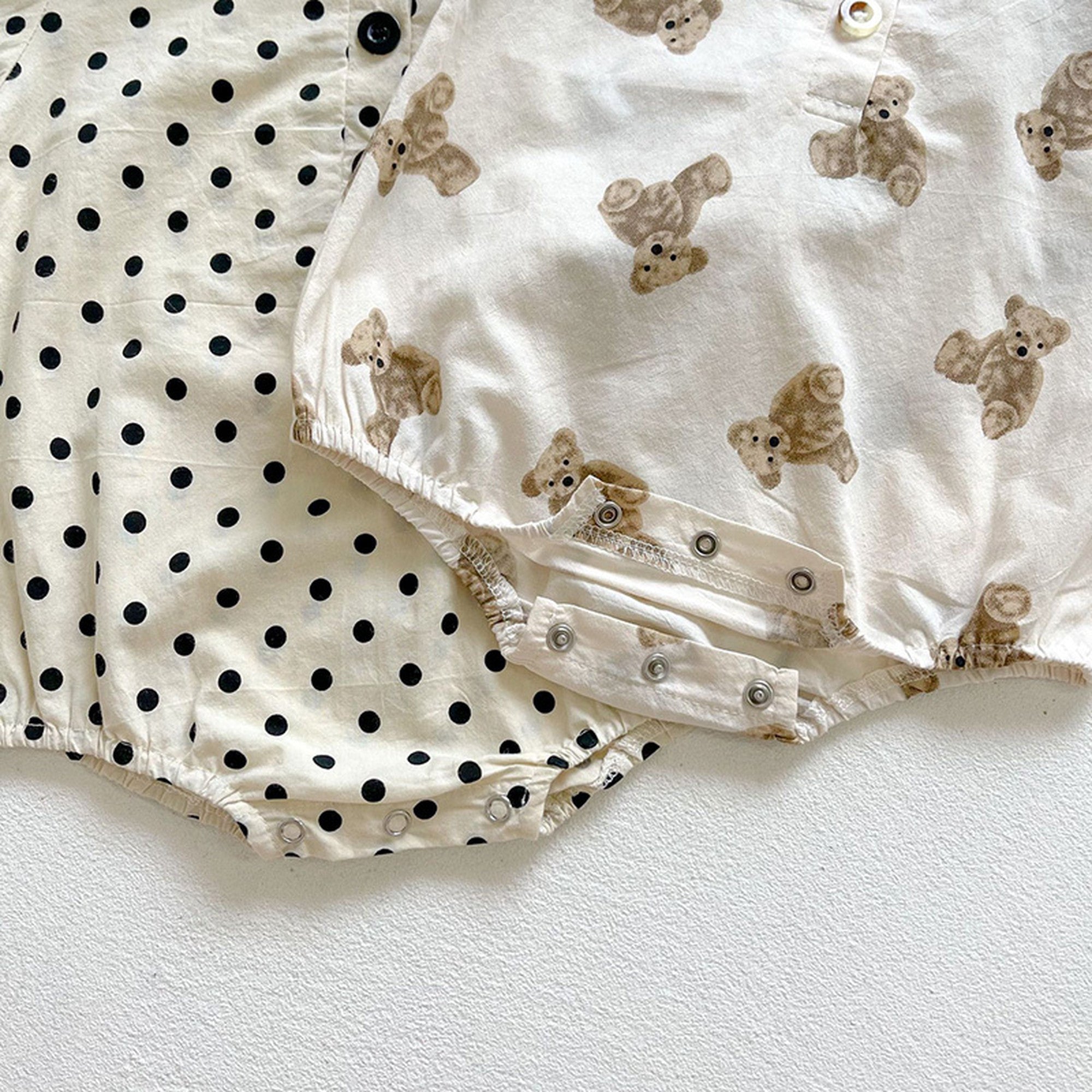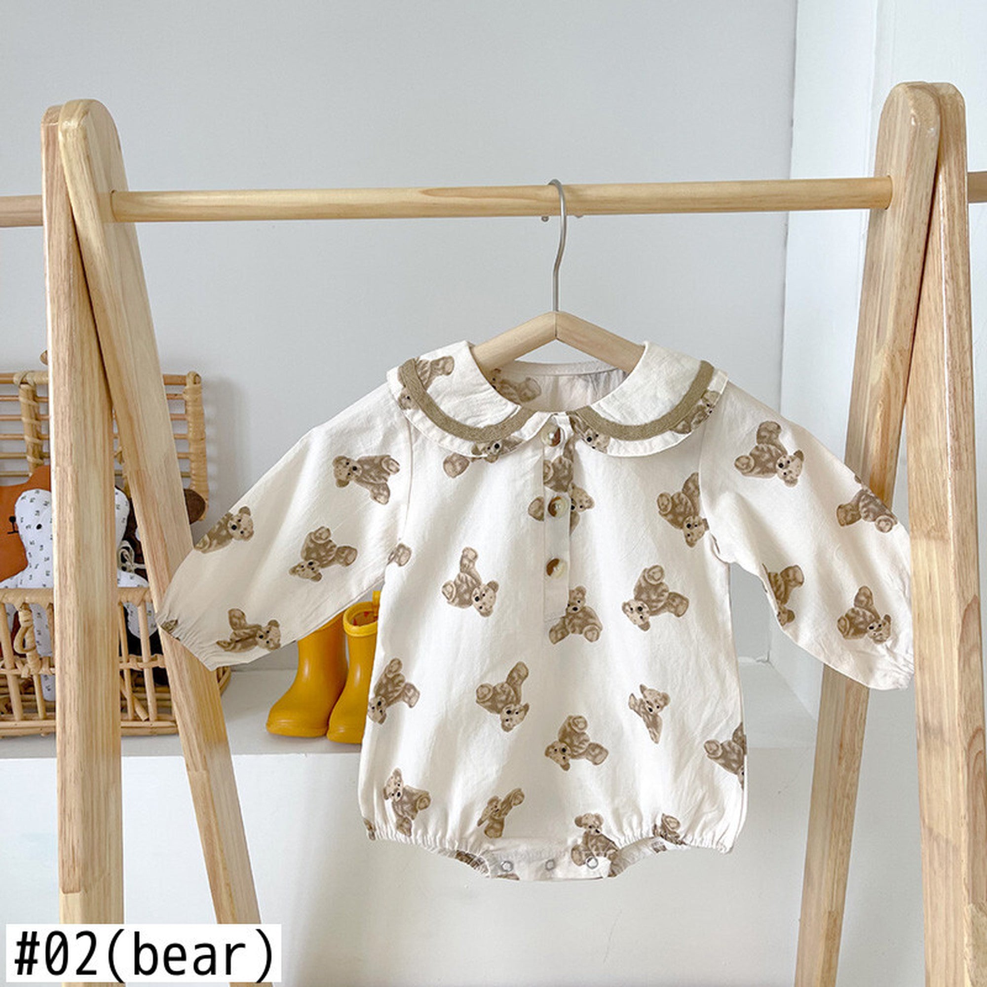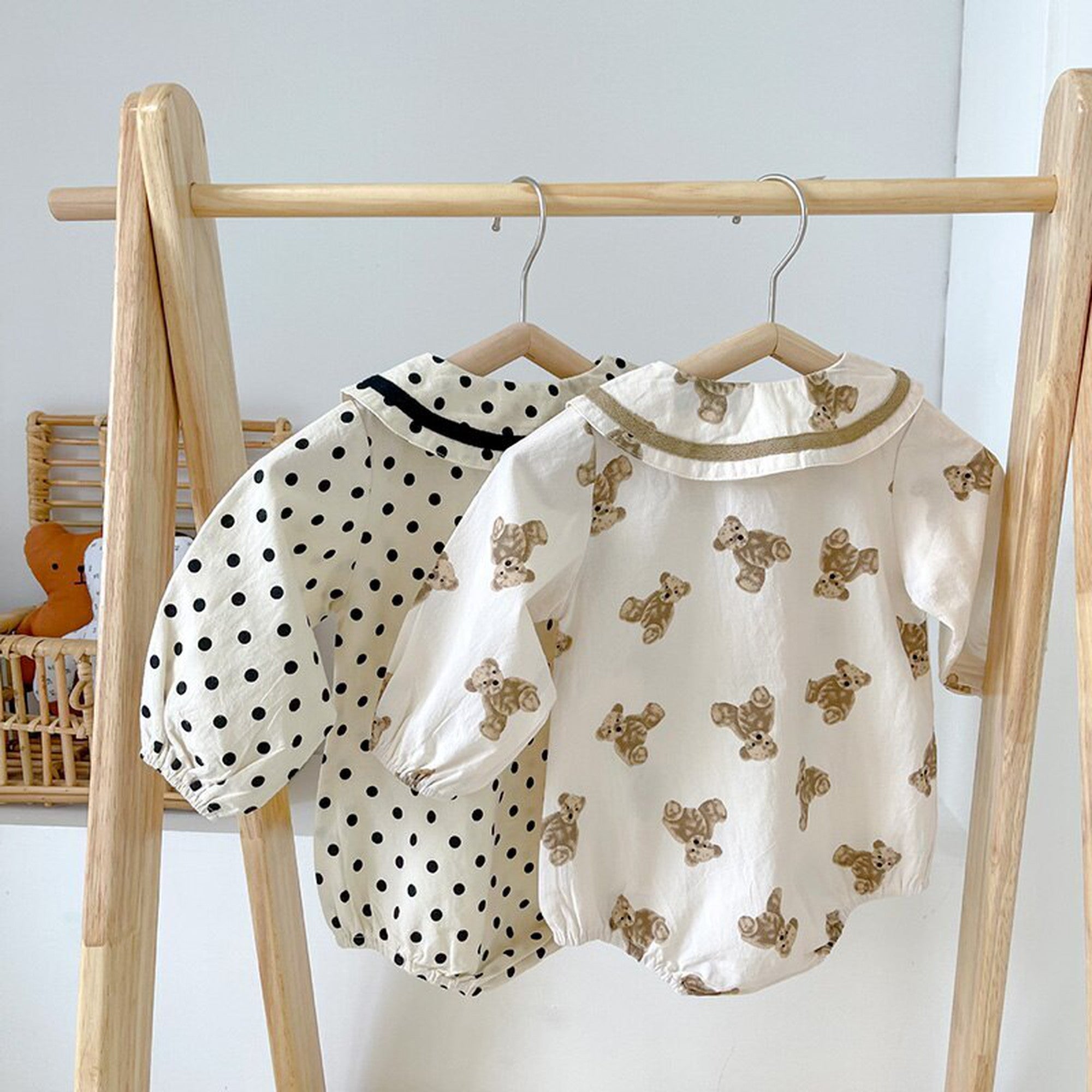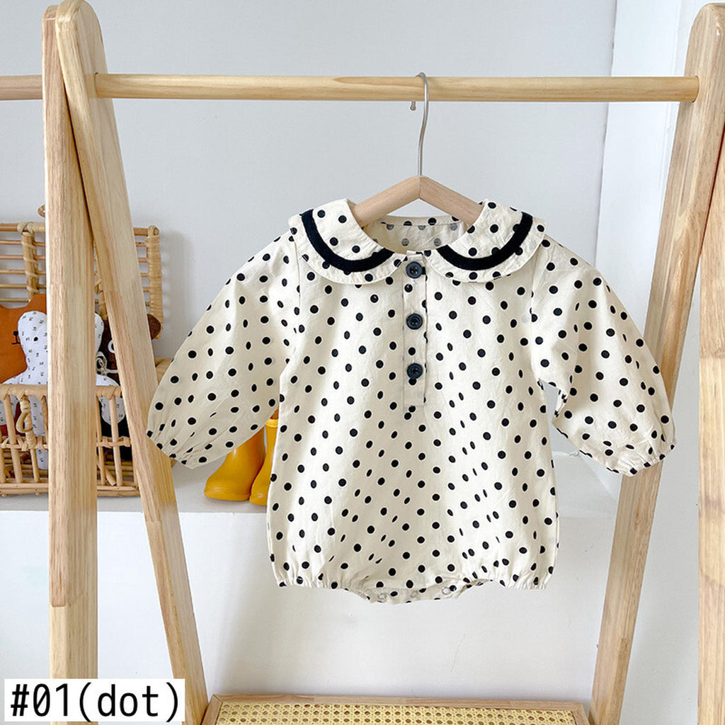 #ベビーロンパース #くまプリント #水玉模様 #長袖ボディスーツ #赤ちゃん服 #ベビーコーデ
