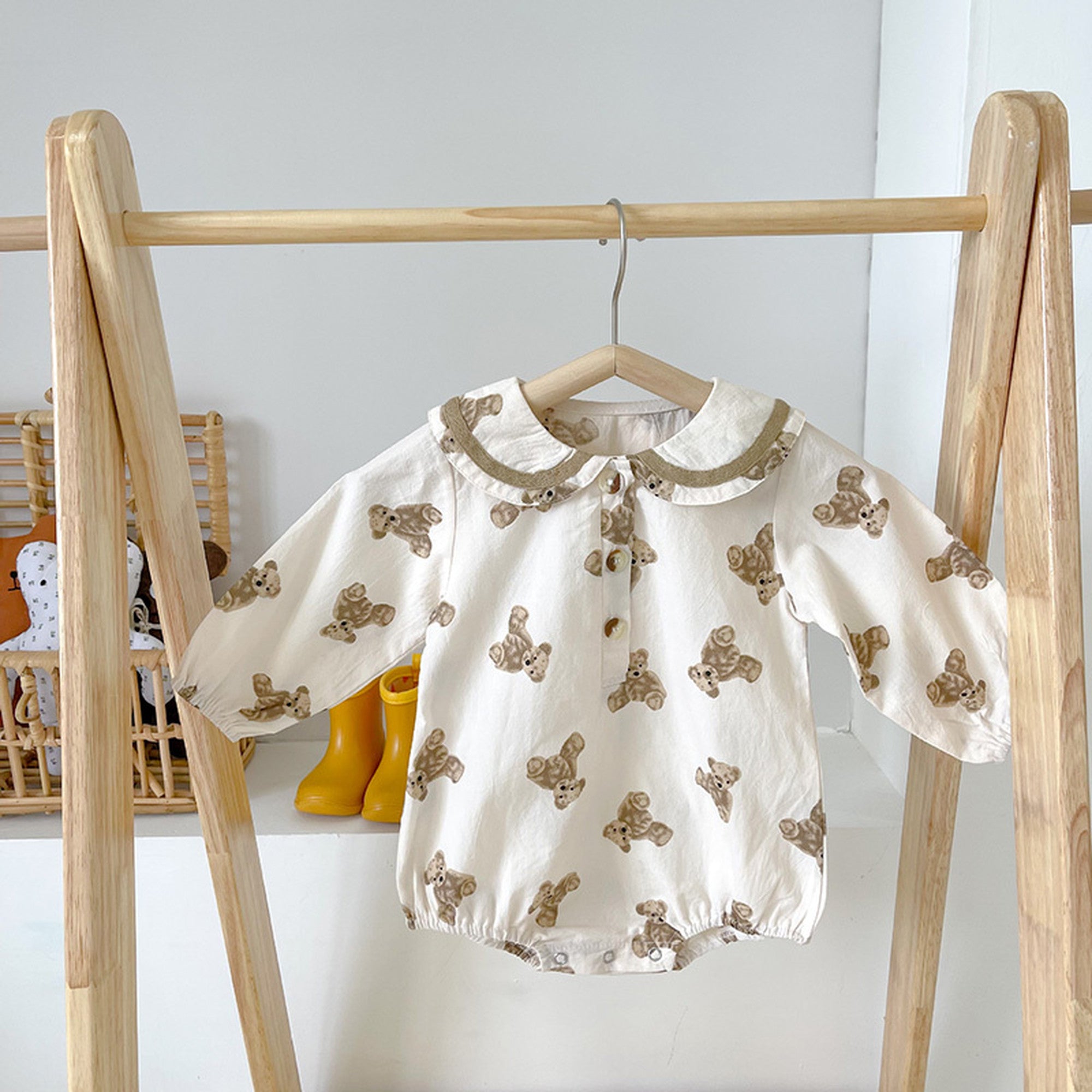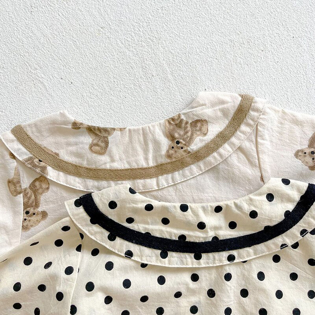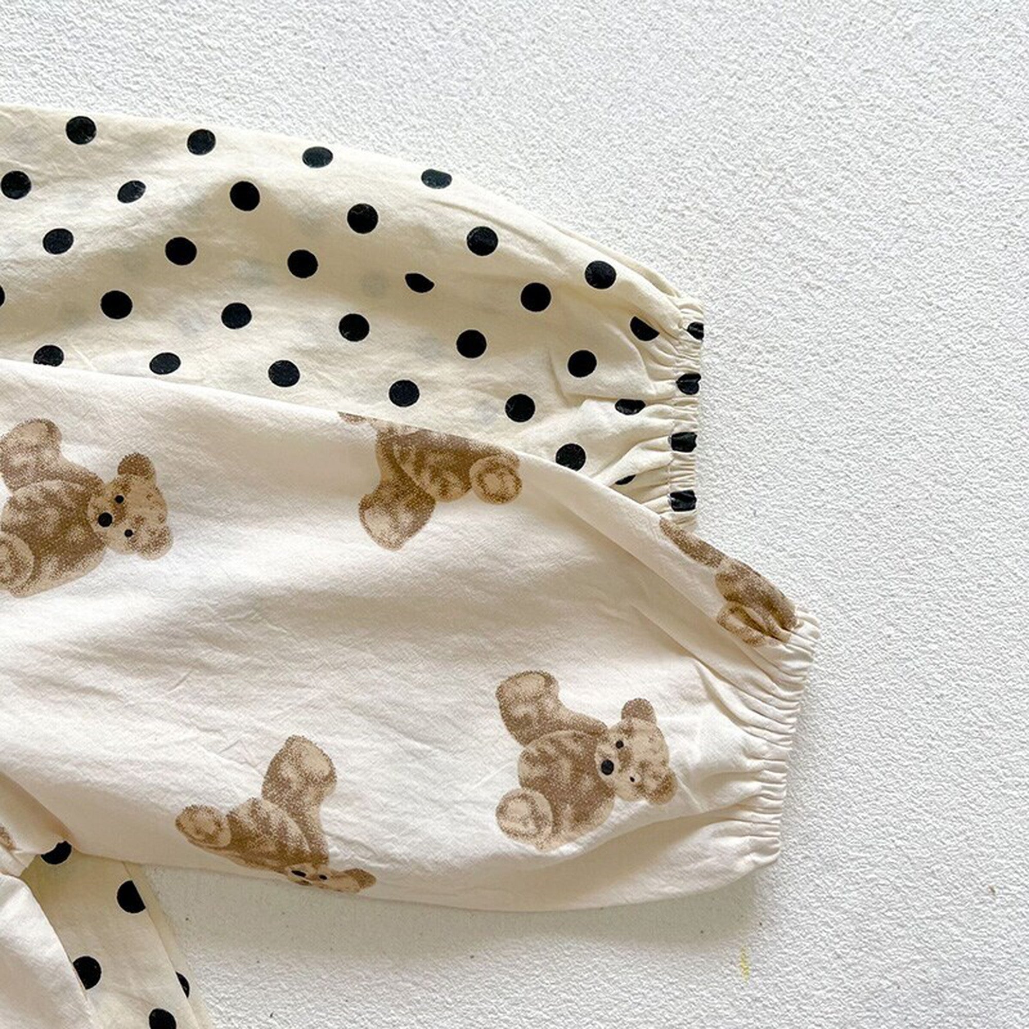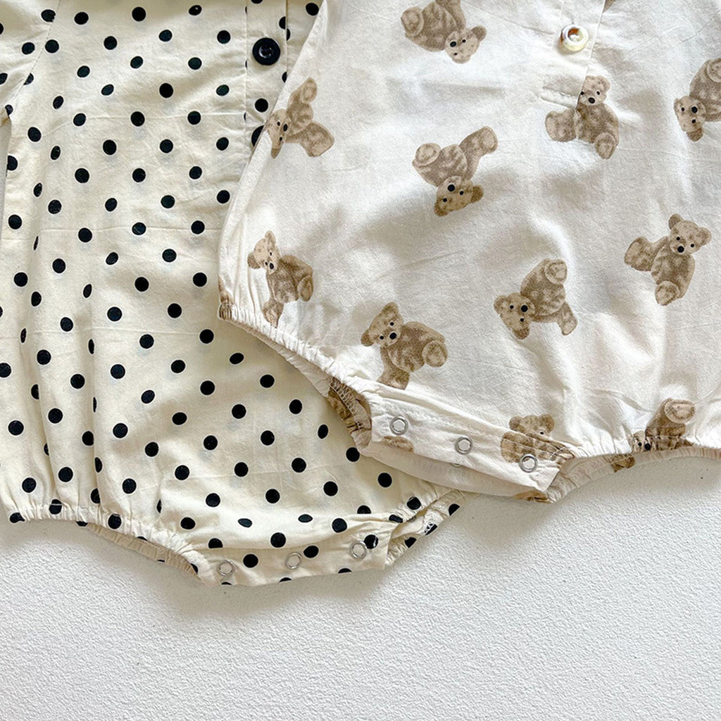 #ベビーロンパース #くまプリント #水玉模様 #長袖ボディスーツ #赤ちゃん服 #ベビーコーデ