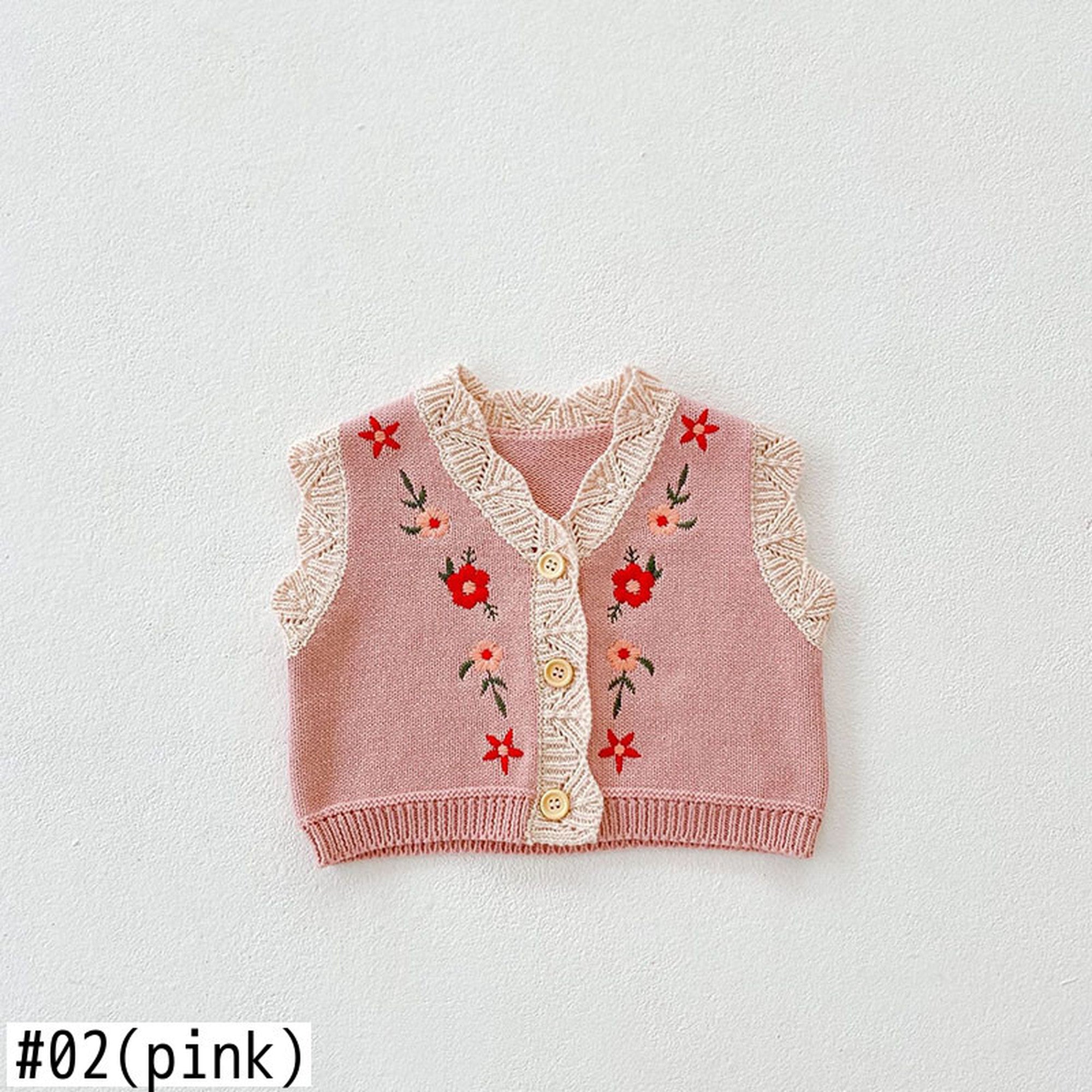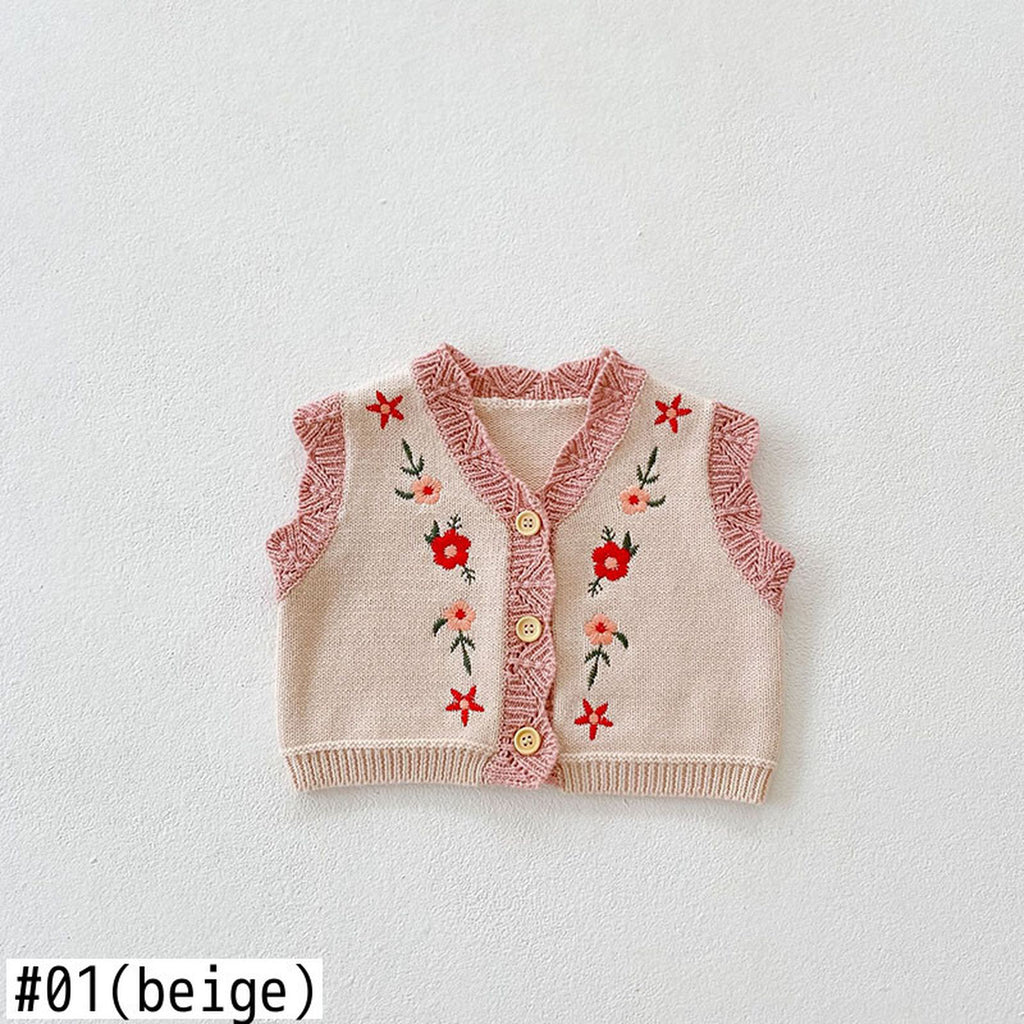 ベビー フラワー 刺繍 ニット ベスト【mh0000067】