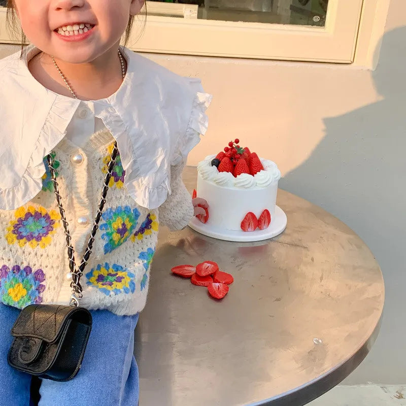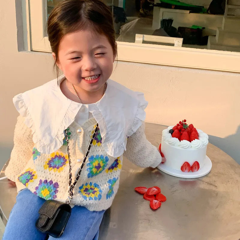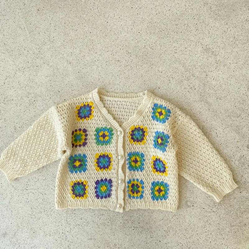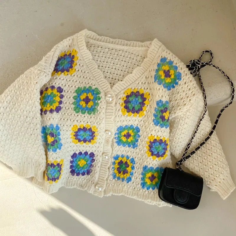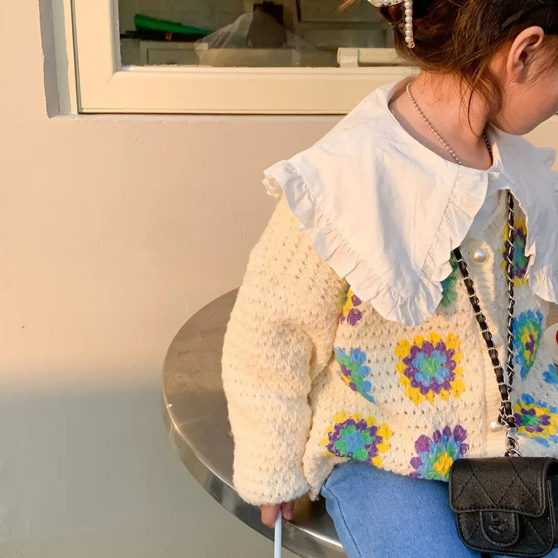 キッズ ニット レトロ フラワー カーディガン【mh0000174】